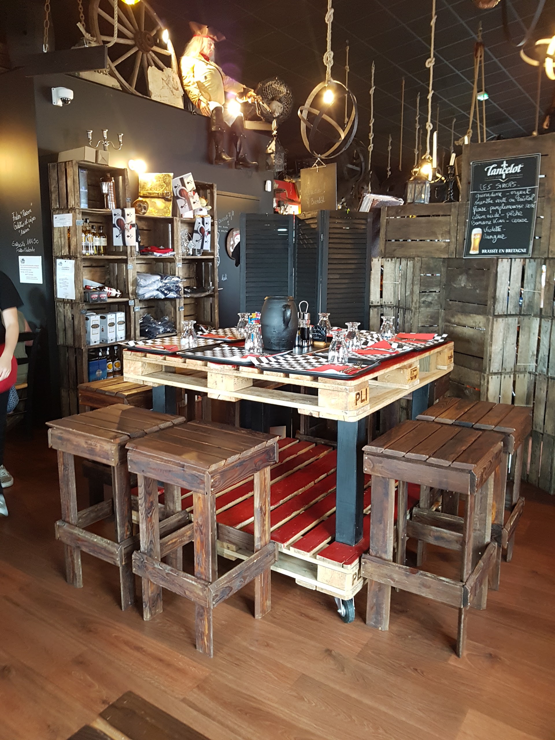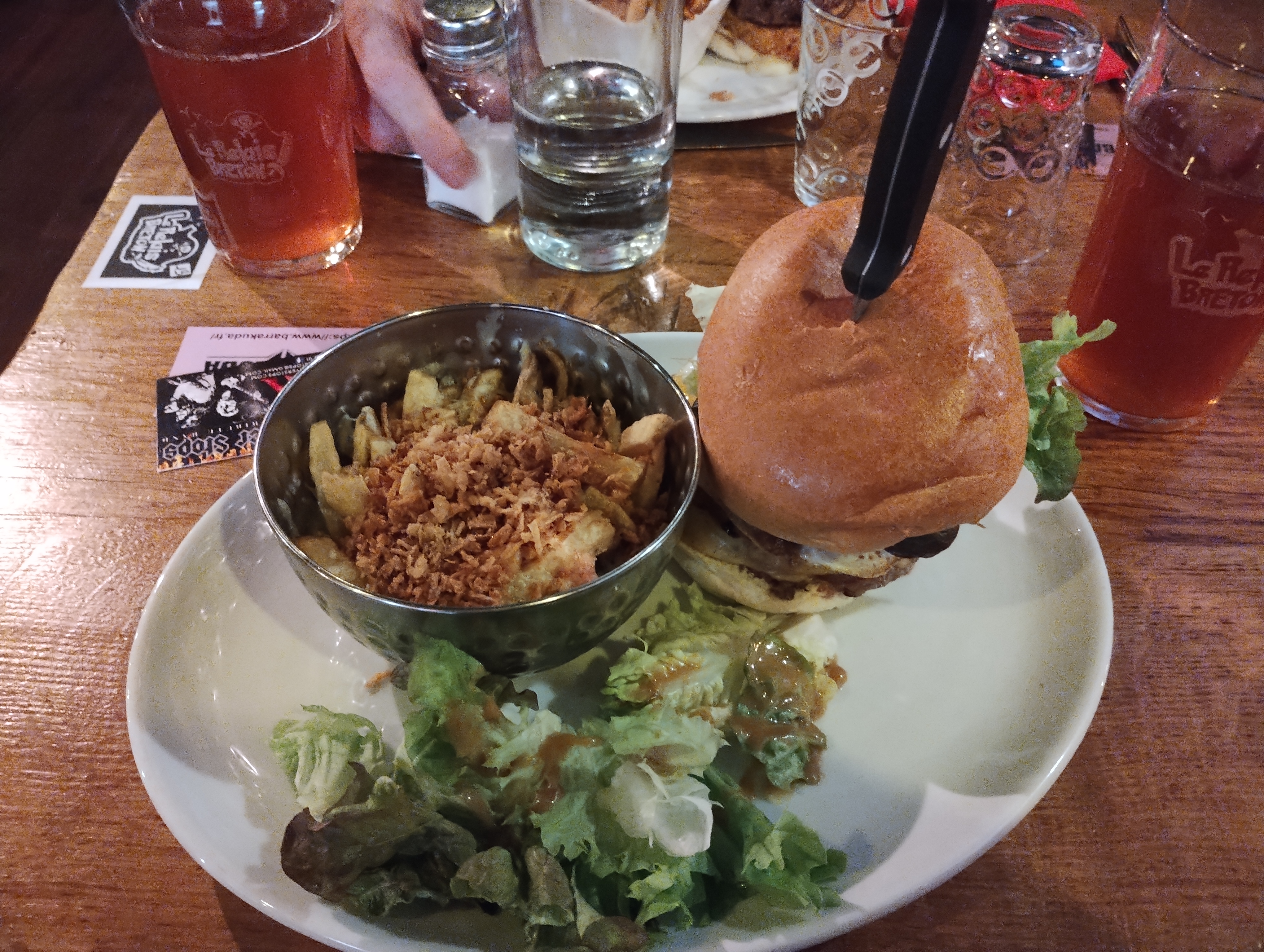 Accueil et ambiance sympathique, nombreuses bière bretonne, Déco originale et des burgers a faire caler un orgre sur la version mad max. C'est l'aspect extérieur qui m'a donné envi et je ne suis vraiment pas déçu d'y être aller. Merci au personnel qui est super sympa.