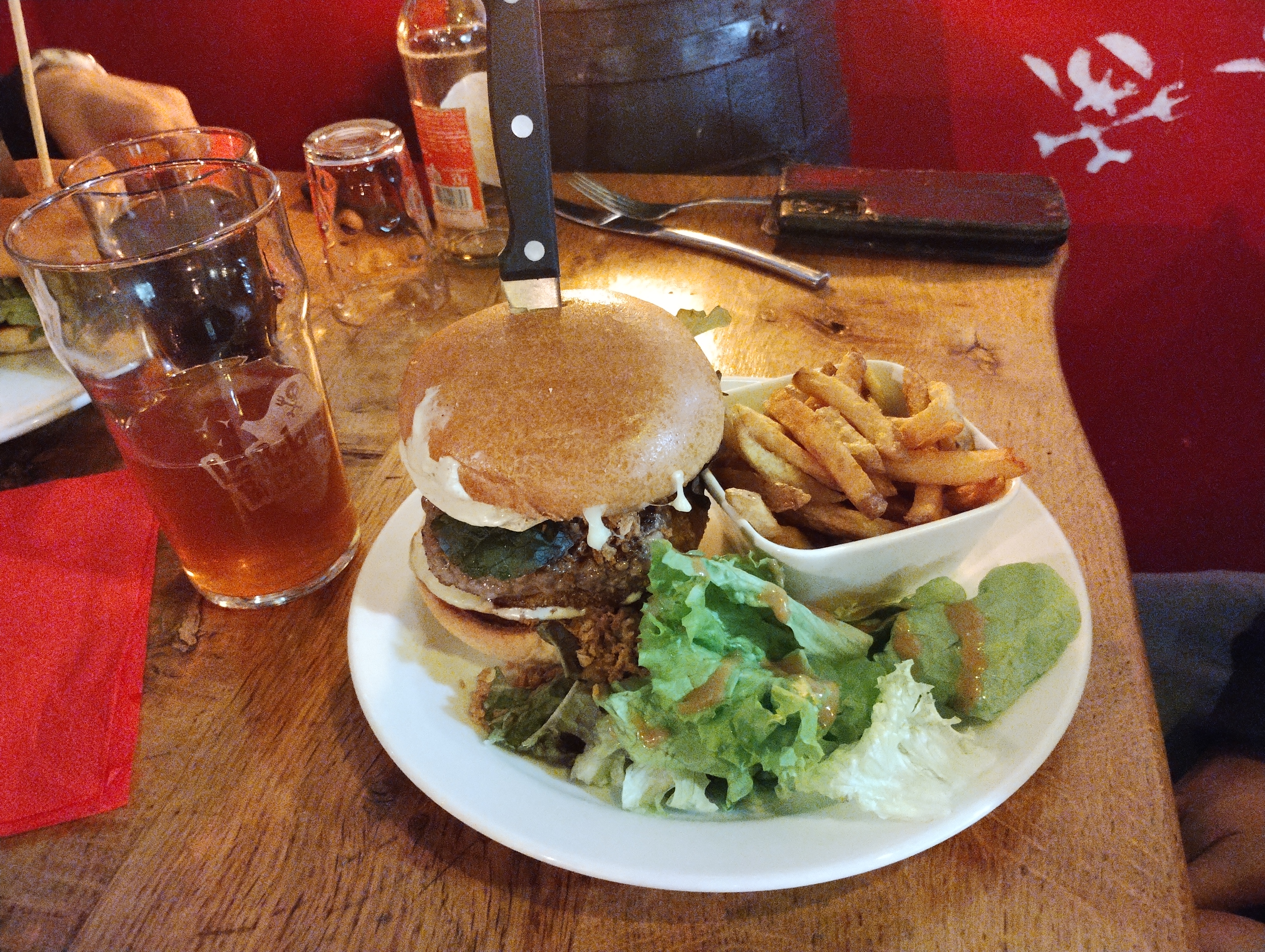 Lieux sympat très atypique sur le thème des pirates bonne music métal. Grand choix de plats avec des produits locaux carte de bières importante. Le moins j ai pris frite maison gratiné au chedar dommage il n est pas top trop liquide et peu de goût sinon les frites étaient bonne. Ça mérite presque un 5 étoiles. A refaire.