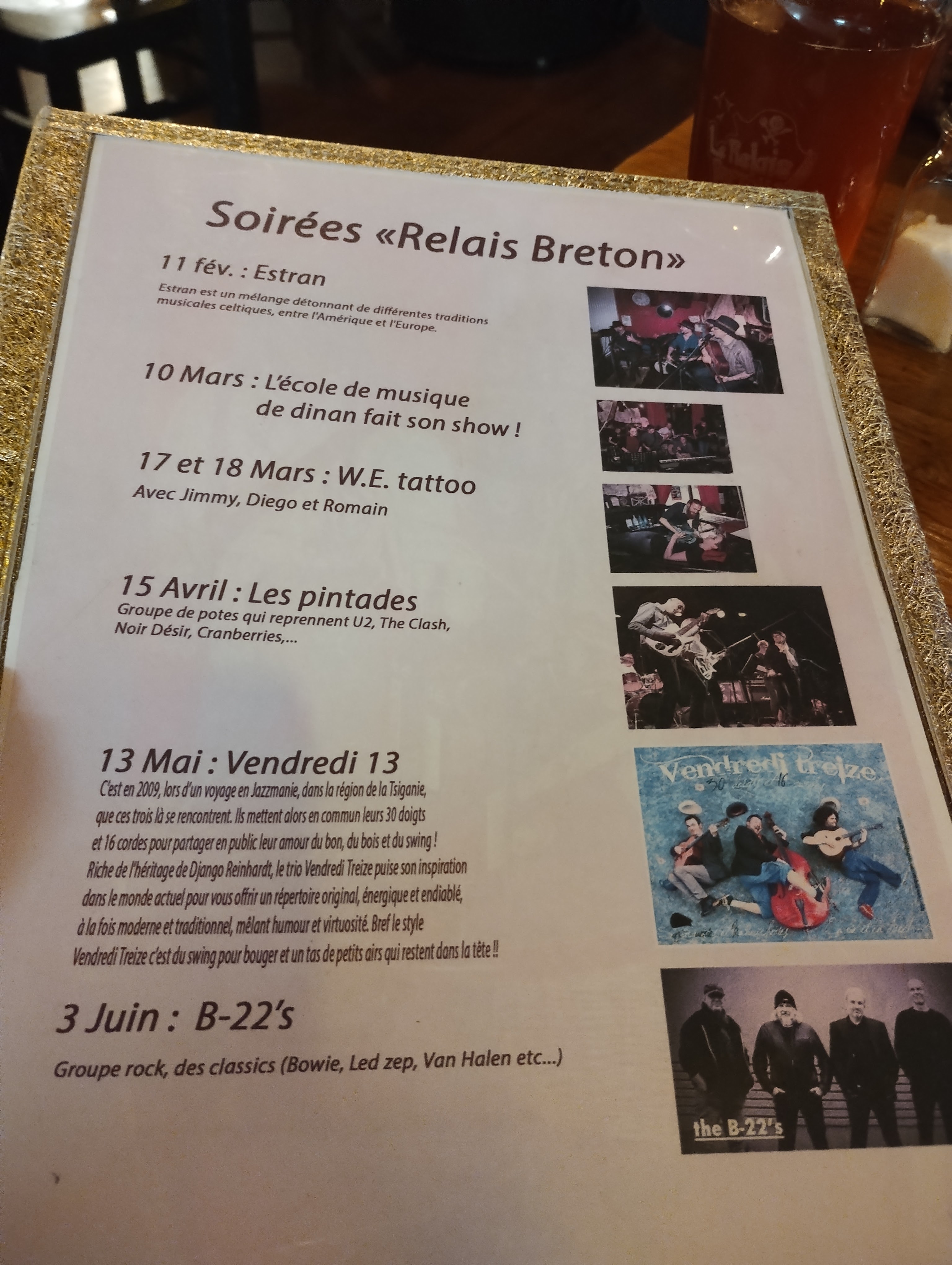 Restaurant génial mêlant bonne ambiance rock et bonne bouffe ! Bonne musique, terrasse, intérieur bien décoré, personnel sympathique et Burger et galettes délicieux ! Nous y allons régulièrement et nous ne sommes jamais déçu ! Le petit plus c'est qu'il n'y a pas besoin d'aller dans le centre de dinan pour aller au resto!