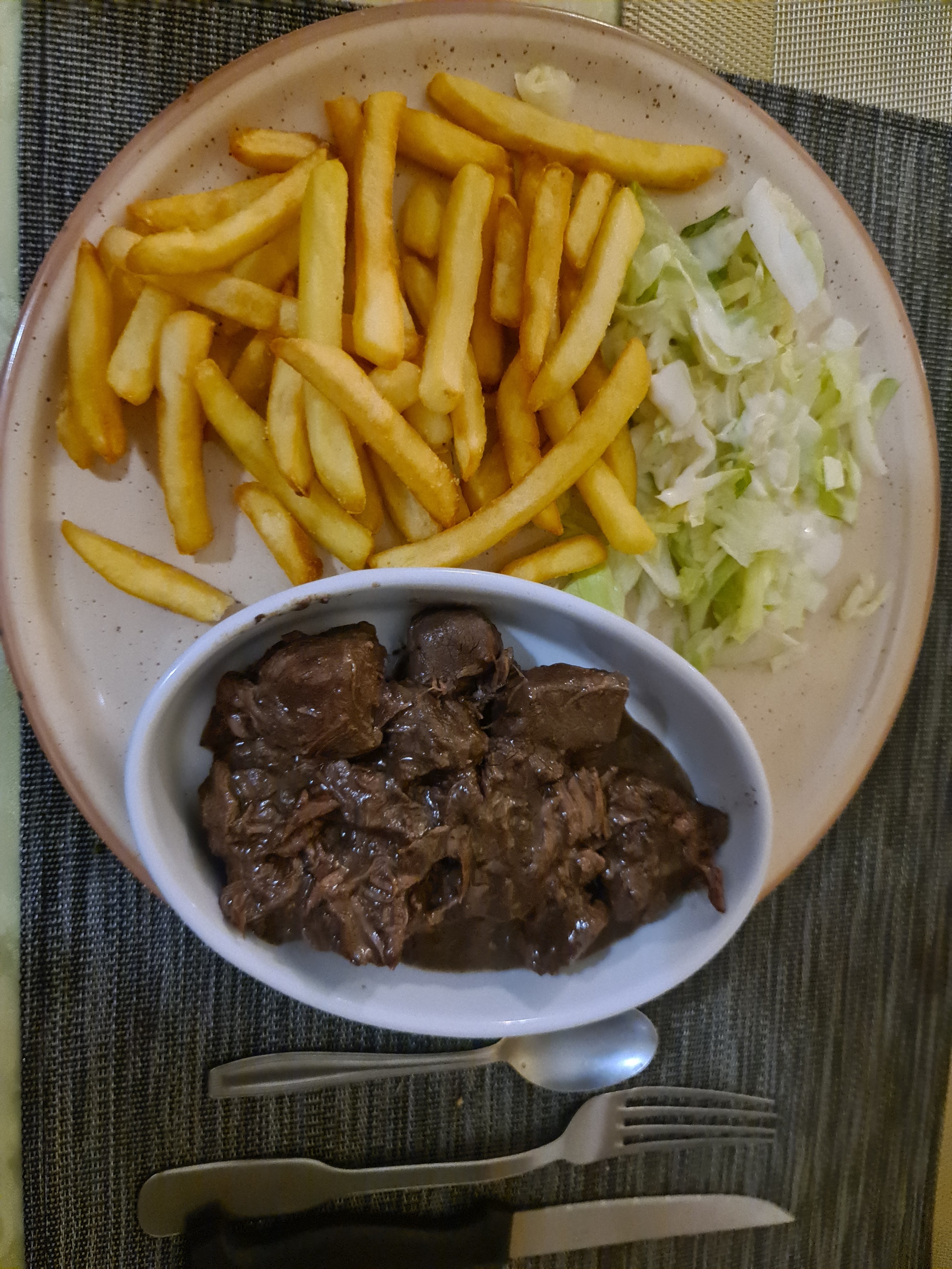 A fuir absolument… La propreté laisse à desirer et le sol n’est même pas droit, ça fait bizarre de manger de travers Quant à la friture, pas de chauffe plat, 8 frites dans l’assiette et un goût 🤮 Même la salade avait un coup dans l’aile Une fois pas deux