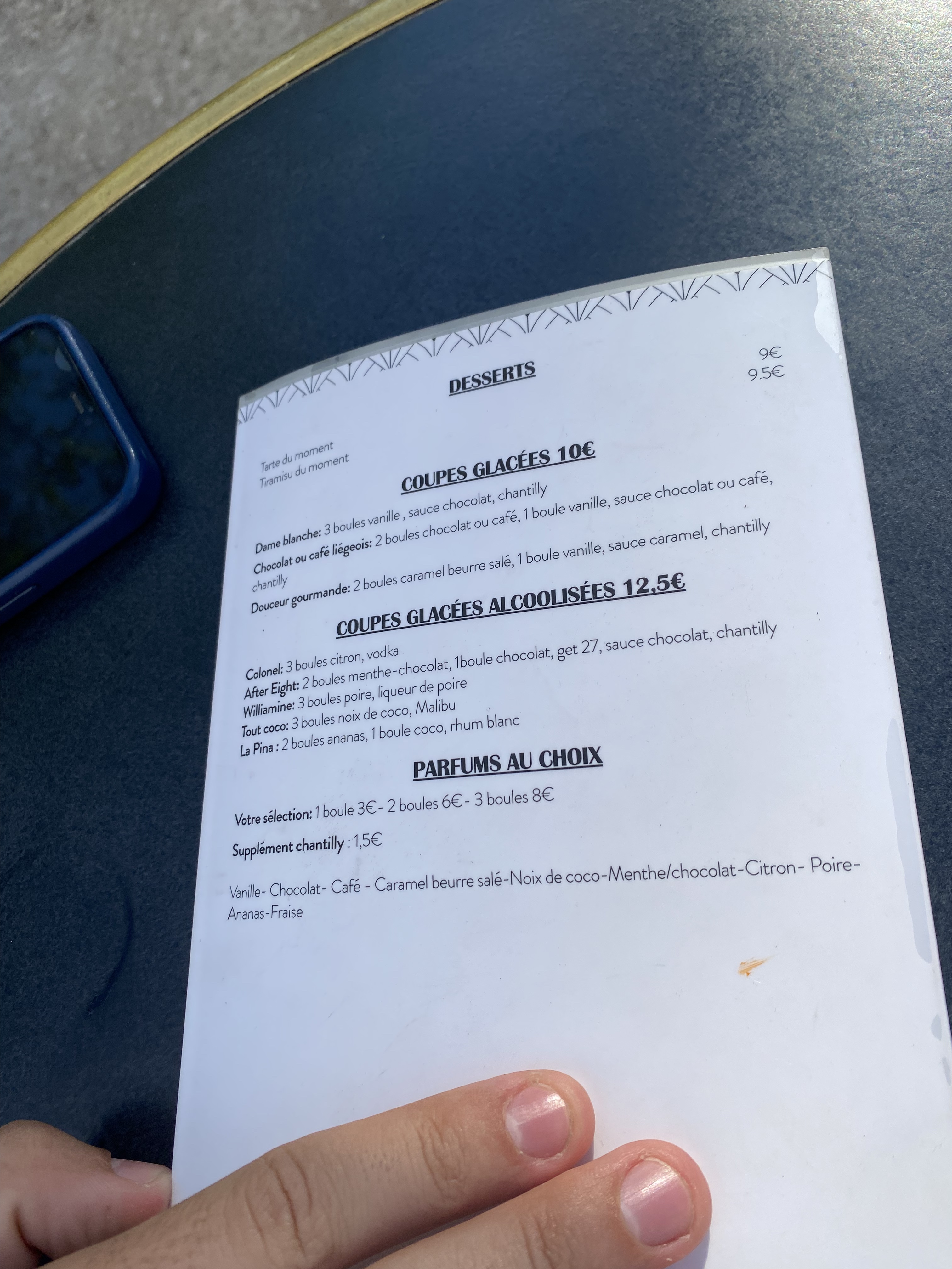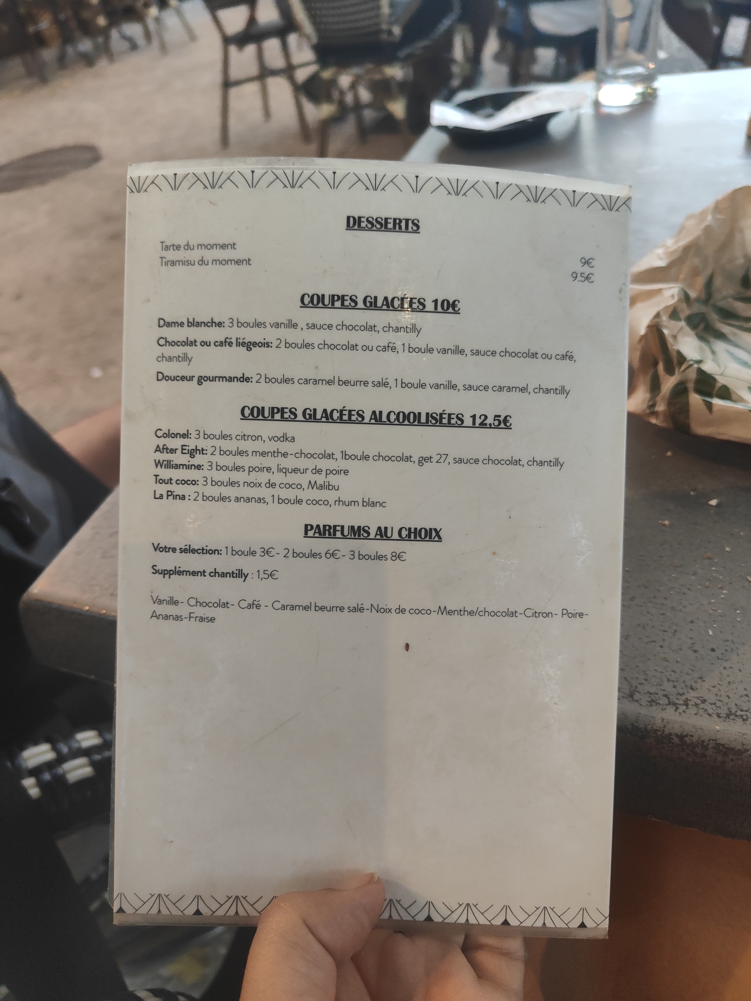 Un seul mot : LAMENTABLE !! En guise d accueil un serveur survolté nous crie du comptoir de patienter à l entrée pour la vérification des pass sanitaires Un temps d'attente pour passer la commande très long malgré le fait que la terrasse ne soit pas remplie ,la table non nettoyée Une musique à vous donner la migraine Et le serveur qui bouge ,gesticule ,brasse de l air , braille , brusque dans ses mouvements et génère un stress aussi bien chez les autres serveurs que chez les clients . À se demander à quoi il carbure !! On était venu déguster une glace et profiter du cadre On a englouti nos commandes pour partir presque en courant On se souviendra de l adresse pour ne plus y retourner !