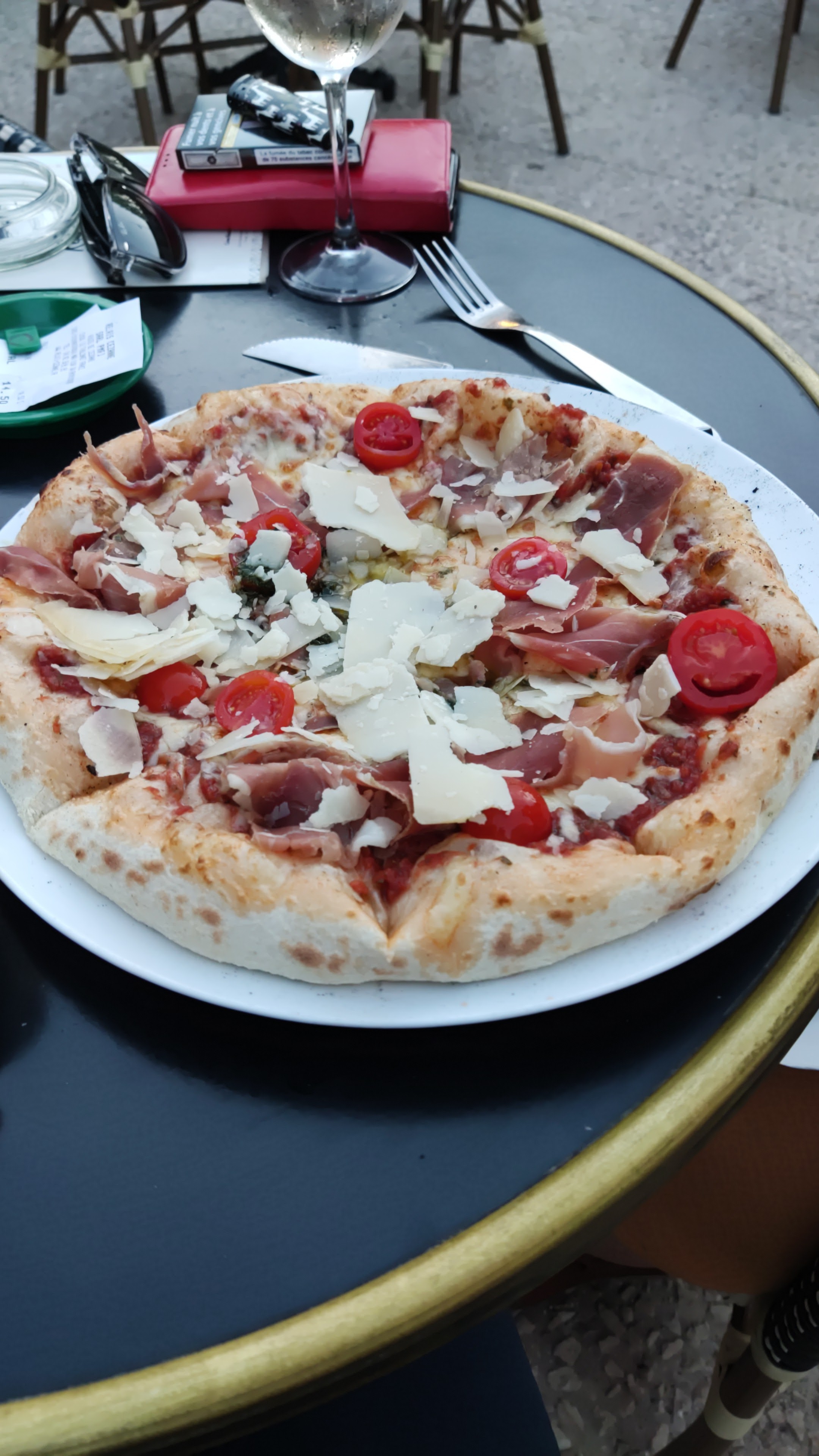 Terrasse agréable malgré la route à côté, personnel accueillant. La pizza à la truffe était cependant trop salée, si bien qu'on ne sentait pas du tout la crème de truffe, 17€ pour une pizza dont on a pas le goût recherché, ça fait un peu cher. Pour finir, la glace au calisson était très bonne avec beaucoup de gout.