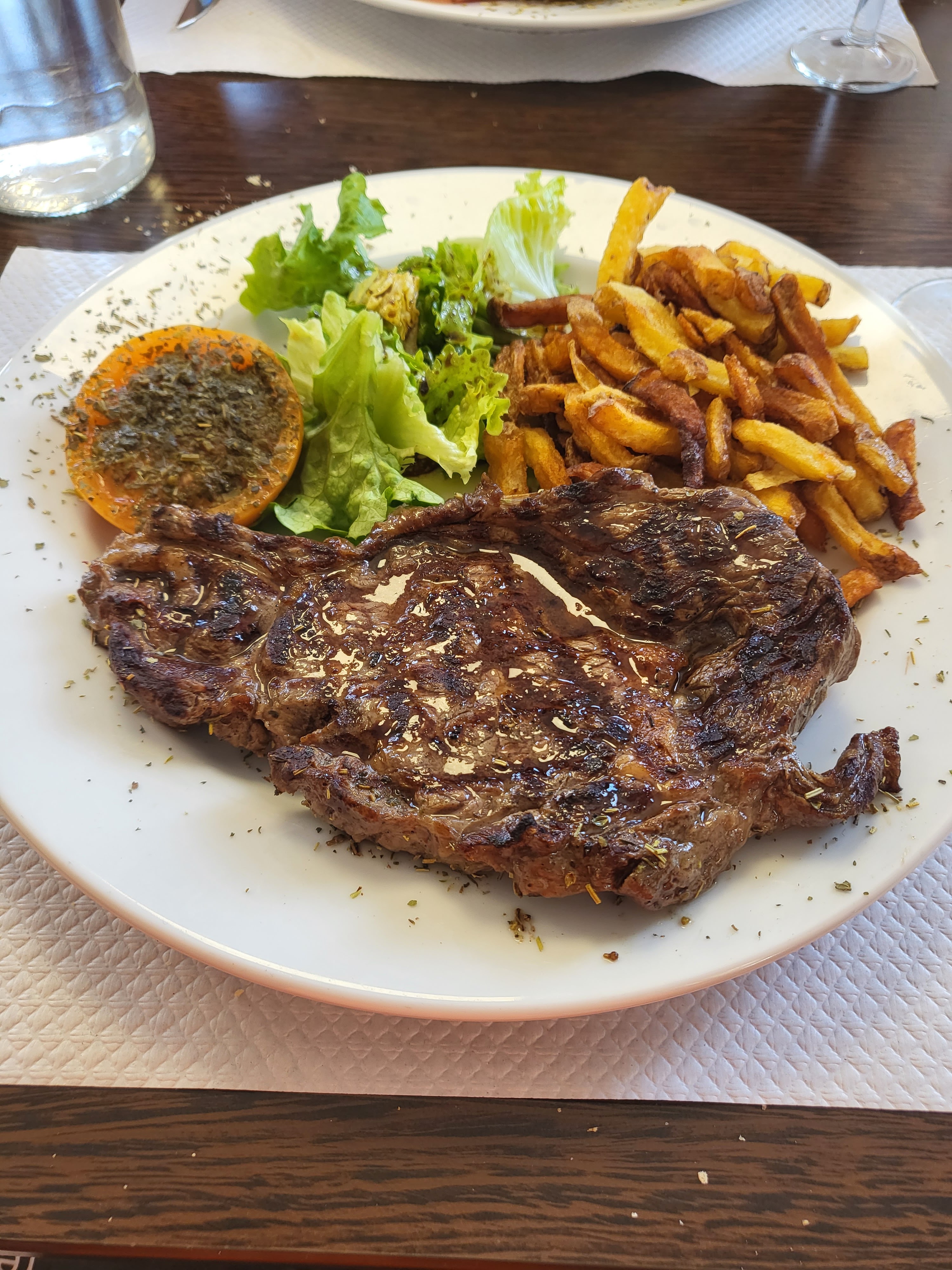 Très bonne viandes juste les frites trop brûler dessert fait maison par le jeune serveur délicieux bonne ambiance merci.