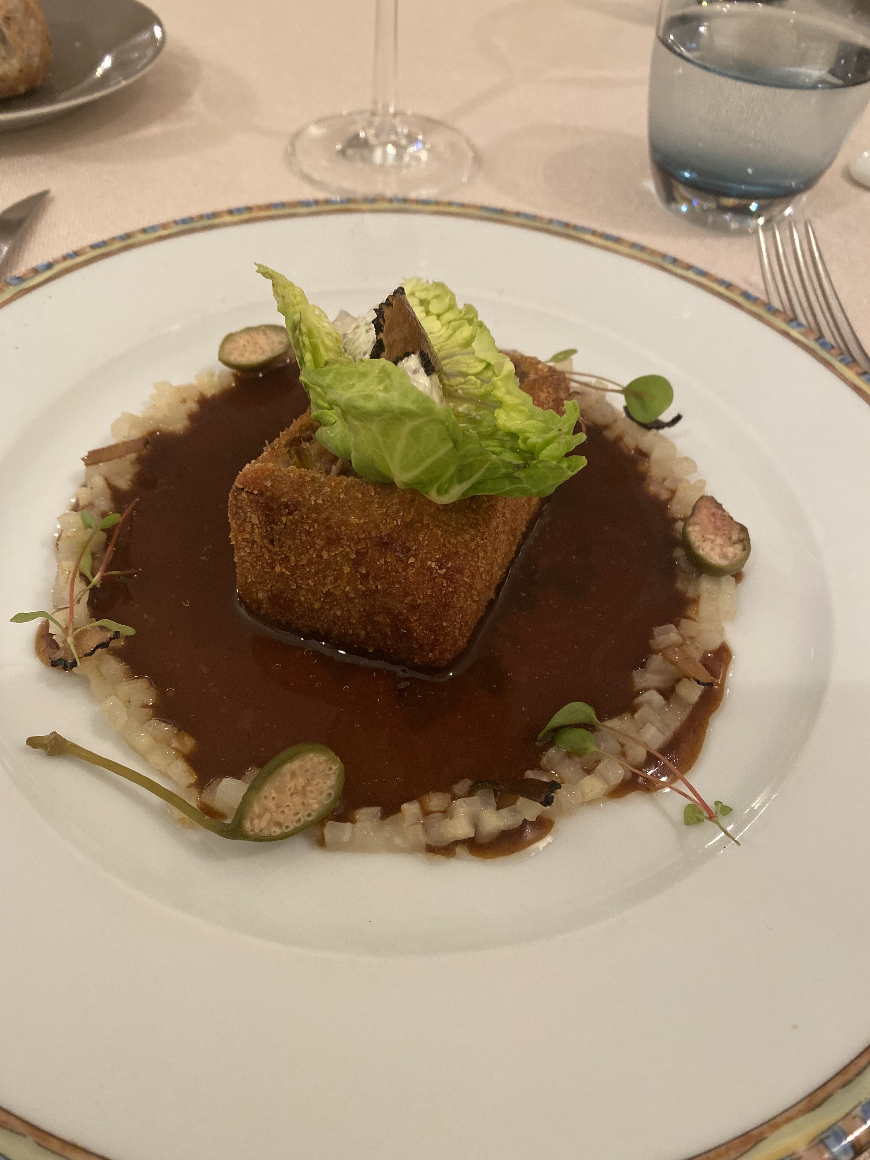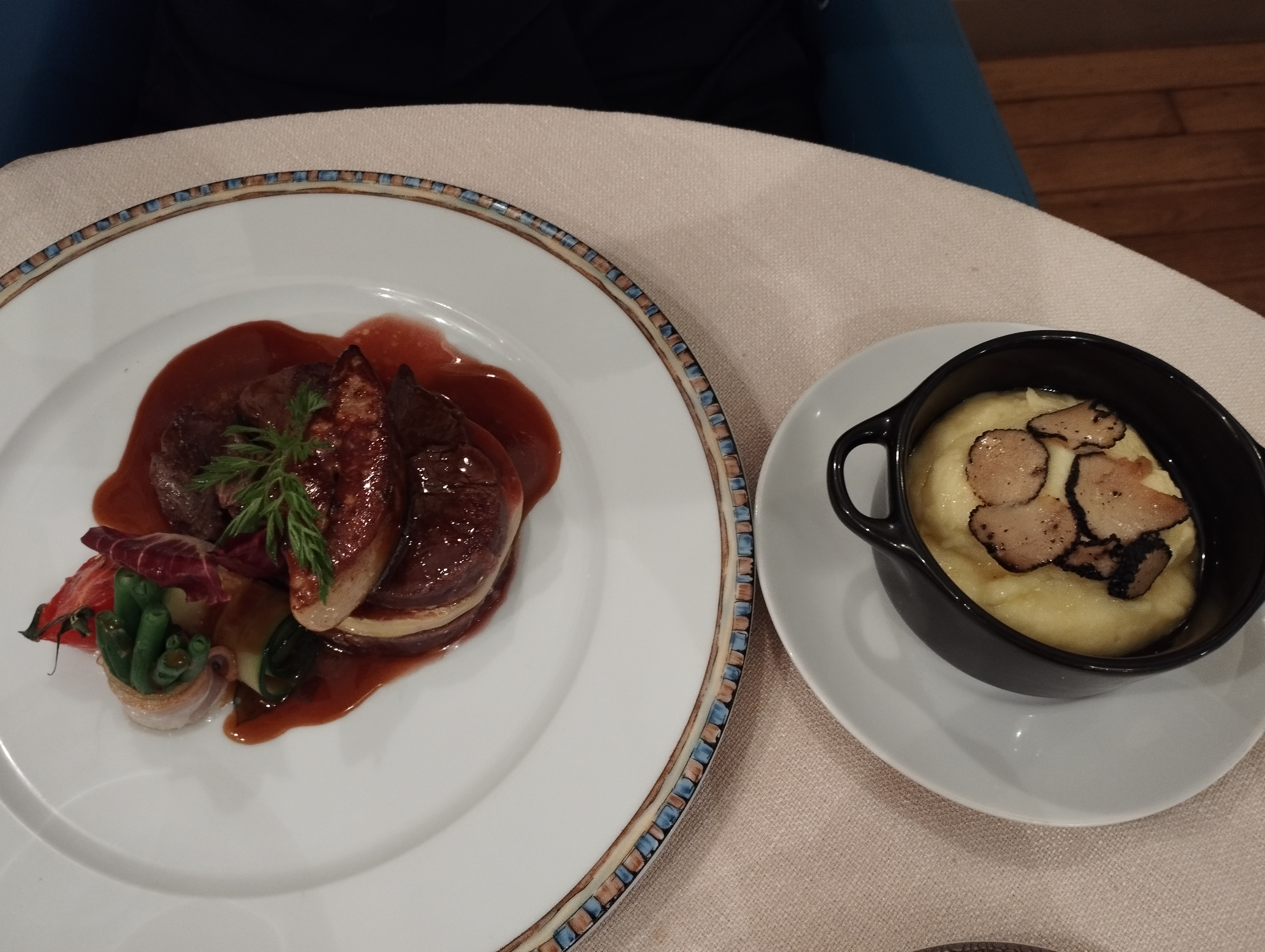 Un restaurant gastronomique excellent à découvrir absolument ! Le filet de bœuf en croque-monsieur aux deux foies gras, purée parfumée à la truffe emblématique du lieu est à tomber, et le merveilleux vin blanc Jean-Luc Colombo Condrieu Amour de Dieu au verre à tomber !!! 🥂