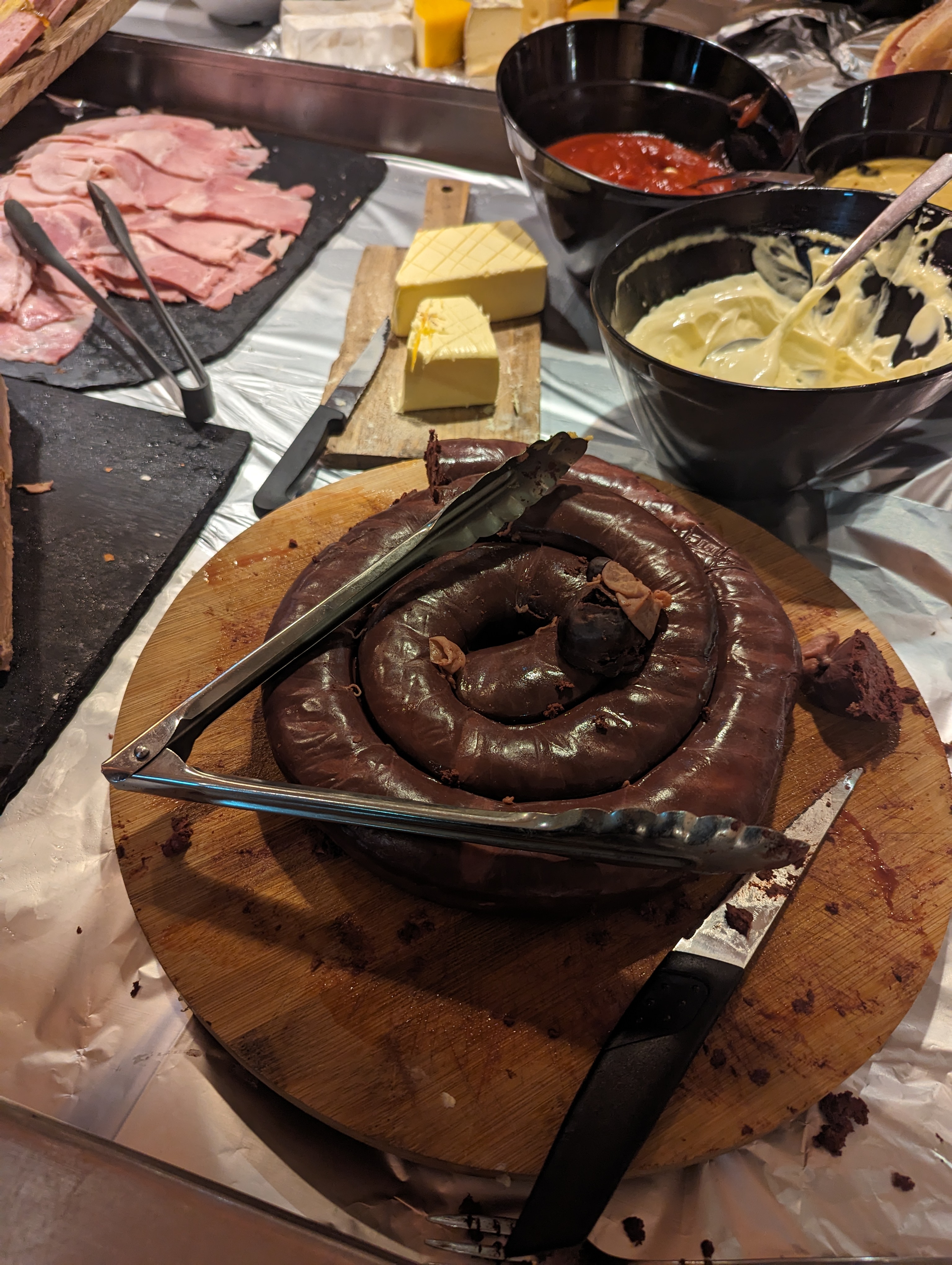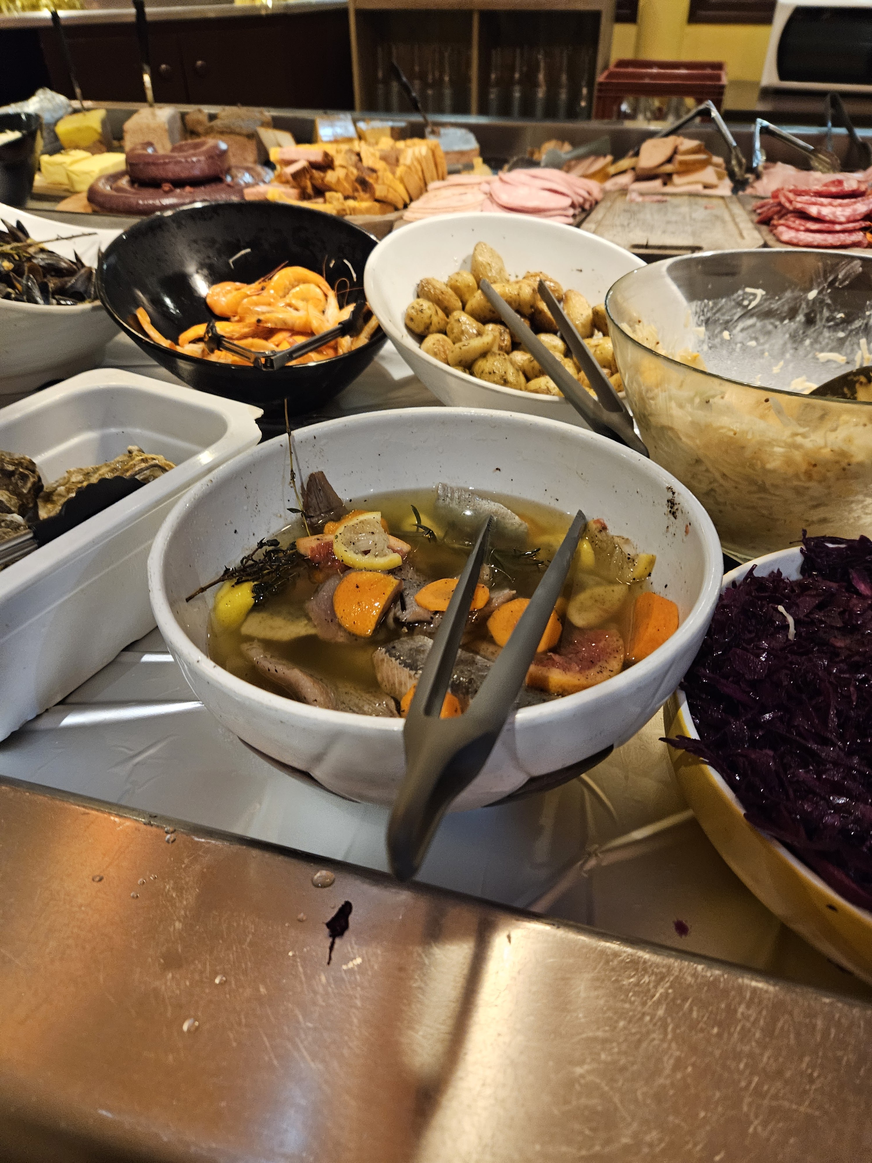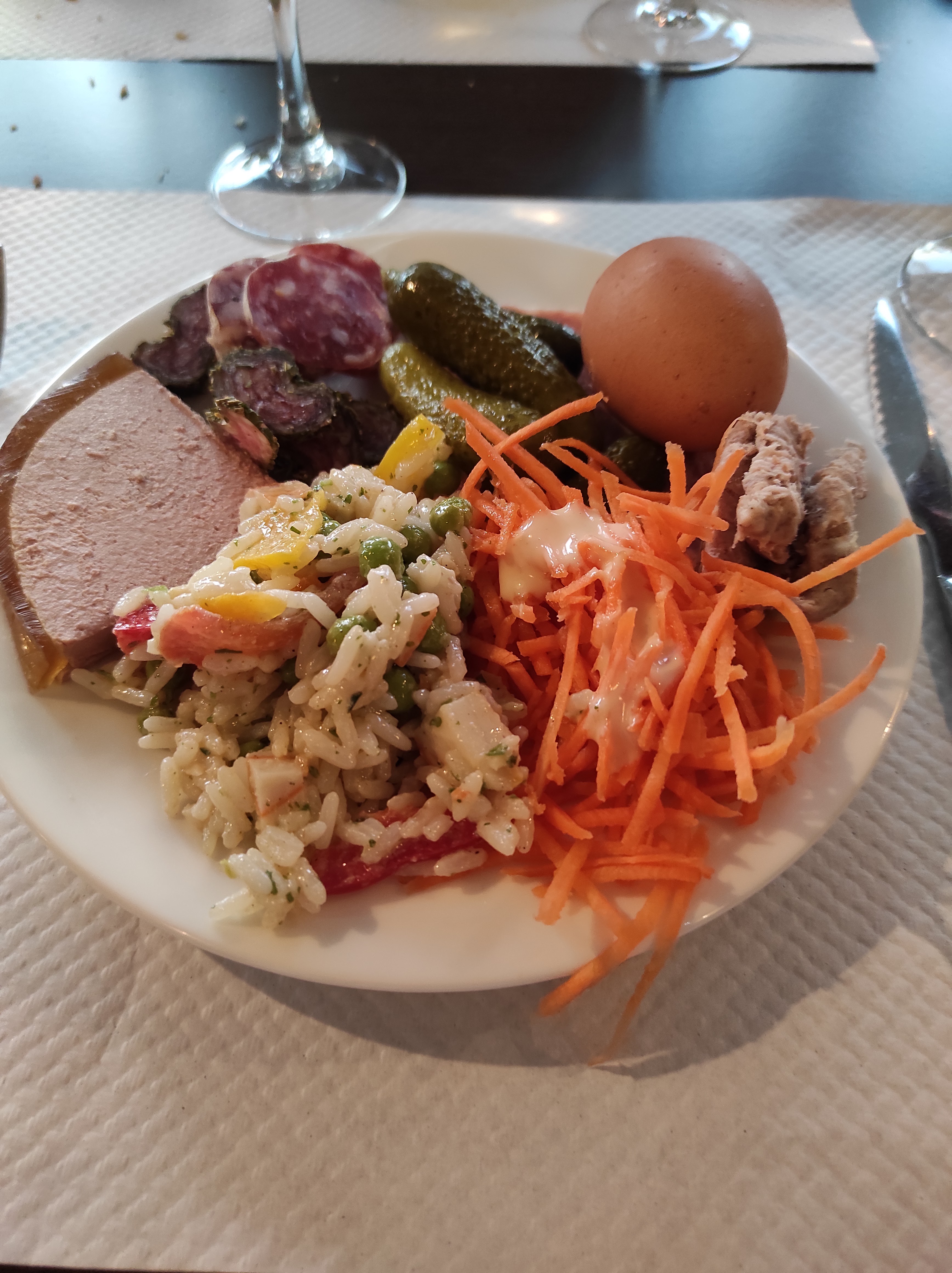Pour 15,90 euros pas mal. On a bien mangé au buffet, tout ce qu'on veut, ce qu'il y a dans l'assiette, puis ils arrivent et demandent ce qu'on va prendre chaud, steak ou galenka ou salade de goulasch ou frites, et puis dessert, et vin s'il te plaît.