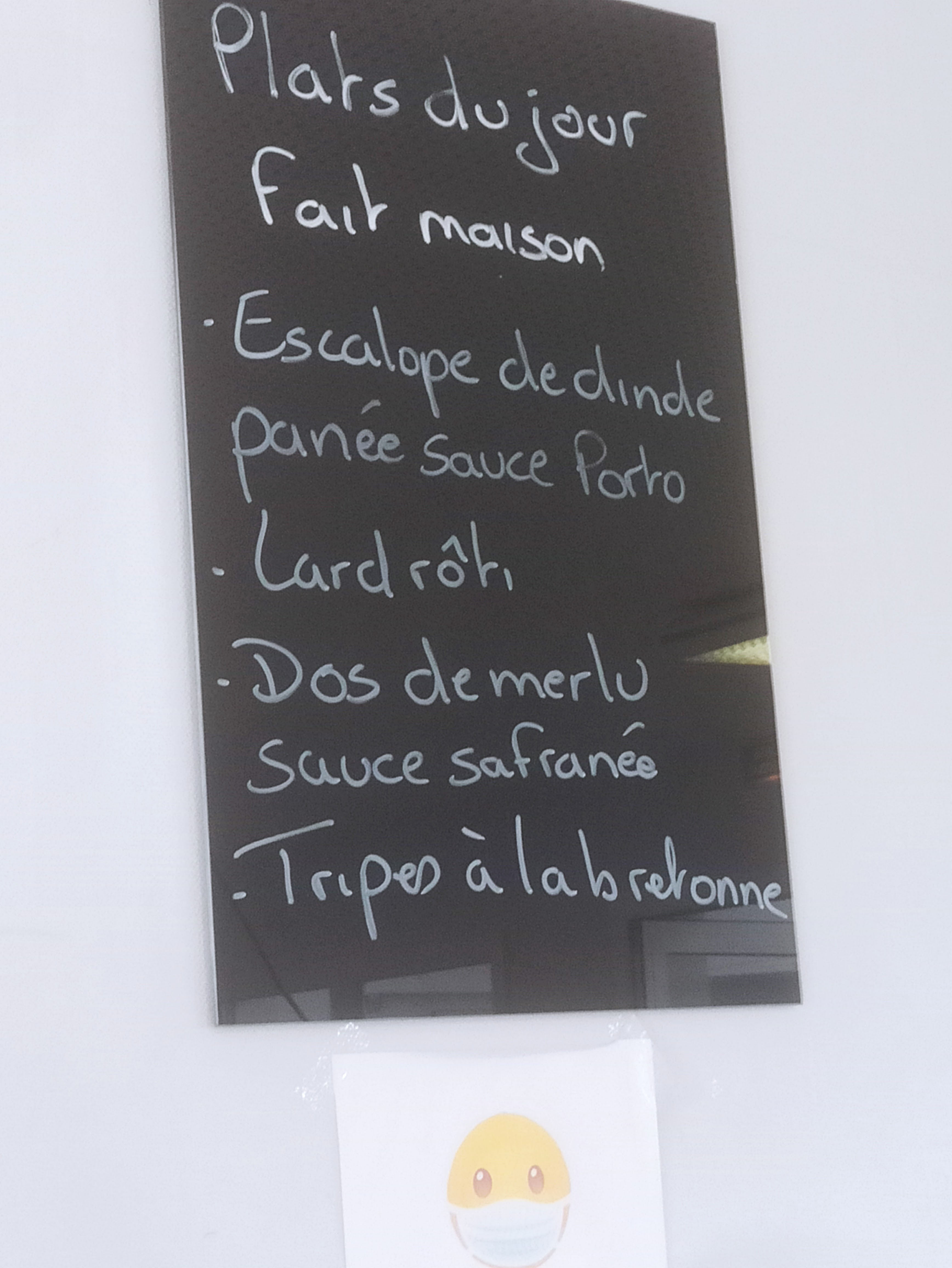 Plus de pain, 12h30, dans le plateau confinement oblige... on me met donc des restes de pain dur quantité de l'ensemble très juste plat tiède