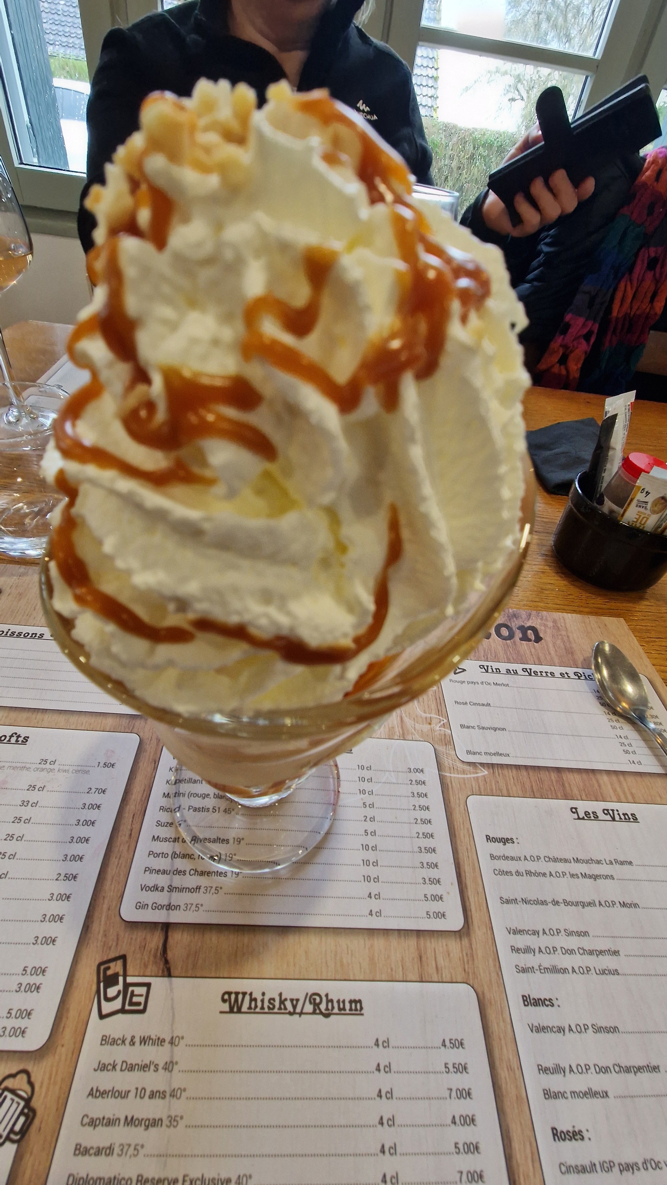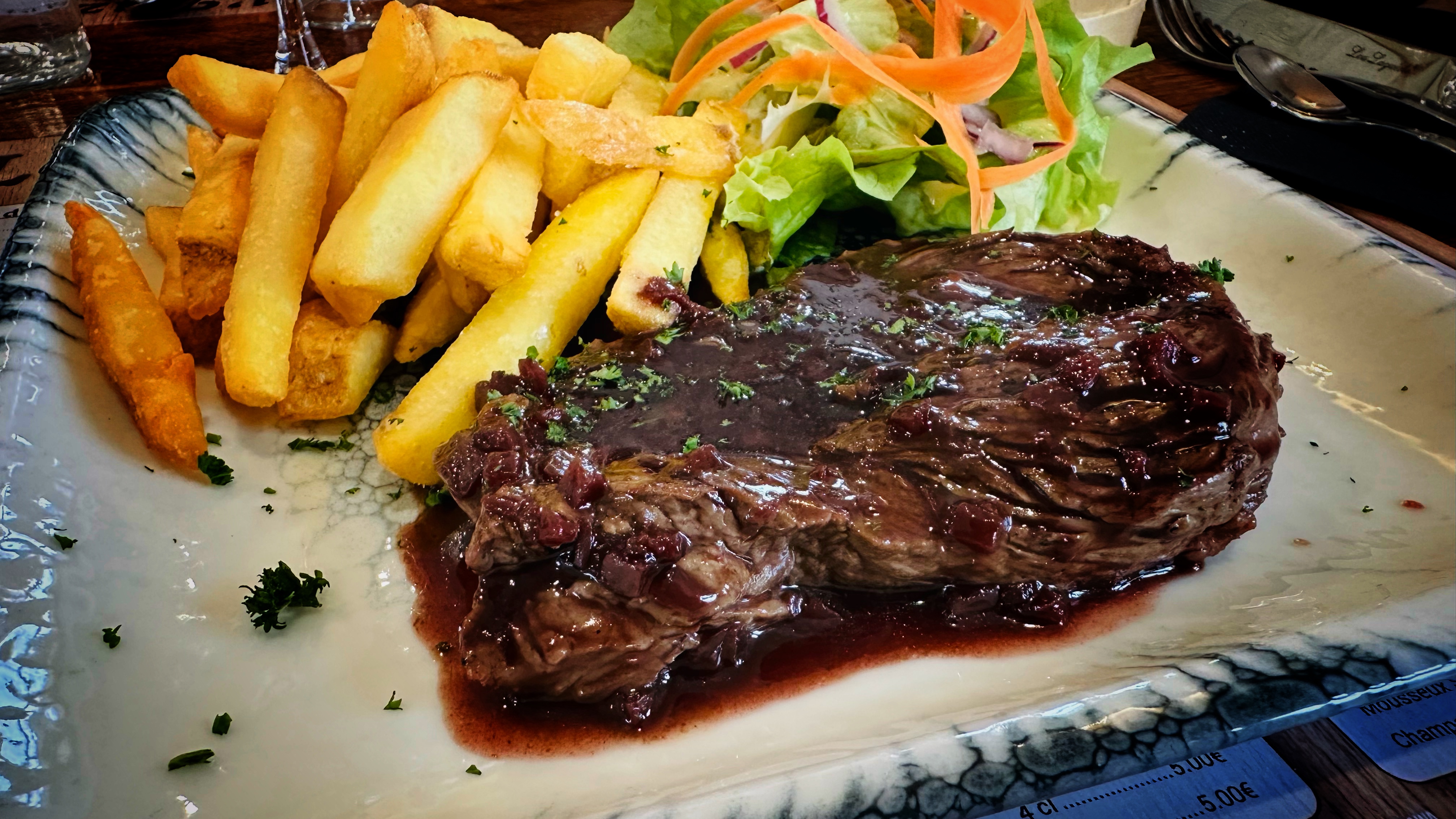 Super restaurant avec un personnel sympathique qui ne parle pas très bien anglais (mais je ne parle pas français🙈). L'entrée était du melon avec du jambon et de la glace, super savoureuse. Le plat principal était un steak de surlonge avec des frites, moyennement frites et très savoureuses. En dessert j'ai eu la Dame Blanche qui était aussi délicieuse C'était une agréable surprise pour un tel restaurant de village 👌🏻