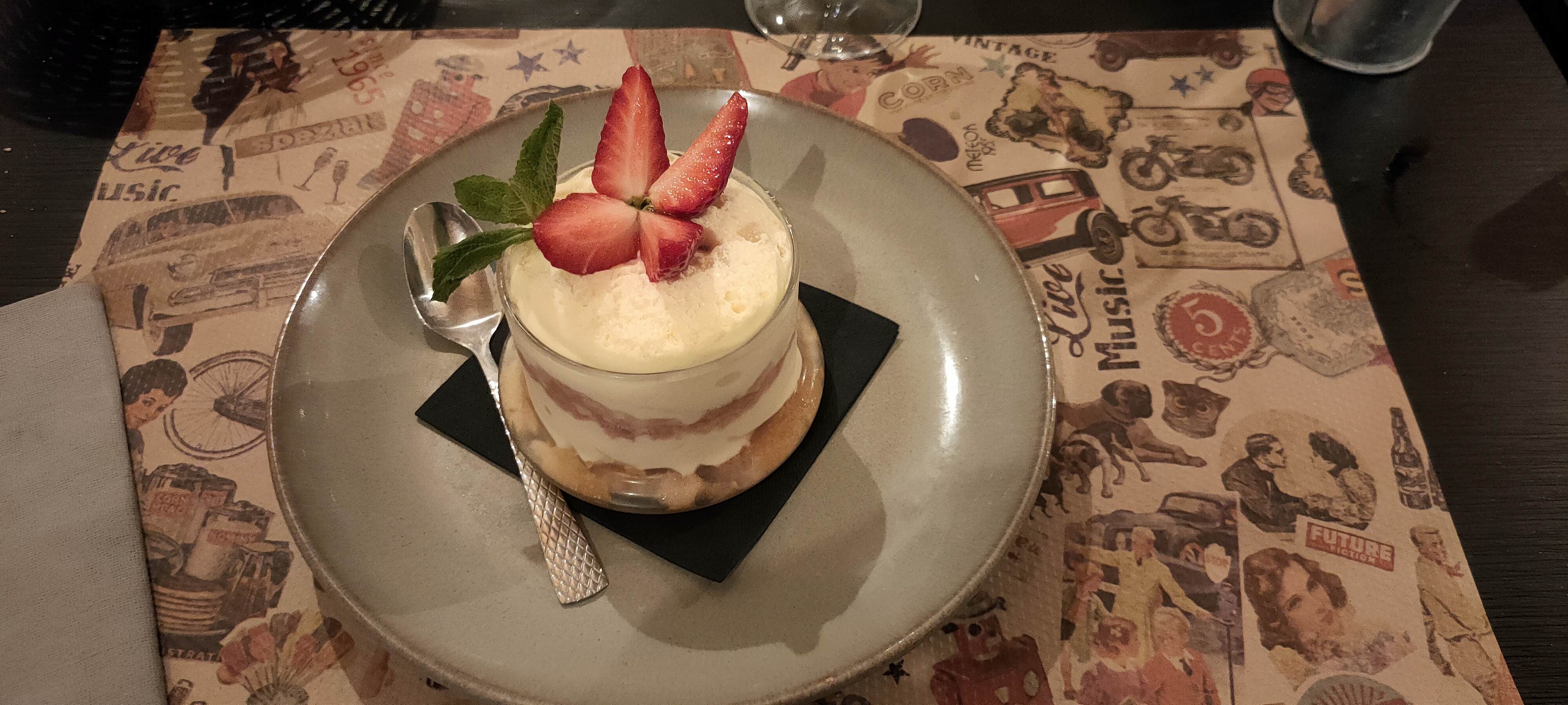 Nous avons passé un très bon moment en couple. Le repas impeccable Le service très bien, et le petit jeune homme très poli, il fait très bien son service et le nettoyage 😉