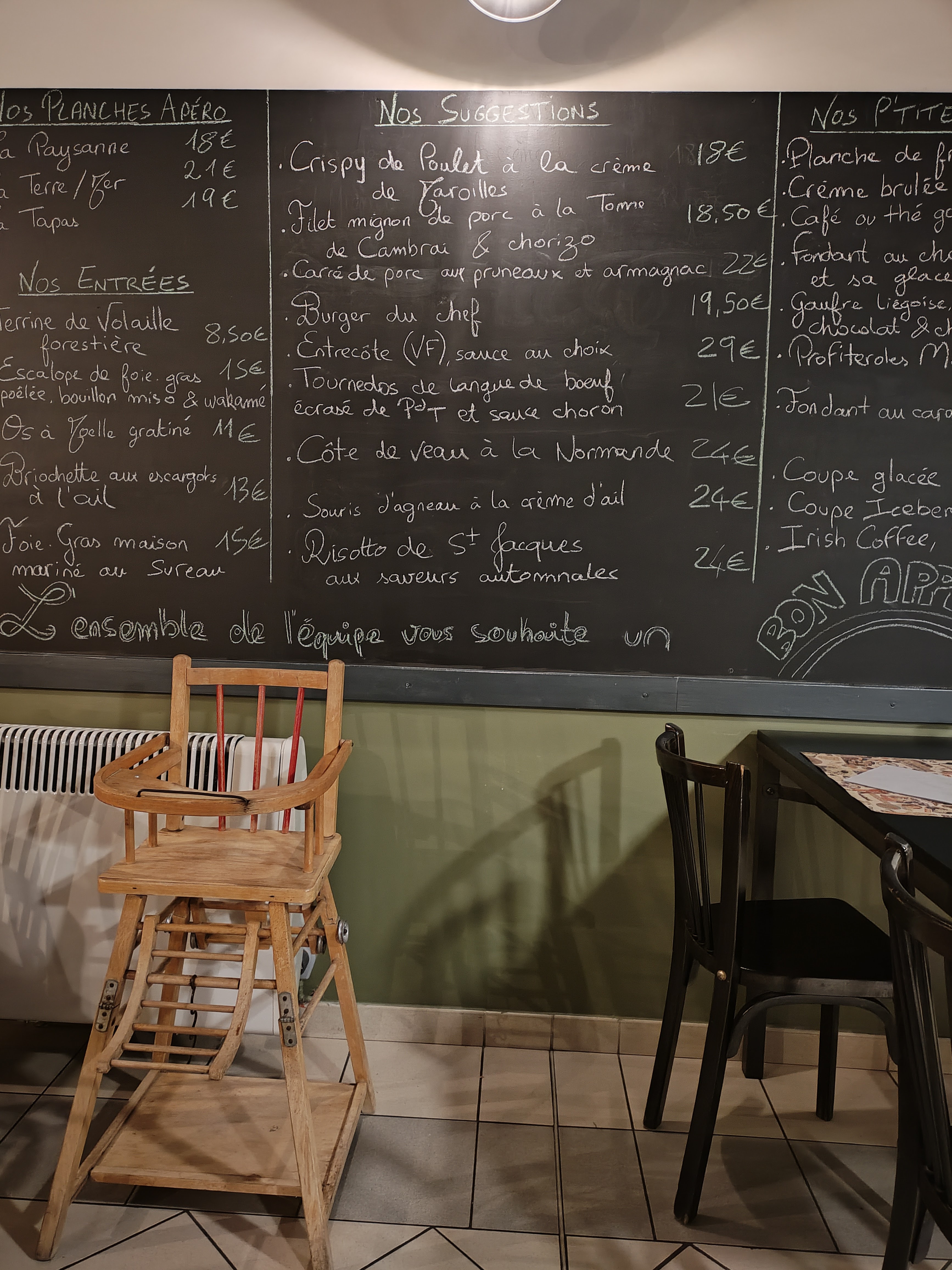 Le cadre est top Le repas était délicieux Le seul détail étant enceinte de 8 mois j aurais aimer être sur une banquette alors quil y en avait une de disponible et lors de notre arrivée je mettais aperçu quelle nous etait réservée.... car la chaise etait peu confortable dans mon état....