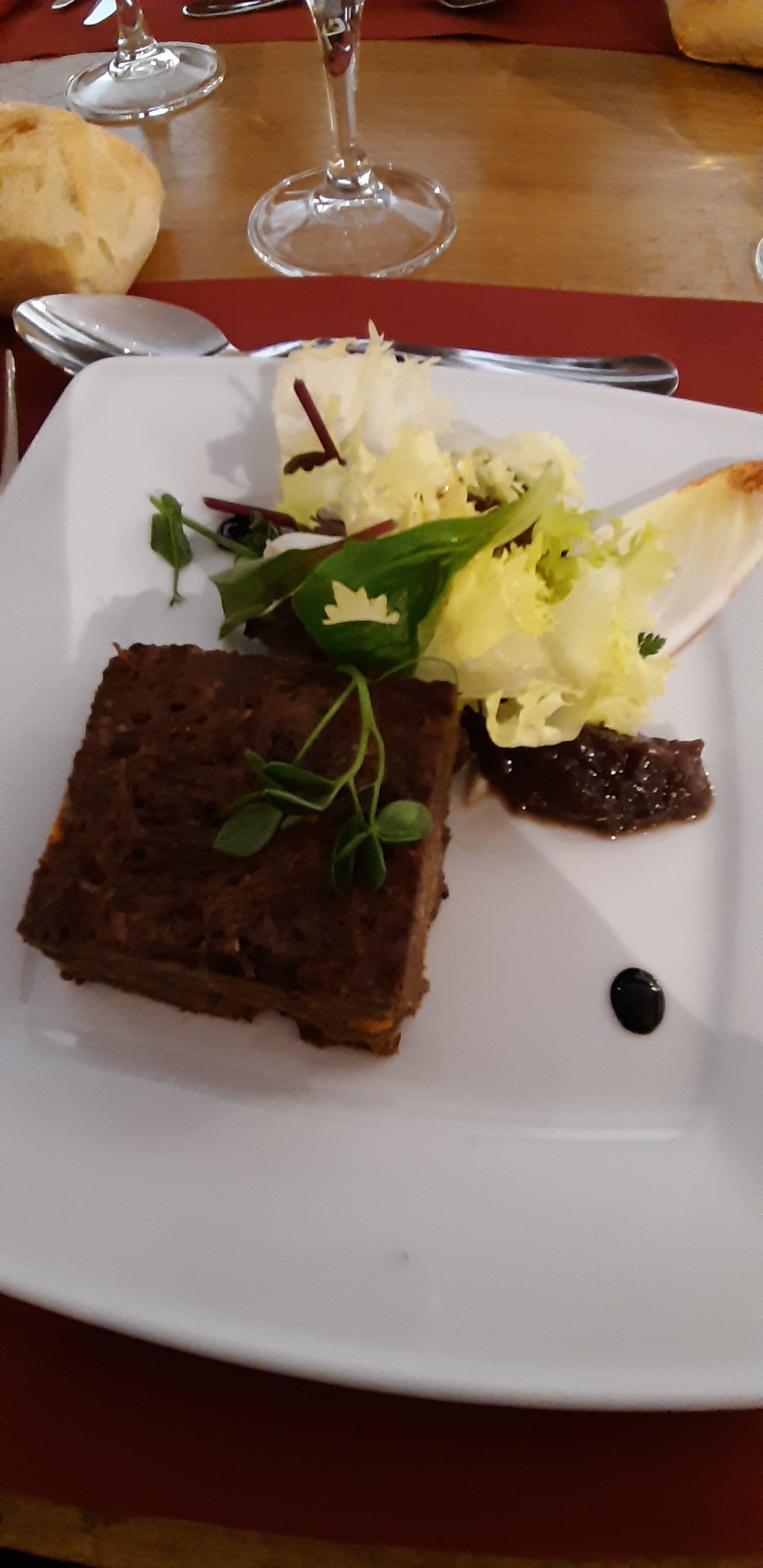 Nous avons très bien mangé un lapin a la moutarde avec lentilles et ratatouille et une salade de fruits frais et mon mari un pâté de boeuf , une salade composée copieuse lentilles, tomates, saucisse puis une assiette de fromages avec une 1/2 bouteille de Bordeaux très correct pour 56€. Le service était sympathique. Nous avons été très satisfait.