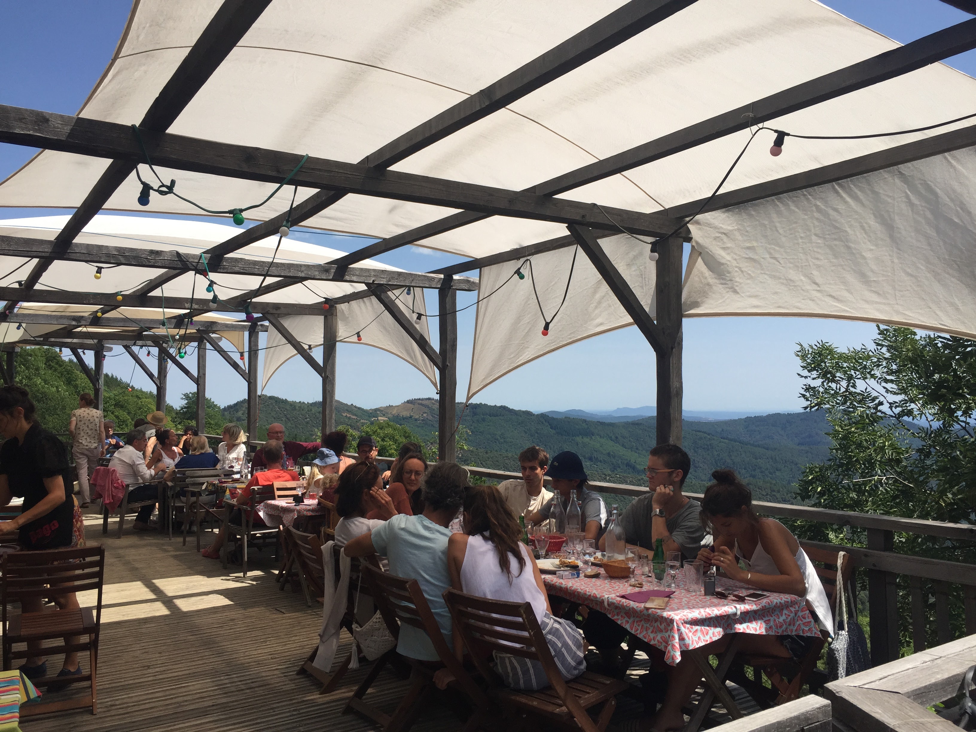 Un accueil chaleureux, une terrasse avec vue extraordinaire sur les Cévennes et une excellente table ! Un bémol, un gros même, l'hygiène de leurs toilettes sèches laissent vraiment à désirer.