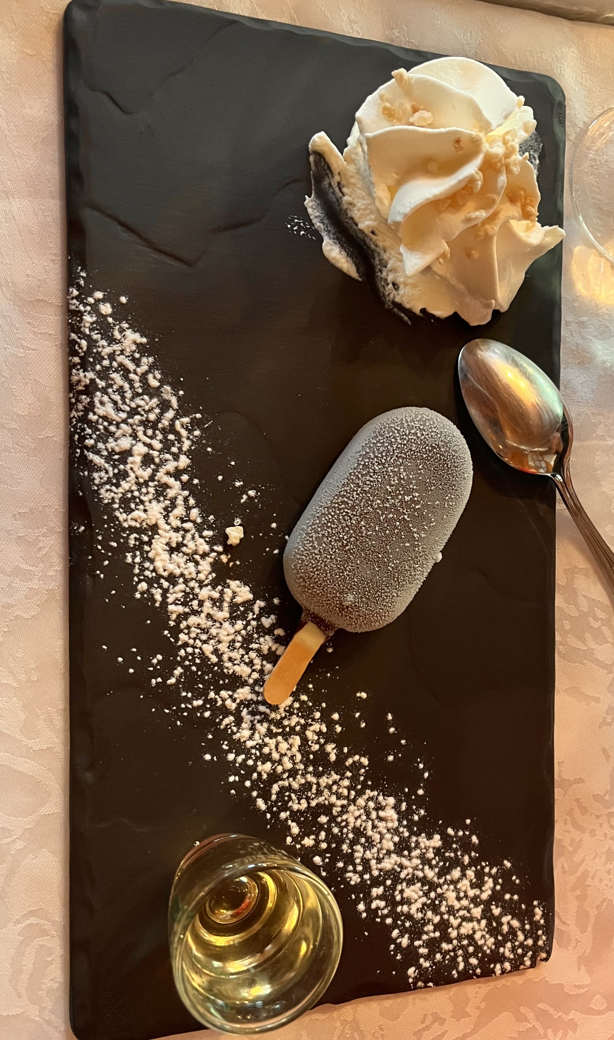 Service incompétent ! Les amuses bouches du chef ont été débarrassés à la commande du dessert et l’apéritif était encore à table lors de notre départ.Nous avons patienté + d’1/2H dans le froid à l’extérieur (sans avoir eu le choix de manger en intérieur) pour avoir notre dessert , ma dame blanche était servie dans un verre à bière et c’était de la soupe ? pour un tarif des plus élevé ! Lorsque un serveur vous pose la question: vous voulez une cuillère ou non ? C’est franchement pas terrible surtout lorsque qu’il revient pour le jeter sur la table pour ma part il y a beaucoup mieux et surtout moins cher sur BERNEX