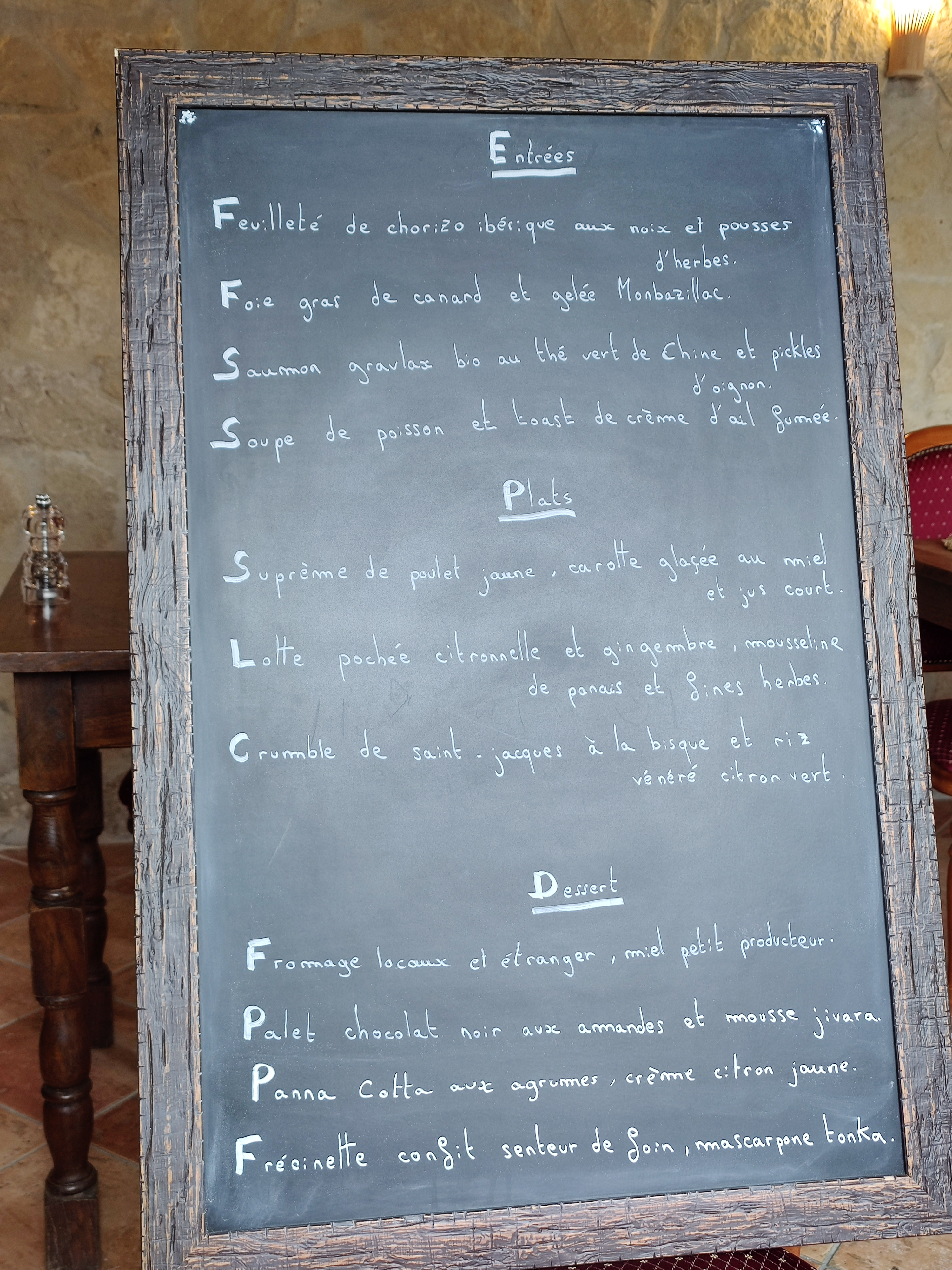 Bonne cuisine française. Goût particulier. Au printemps/été au grand air. Du bon vin aussi