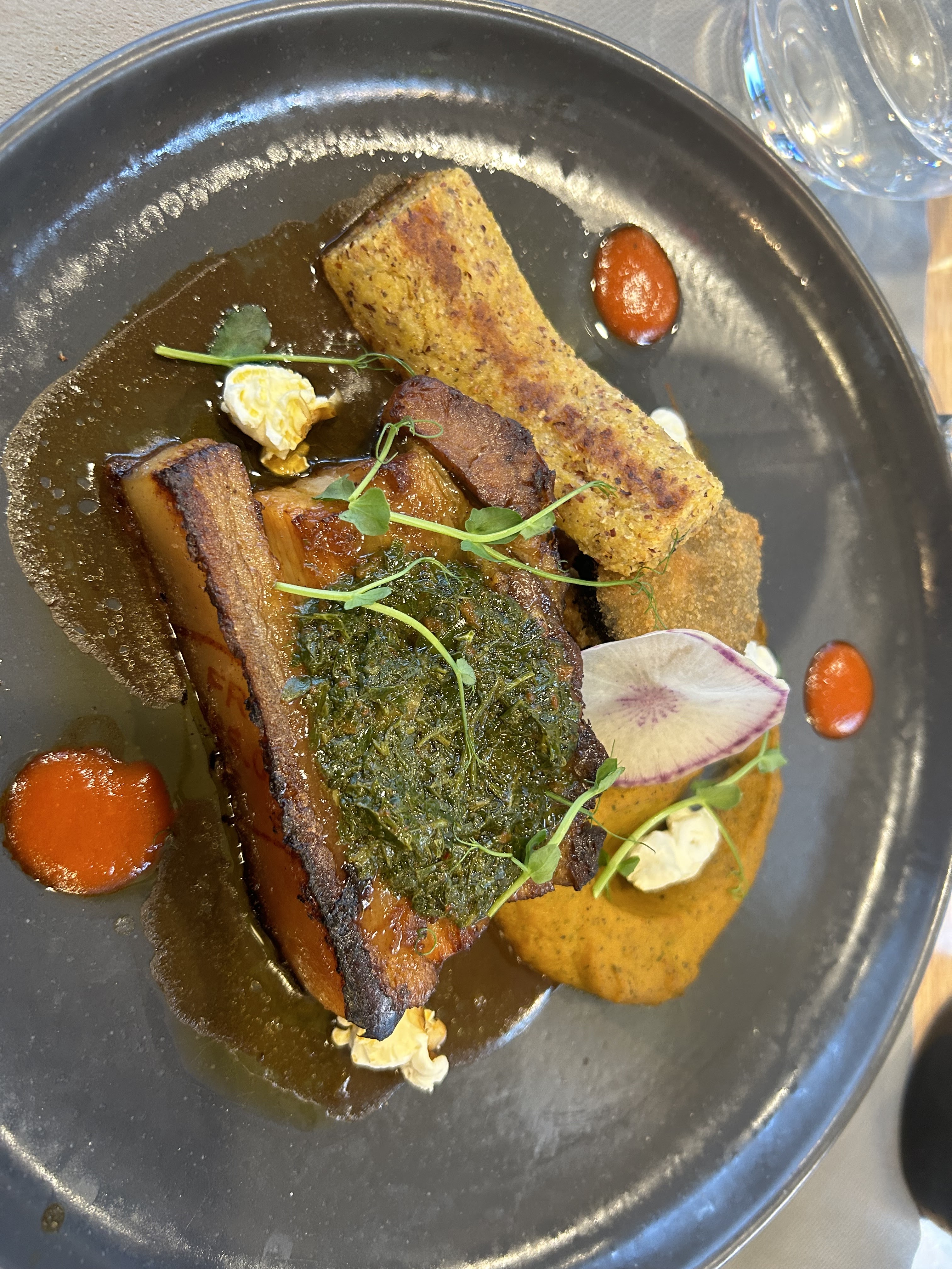 Superbe vue avec la terrasse donnant sur la niveau. Excellent repas, qui est copieux. Le paleron fondant est exquis mais trop gras. Si vous etes gourmand avec entrée/plat/dessert, attention a la digestion, très difficile pour moi.