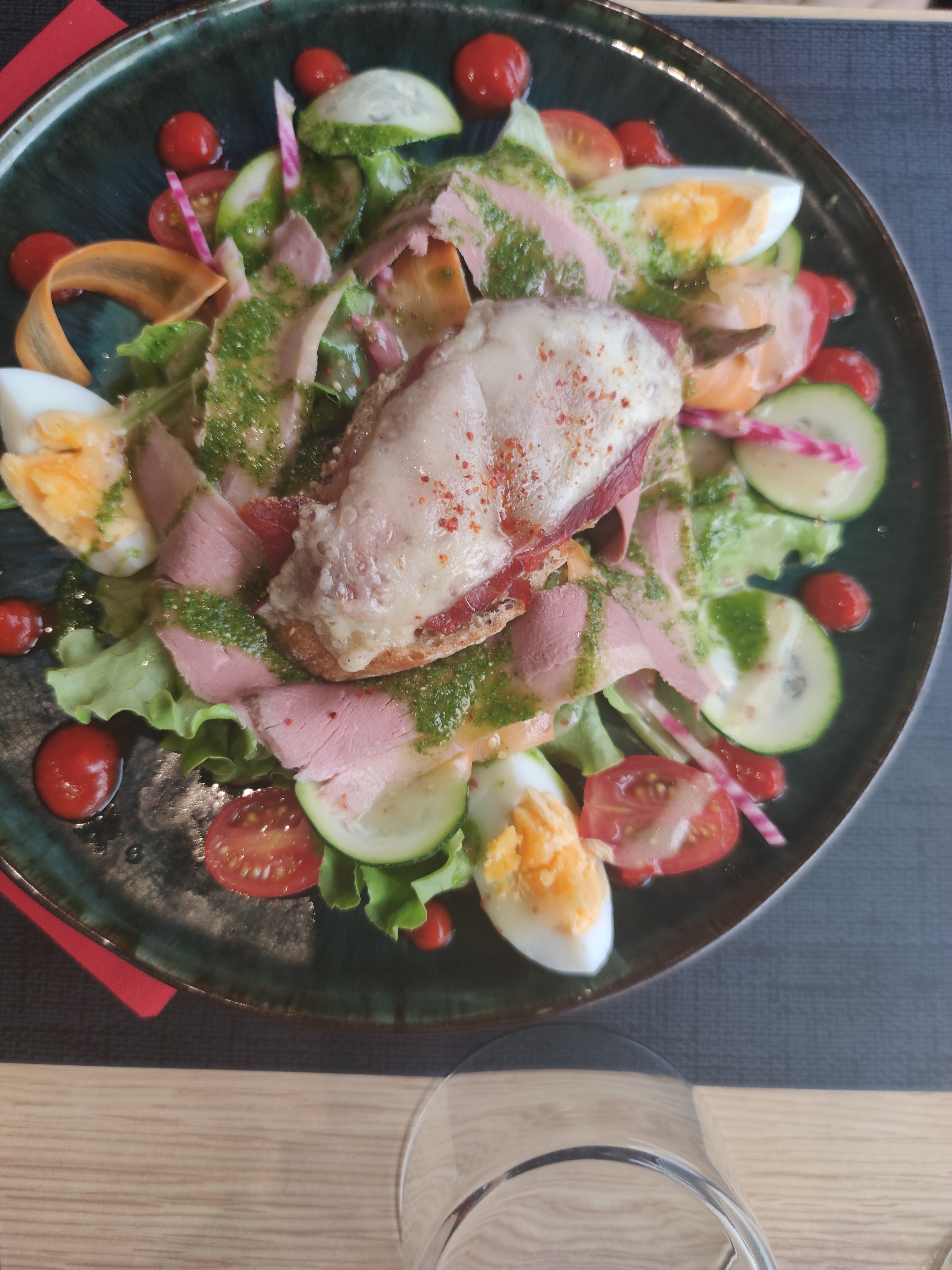 Je recommande à 100%! Nous nous nous sommes régalés avec la rillette de truite et le ragoût de boeuf et vin rouge de la région au verre. Les assiettes sont copieuses et composées de produits frais et locaux de qualité. Un service accueillant, souriant. avec vue sur la Nive. Digne d'un resto gastronomique
