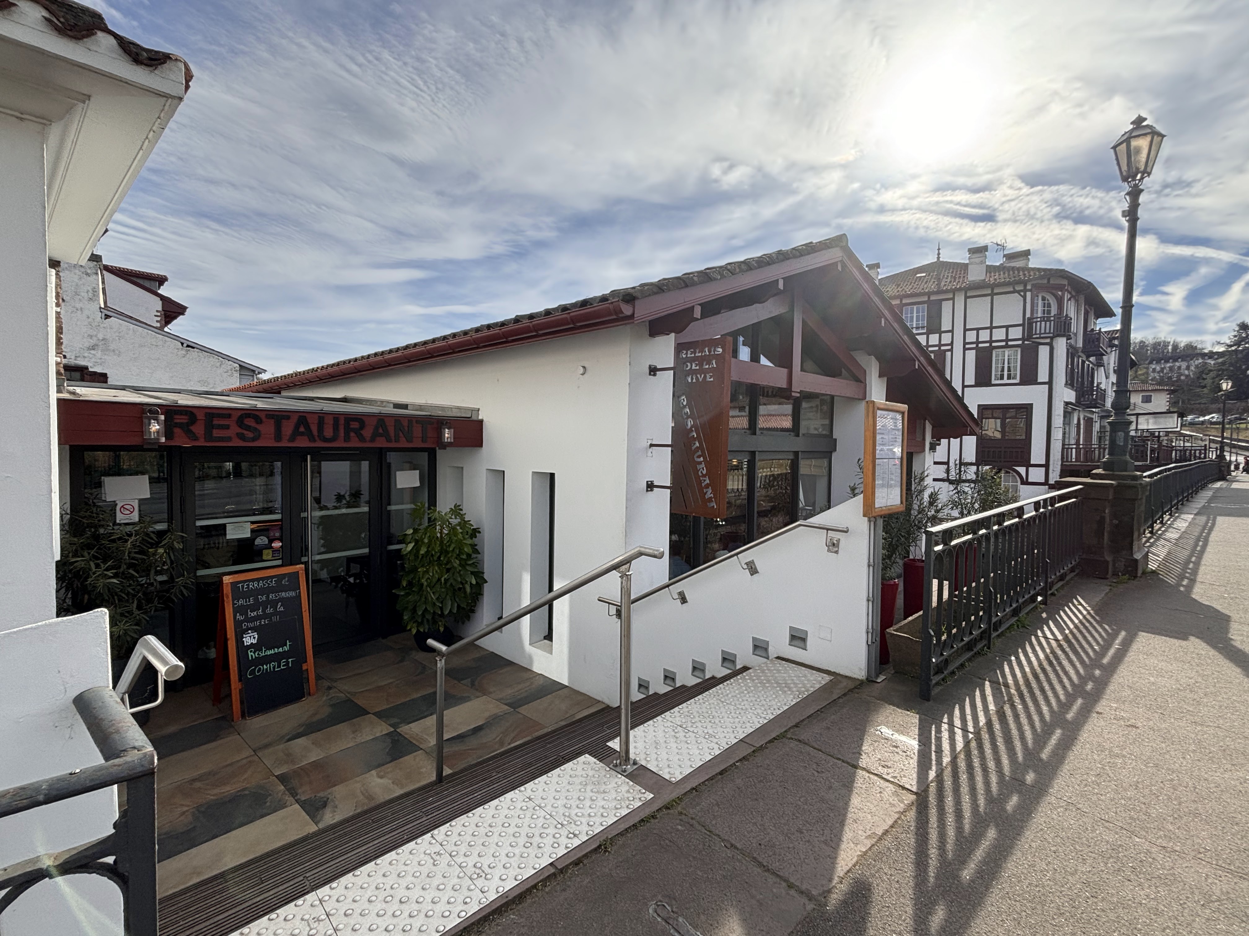 Au bord de la nive et proche de la rue principale mais bien insonorisé. Décoration soignée et agréable. Le menu carte est d’un très bon rapport qualité prix. Les plats sont très bien présentés, suffisamment copieux avec une pointe d’originalité. Nous nous sommes vraiment régalés avec un bon cote du Rhône de chez ogier à prix doux. Service efficace et très professionnel. Rien à redire