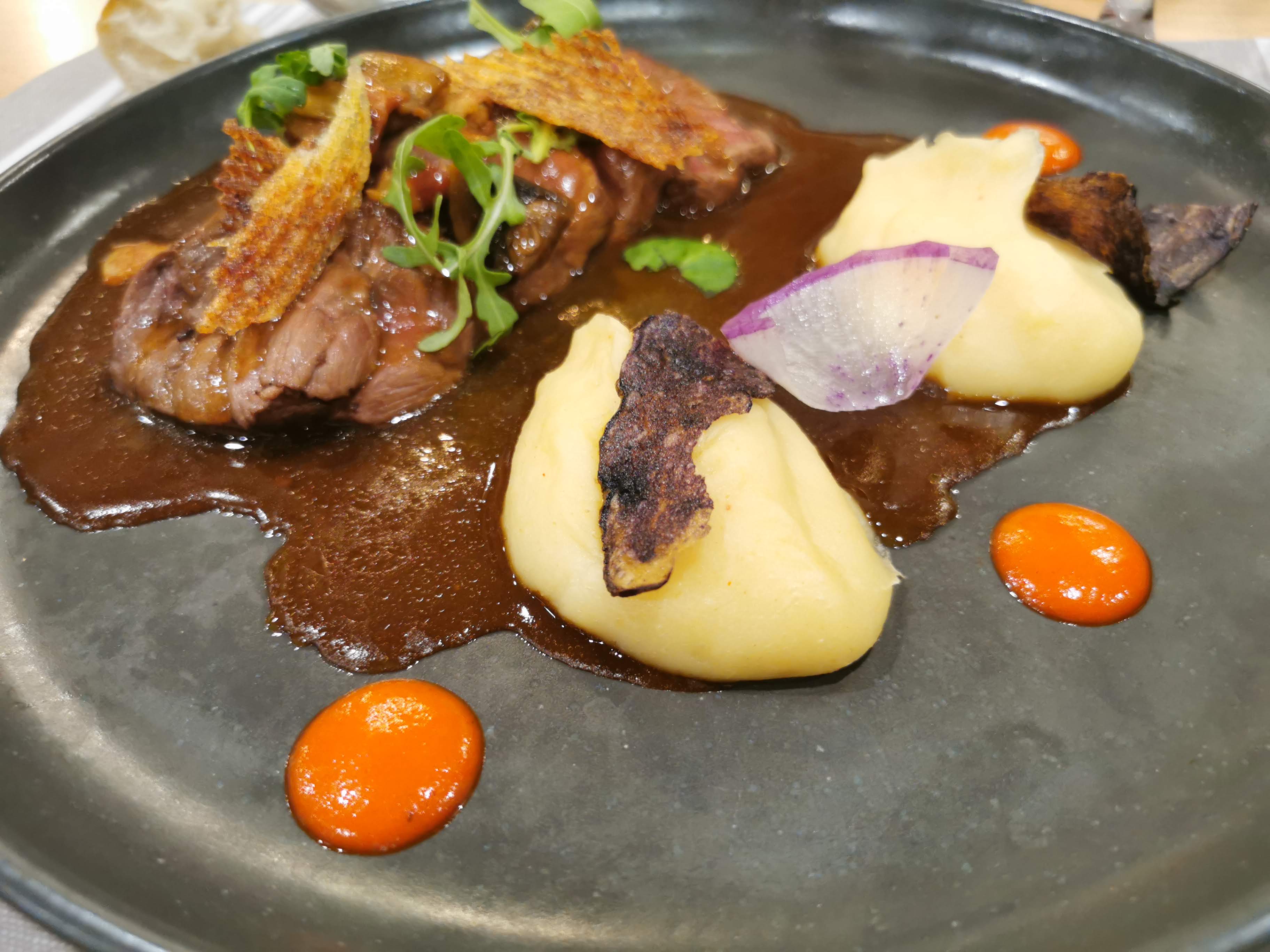 Accueil sympathique. Le bœuf est un délice.cuisine savoureuse . Beaucoup de travail dans la préparation et la présentation pour un résultat délicieux. Merci!