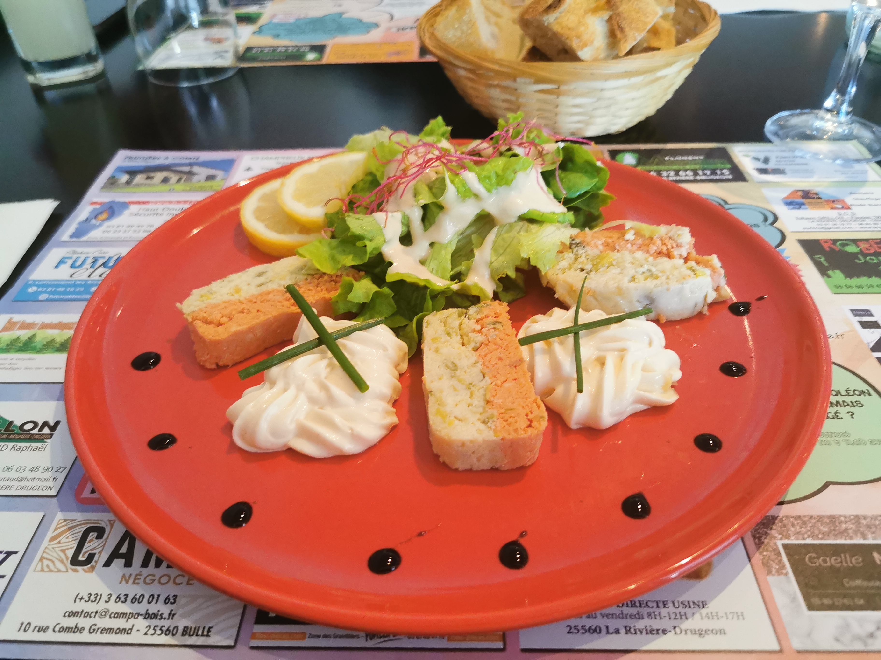 De passage à moto, le relais était un point d'étape pour le midi. Nous avons goûté aux raviolis d'écrevisses a la bisque de homard et a une salade double de millefeuille au comté avec de la saucisse de Morteau sèche fumée. Deux plats digestes qui étaient délicieux. Nous repasserons a l'occasion.