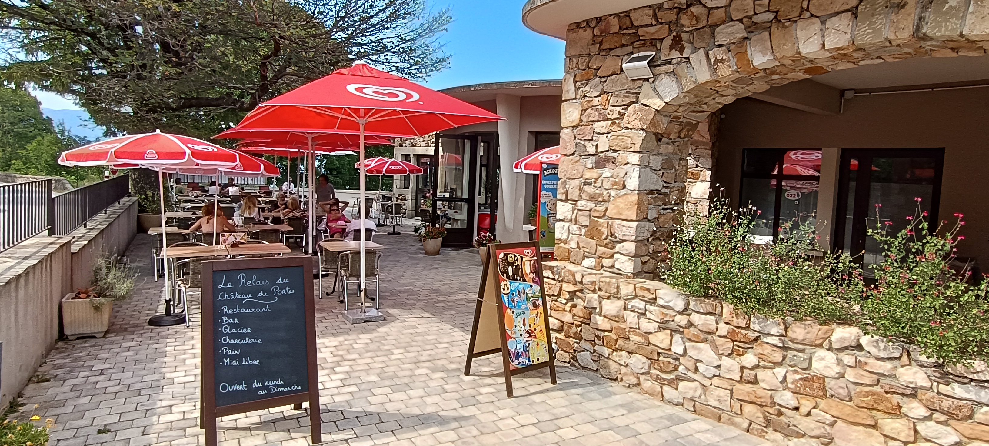 Je m y suis arrêté que pour une pause boisson glacé Terrasse très agréable à l ombre. Avec les cigales c est les vacances. Parking du château ombragé.