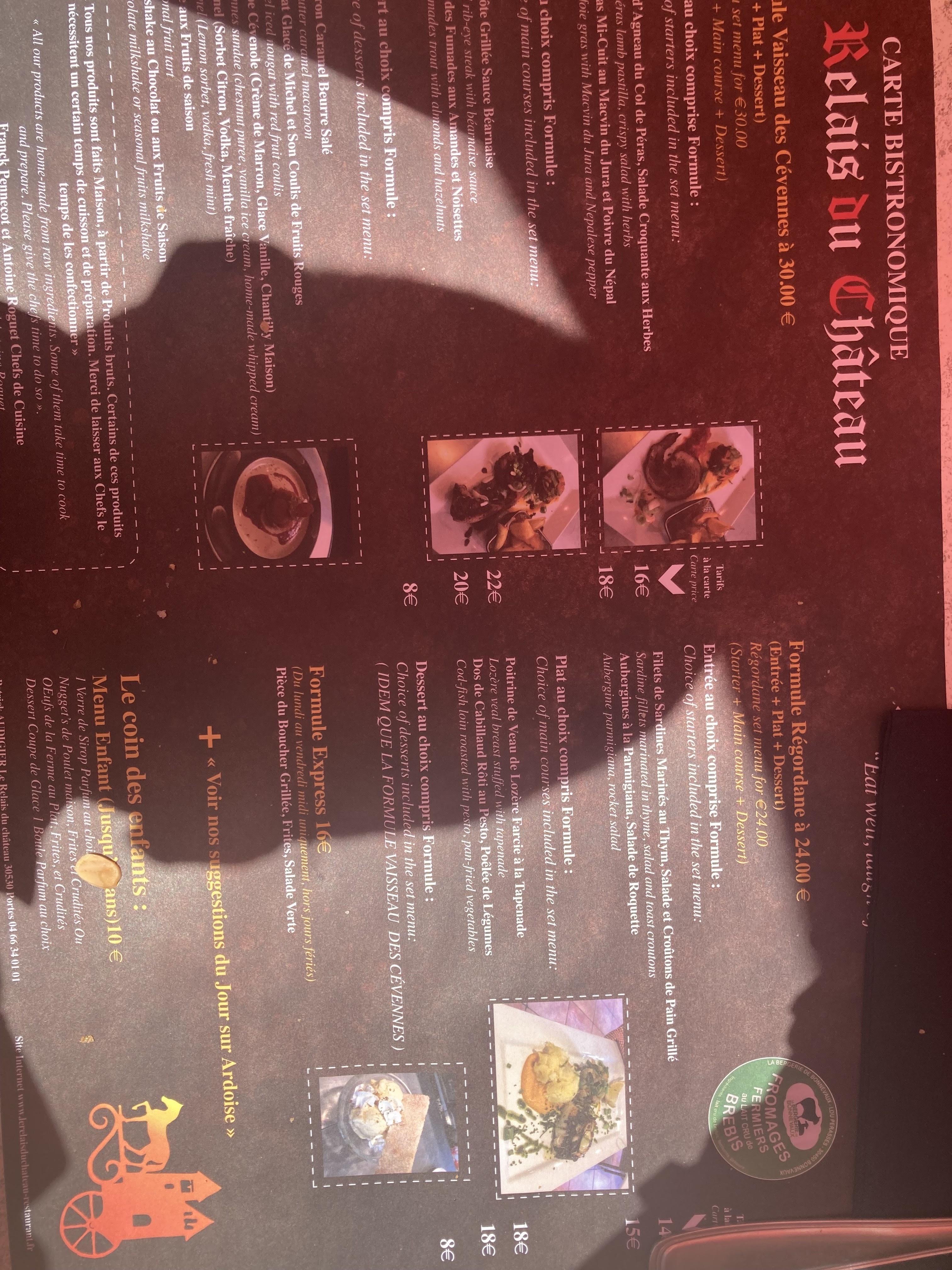 Je ne sais pas comment une minorite (heureusement) puisse mal noté ce lieu j aimerais savoir où ils mangent habituellement baujourdhui nous avons ete en ce lieu pour la 4eme fois tjrs bien manger pour un prix justifie un personnel au petits soins et le tout dans un cadre d un cote le mont lozere et de l autre le vaisseau en cevennes (le chateau pardi !) et ce jour j ai assiste a un moment desopillant! Un monsieur a quitte sa table en plein repas ! La raison ? Trop de mouches selon lui ! Effectivement il y avait quelques mouches mais qu'y faire il n y a pas d'animaux a proximite ! Que va faire ce monsieur mettre un avis defavorable sur cet etablissement ? C est du n importe quoi! Il y a des gens qui parce qu'ils payent pense qu ils ont tous les droits eh bien non !