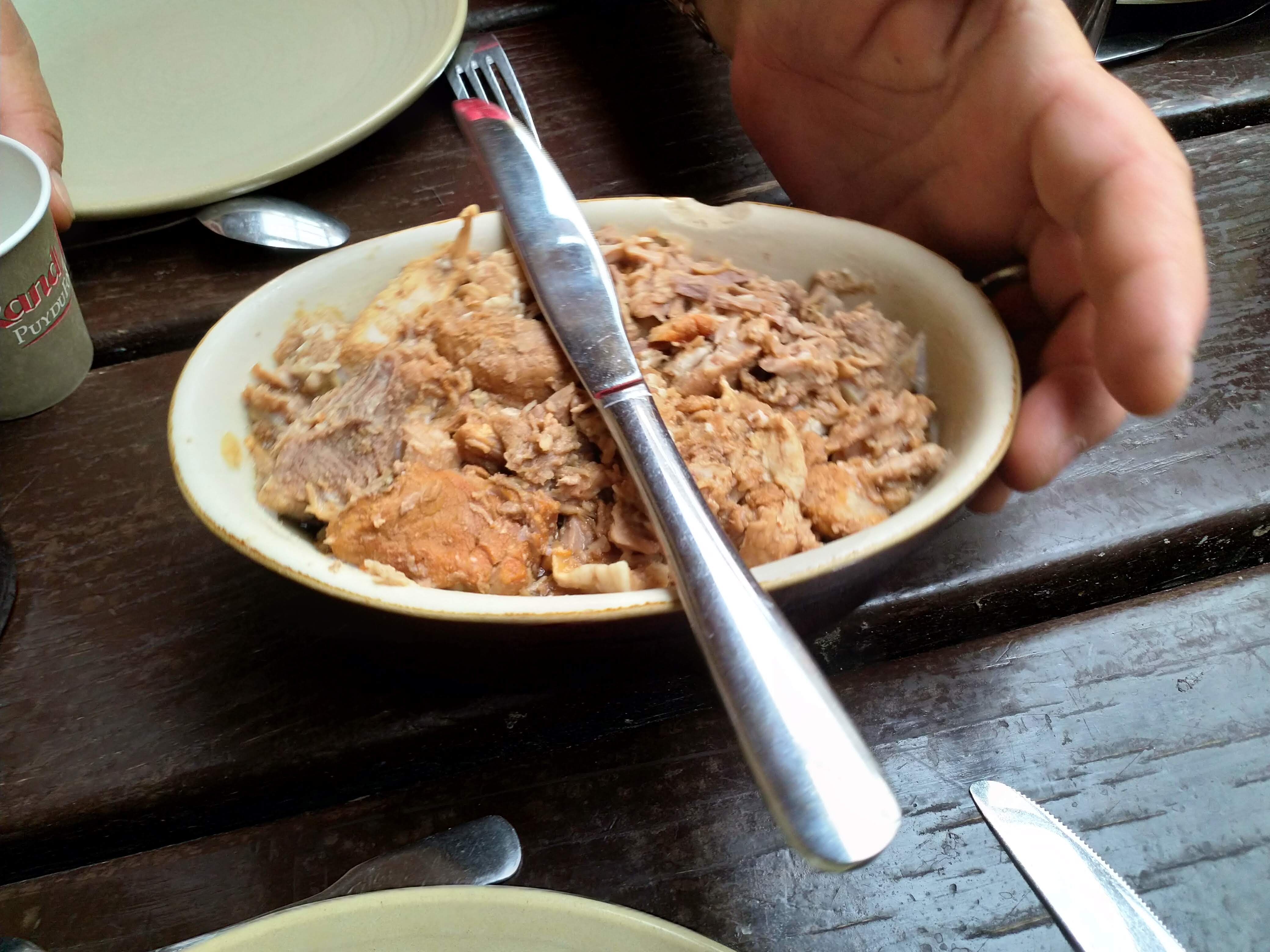 Repas correct mais sans plus, boire dans une timbale en acier pourrait être sympa mais laissé un goût métallique à l'eau. Du coup nous n'y avons mis que du vin ( un 2eme verre ne serait pas du luxe). L'animation est sympa mais un peu légère