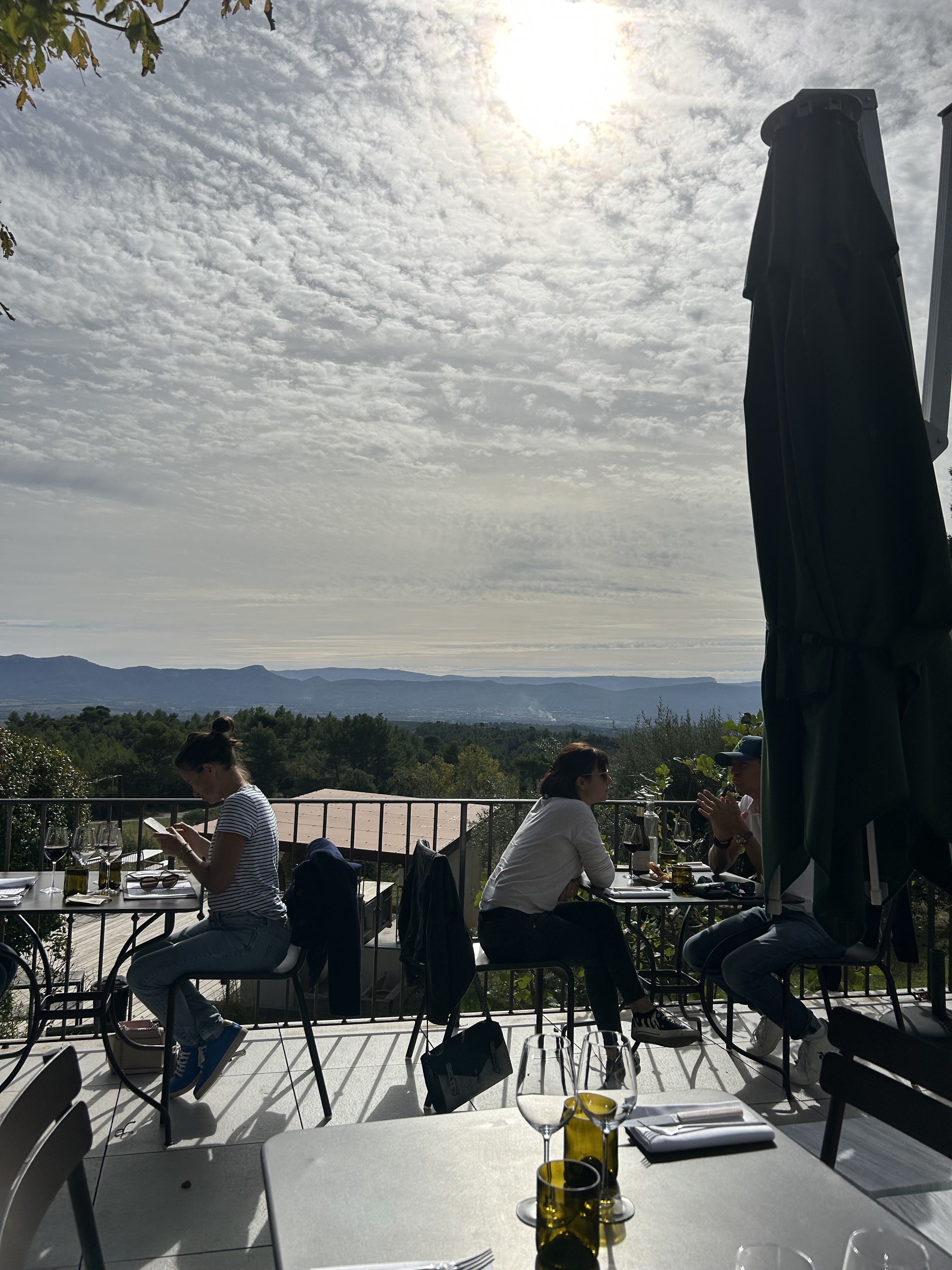Le lieux est idilique avec la vue sur la vallée et la montagne saint victoire derrière. Cependant prix prohibitif pour la qualité des produits , accueil froid , pas eu de réponse à mon merci bonne soirée au moment de payer ...