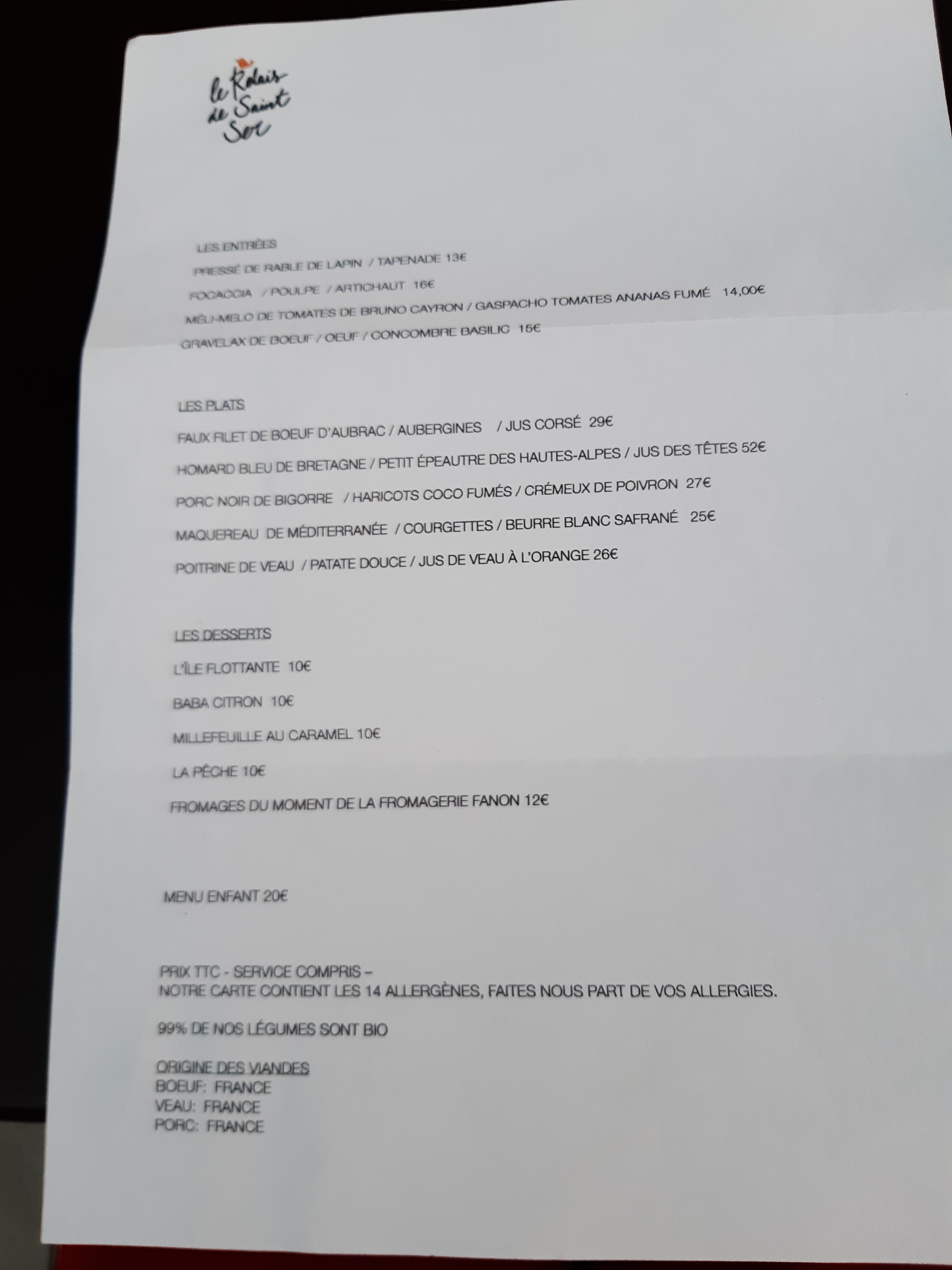 Un cadre sublime qui ne compense malheureusement pas le manque d’amabilité du personnel. L’accueil est froid et impersonnel. On s’attend à bien mieux quand on vient manger dans un endroit pareil. Quant aux plats, s’il n’y a pas eu grand chose à redire pour la plupart (rien de mauvais, mais rien d’exceptionnel non plus), nous étions 3 sur 5 autour de la table à avoir opter pour une pièce de viande accompagnée de sa purée à la truffe… nous cherchons encore la truffe ! Nous le signalons à un des serveurs qui nous répond qu’il va immédiatement avertir le chef de ce problème. Résultat ? Il n’est jamais revenu nous voir à ce sujet. Nous n’avons eu aucune explication, aucun excuse et aucun geste de fait sur l’addition. Quel professionnalisme… ! En sortant du restaurant, la famille assise à côté de nous fait le même constat que nous : accueil déplorable et une purée à la truffe qui n’a pas du tout le goût de truffe. Ça fait beaucoup de déceptions pour un seul service ! En résumé, évitez ! En tout cas, nous, on ne risque pas de revenir au Relais Saint-Ser, tant pis pour la vue…