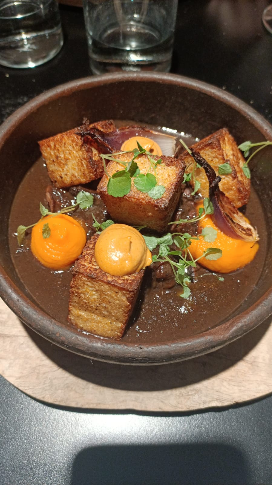 On avait entendu de cette établissement en bien. La route pour y aller est belle. Mais l'accessibilité était compliqué mais ils n'y sont pour rien. On arrive dans une ambiance tendue, froide, pesante. Une carte en feuille a4 pliées (on a vu mieux).Des serveus déconnectés au point de nous proposer une deuxième fois un dessert. Pour la cuisine, je me suis personnellement régaler. En revanche une viande demande saignante est arrivé trop cuite mais à été remplacé. Pas d'option vegan. Et des portions légèrement trop petite. Une première expérience décevante.