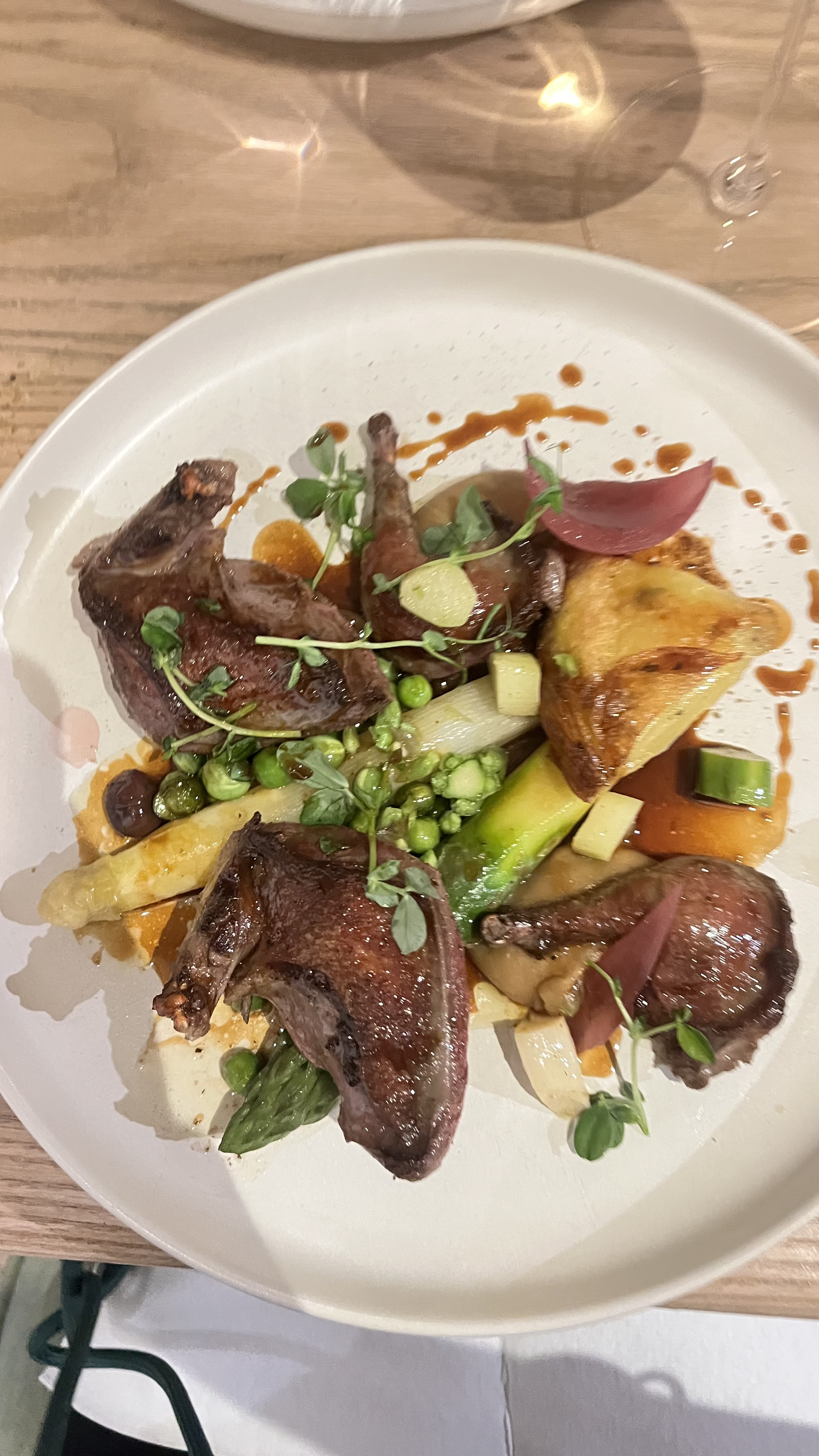 Belle expérience mais pour des bons mangeurs les quantités restent légères et manger des asperges, de la poitrine et finir par un sorbet fraise pour 66€, même si ça reste bien travaillé cela reste des produits bon marché. Pour le prix le fromage pourrait être servit, à méditer.....