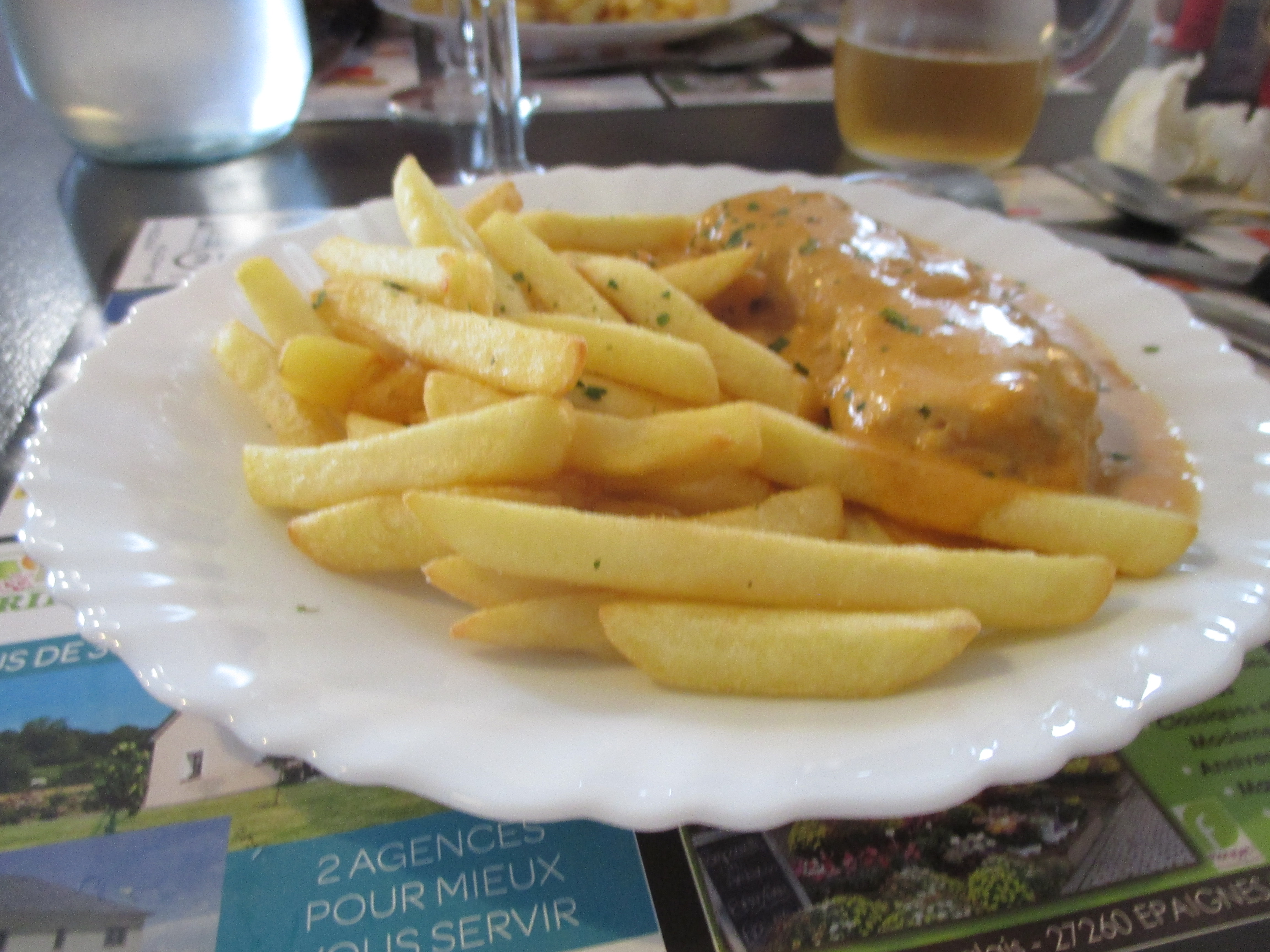 Le Relais de Tancarville à 27120 Foulbec, 29 juin 2022 2 Menus à 13,50€ + 2 cafés à 1,00€ = 29,00€ Menu = Entrée + Plat + Boisson + Fromage + Dessert Michel Boisson: Eau. Buffet d‘entrées: pris œuf dur, Museau et salade trio choux jambon Emmental.. Plat: Andouillette sauce au poivre avec frites.. Fromage: Munster et Pont-l’évêque. Dessert: Pudding. Café Alain Boisson: Pichet de Cidre. Buffet d’entrées: pris Melon, Saucisson à l’ail, Aiguillette de jambon à la Macédoine et salade trio choux jambon, Emmental. Plat: Dos de Colin sauce Aurore avec frites. Fromage: Plateau, pris du Camembert. Dessert: Compote de pommes. Café Récit: le parking est réservé aux Poids-Lourds, et ceux à proximité aux institutions. Il y a de la place en façade mais deux jardinières et des poteaux barrent l’accès; J’arrive à me glisser entre 2 poteaux « au chausse-pieds ». Le resto est accessible aux handicapés, mais pas les toilettes. Le buffet offre pas mal de choix et je pense que c’est du fait maison. Nos plats sont vraiment bons et nous apprécions. Le plateau de fromages est à température ambiante et j’aime ça. Pour les desserts, je pense que c’est de l’industriel, ma compote est quelconque et Michel trouve « qu’il manque quelque chose » dans son pudding. La serveuse est seule et il y a du monde, malgré tout nous avons déjeuné en une heure. Conclusion: le parking pose problème, mais le menu est très abordable, suffisamment copieux et très bon; Le café à 1,00€ est sans concurrence. Une adresse à retenir si vous allez près du Pont de Tancarville ou près de Honfleur.