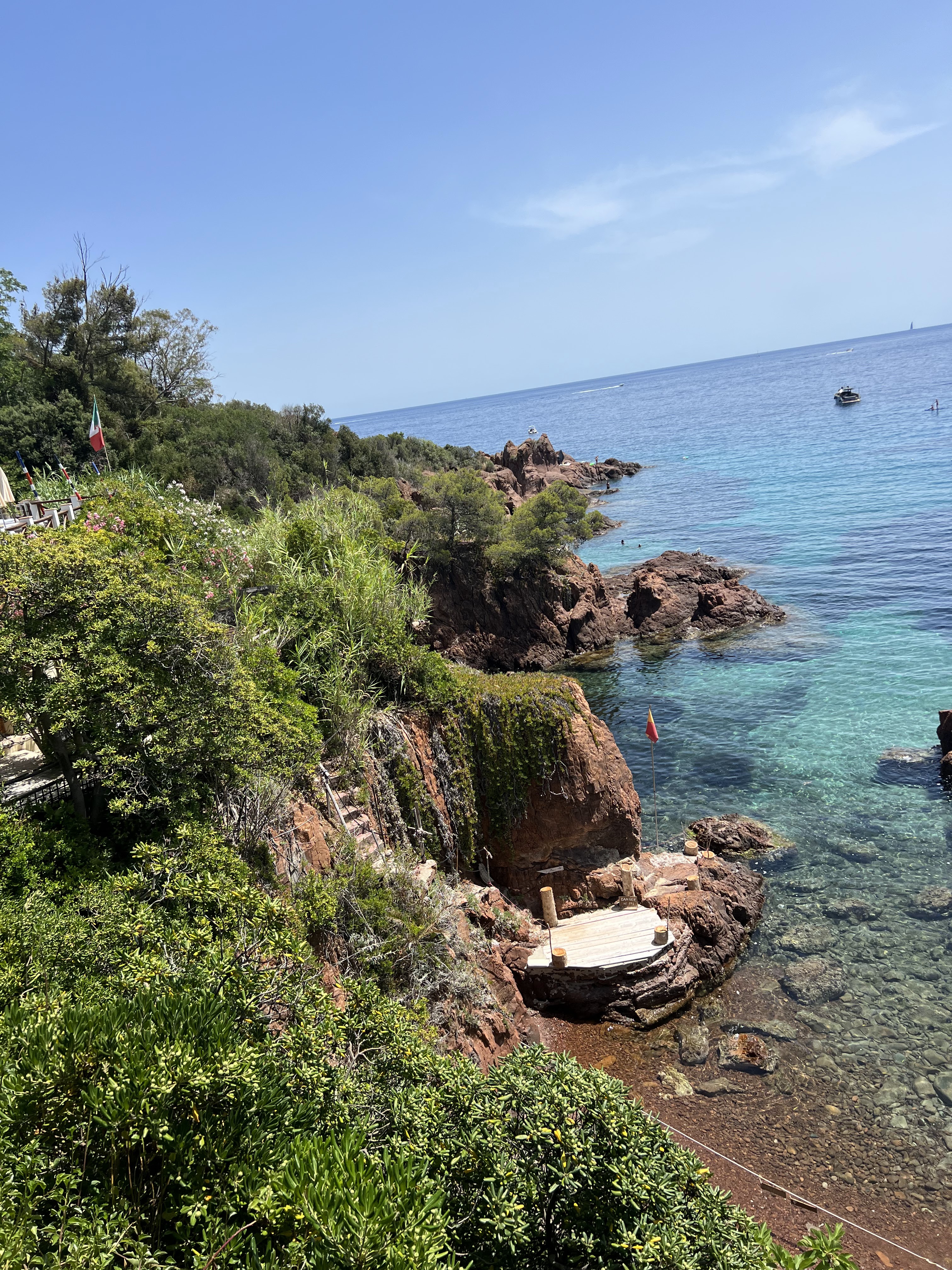 J'ai adoré l'expérience dans ce manoir/hôtel/restaurant du 19ème siècle ! Vous pouvez séjourner en tant qu'invité à l'hôtel ou simplement vous y rendre sans rendez-vous. Dès votre entrée, vous êtes plongé dans l'atmosphère de l'antiquité et de l'opulence, tout en ressentant l'accueil chaleureux des hôtes. La maison regorge d'objets anciens (échiquiers, etc), de vieilles bouteilles de vin et de livres d'art. Le meilleur, c'est la vue : la maison a une vue incroyable sur la mer et les rochers rouges. Un menu 3 plats coûte environ 30€. Il est également possible de passer la journée au bord de la piscine et de louer un transat. C'est 20€ par personne et comprend la possibilité d'emmener le paddle board dans la mer pour une durée illimitée. Dans l'ensemble, que vous choisissiez d'y passer la nuit, la journée ou simplement de venir déjeuner, vous passerez un moment de détente loin de l'agitation des villes voisines, Cannes et San Raphael. Fortement recommandé pour une escapade douillette dans la nature tout en profitant du confort de la maison, de la cuisine savoureuse et de l'accueil chaleureux des hôtes 🤗🍷🍜