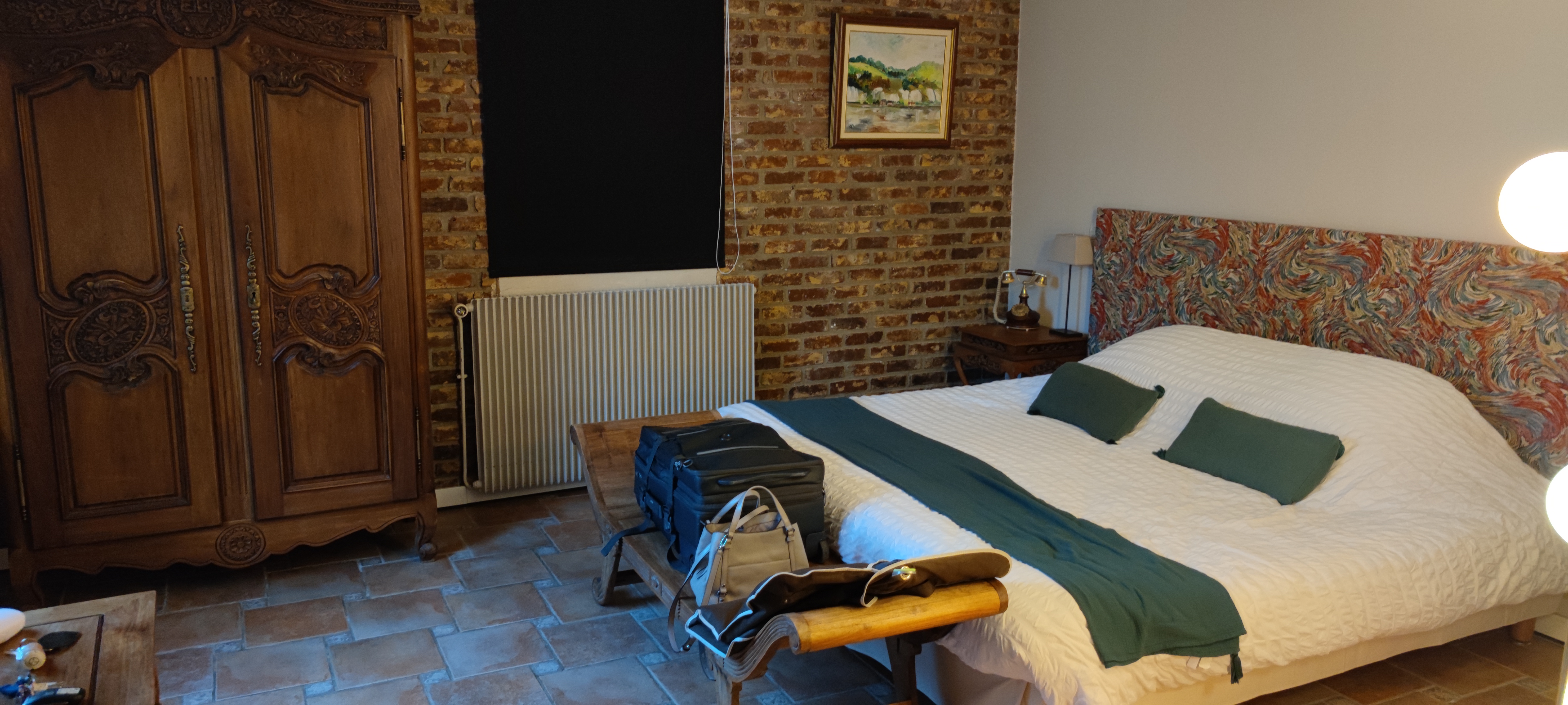 C’est une excellente adresse. Le cadre est très agréable, du fait maison avec passion, pour la décoration, reconversion d’une armoire normande très réussie, un pas de vis de pressoir en porte fleur… notre chambre était un vrai nid douillet. Une chambre en haut d’un escalier en colimaçon, en bas : petit salon avec salle de douche spacieuse et toilettes séparées. Quant à la table, elle est gourmande, et bien sur en fait maison avec des produits locaux. Allez y les yeux fermés sans aucune hésitation.