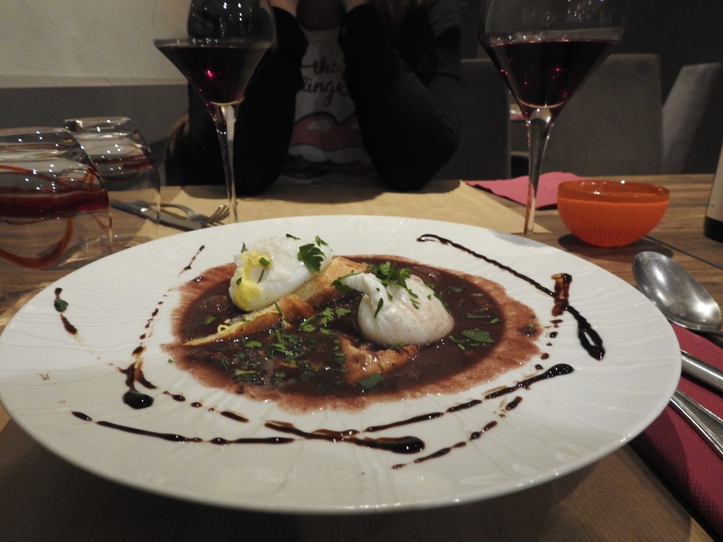 Oeufs en meurette loupés : le jaune était cuit, archi cuit ! Marmite de sandre : rien d'une marmite, juste un morceau de sandre, dans du beurre fondu aromatisé au citron, et sur le côté dans un ramequin, une pomme de terre à moitié cuite et encore dure au centre sur un lit de poireau, quelques queues de langoustines sorties d'une conserve, le tout baignant dans du beurre aromatisé. A vous dégoûter du beurre tant il y en avait partout dans l'assiette ! J'y suis allée une fois, je n'y retournerai pas une deuxième fois !