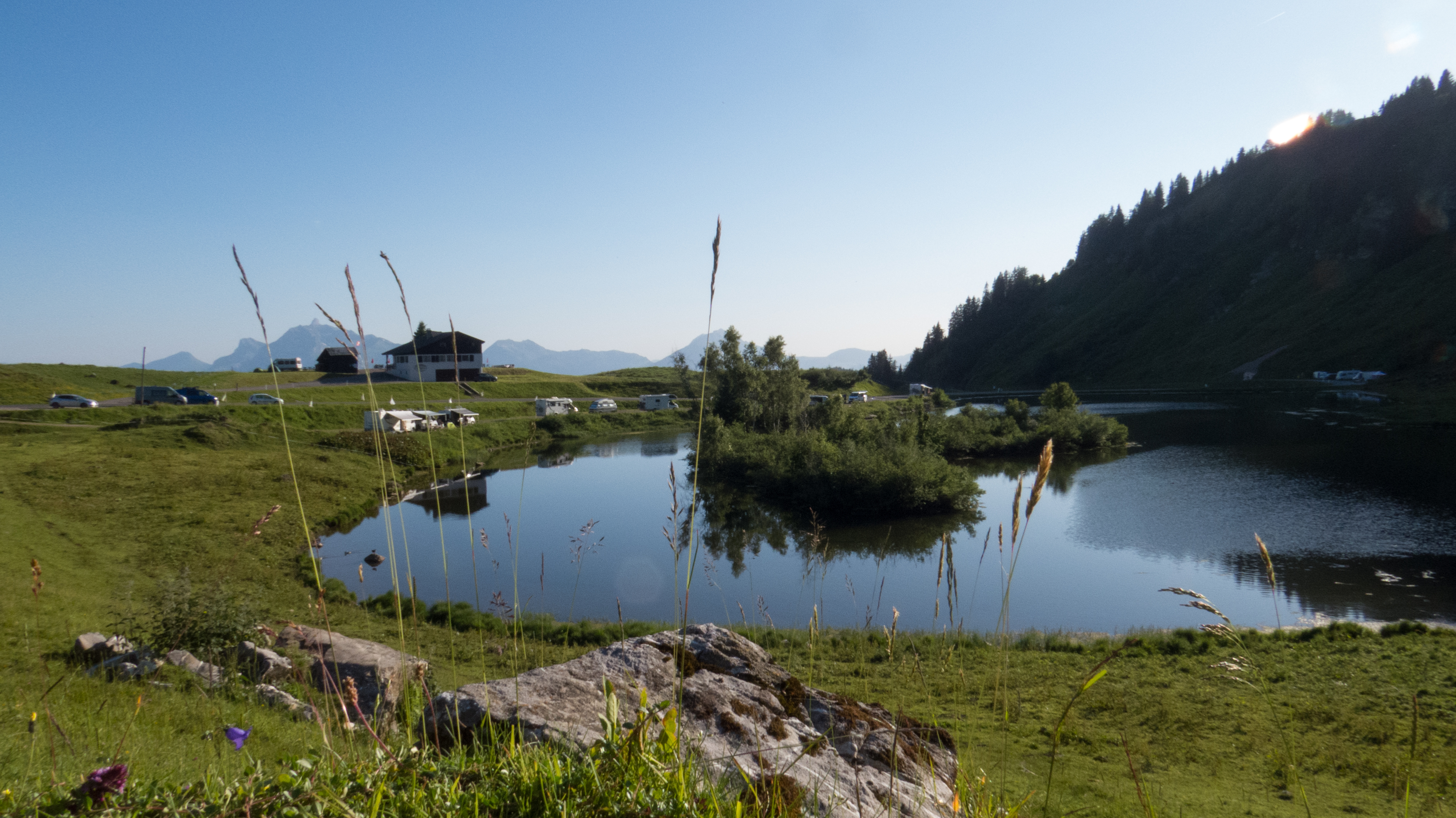 Endroit agréable à côté du lac de joux plane. Magnifique vue panoramique sur le Mont Blanc.