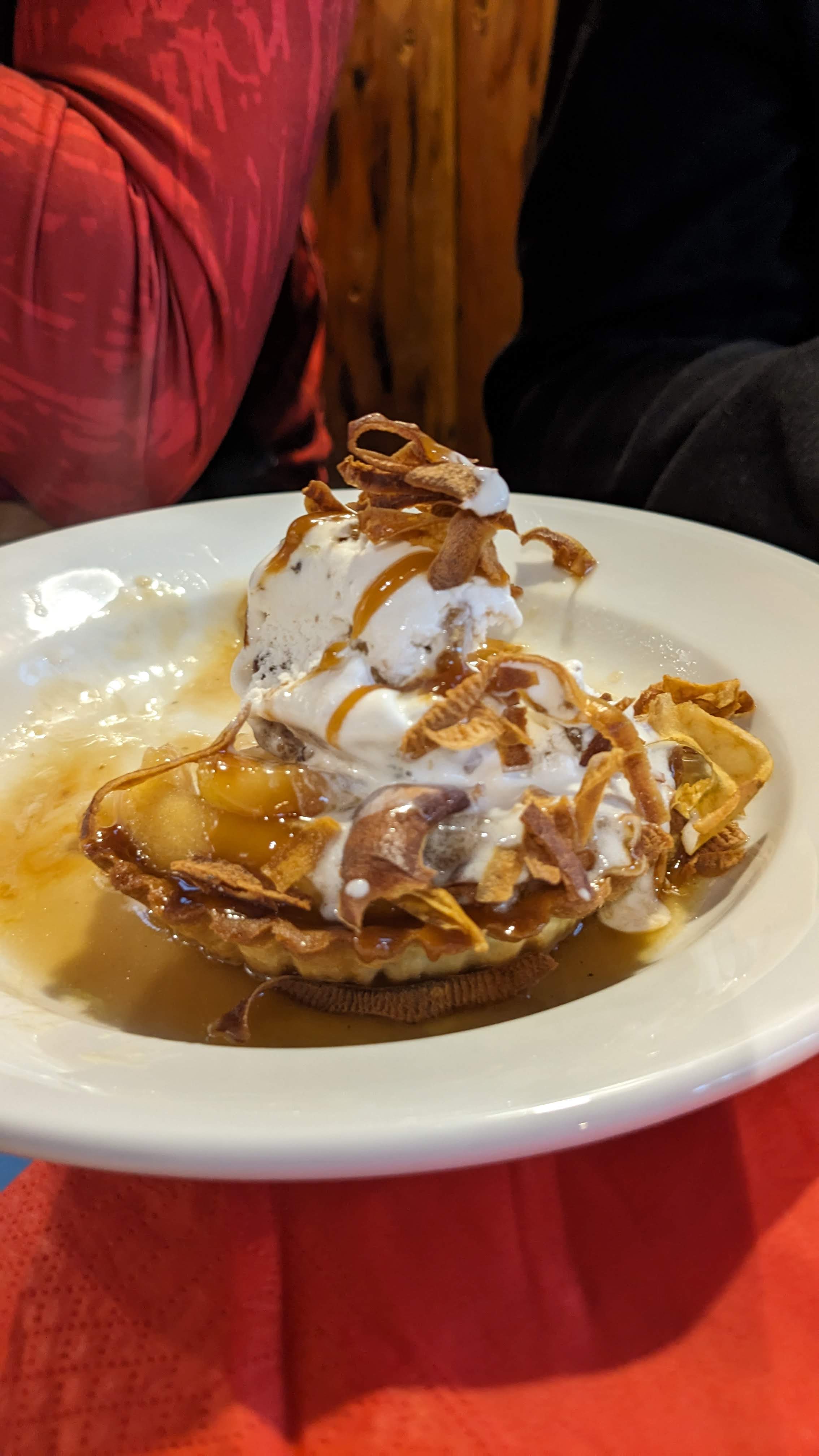 Un super accueille par les femmes de cet établissement, nous étions gelés nous sommes venus manger et boire quelque chose de chaud. On a bu un super vin chaud et chocolat chaud chantilly. Ensuite crêpes et soupe d'oignon gratinées. En dessert la tarte tatin maison est une merveille !! Bon point l'arachide est banni de cet établissement ce qui est très agréable pour les personnes allergiques comme moi. Pour un plat, un dessert et une boisson chaude on a payé 25 euros par personne, ce qui est tout a fait raisonnable et moins cher que dans le centre de Samoëns !! Merci encore, surtout à Rollande !!