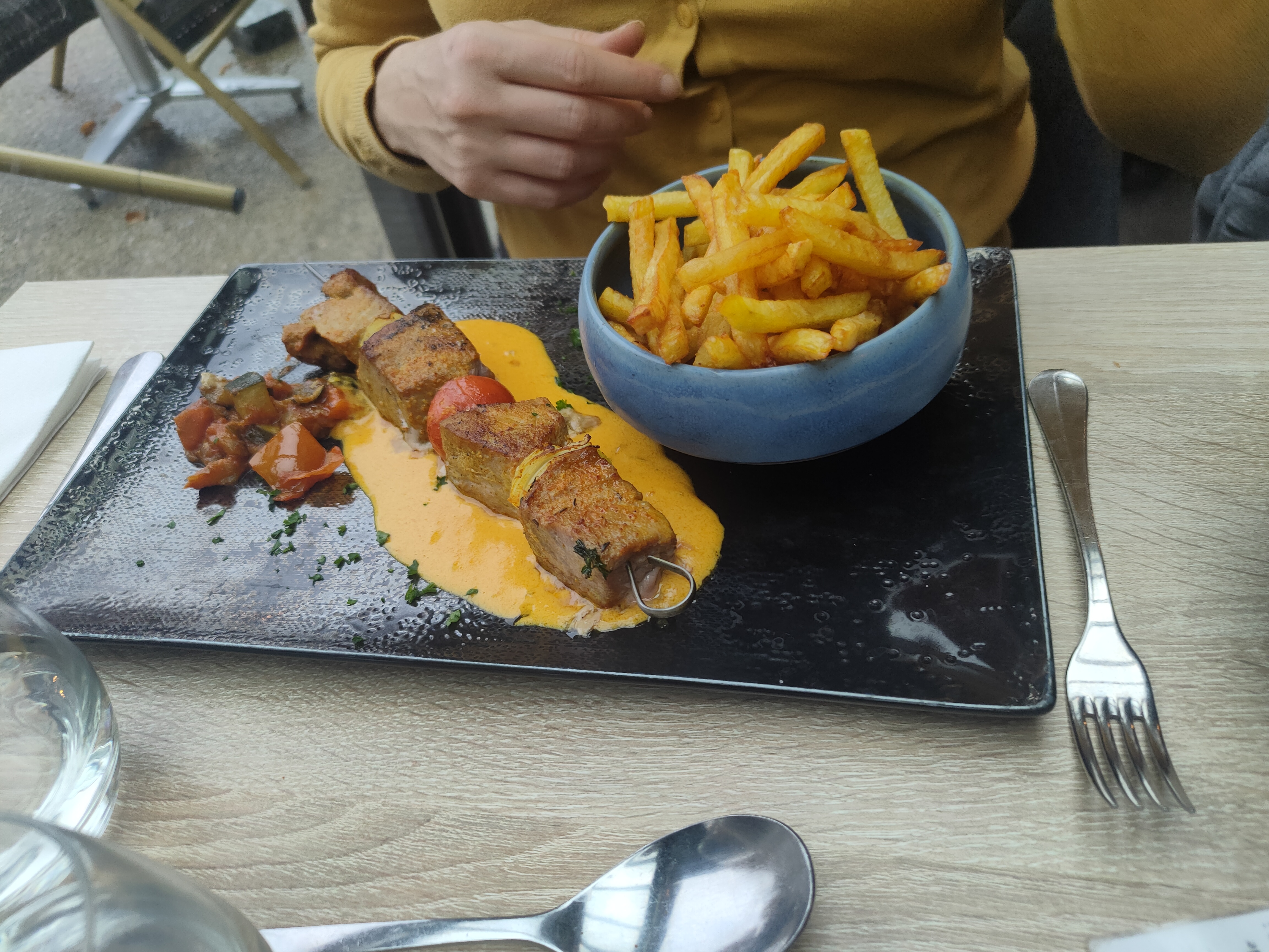 Je conseille se restaurant, Il est très bon. J’ai pris la brochette de viande rouge un régal. En semaine le menu est très raisonnable. Le personnel très sympathique.
