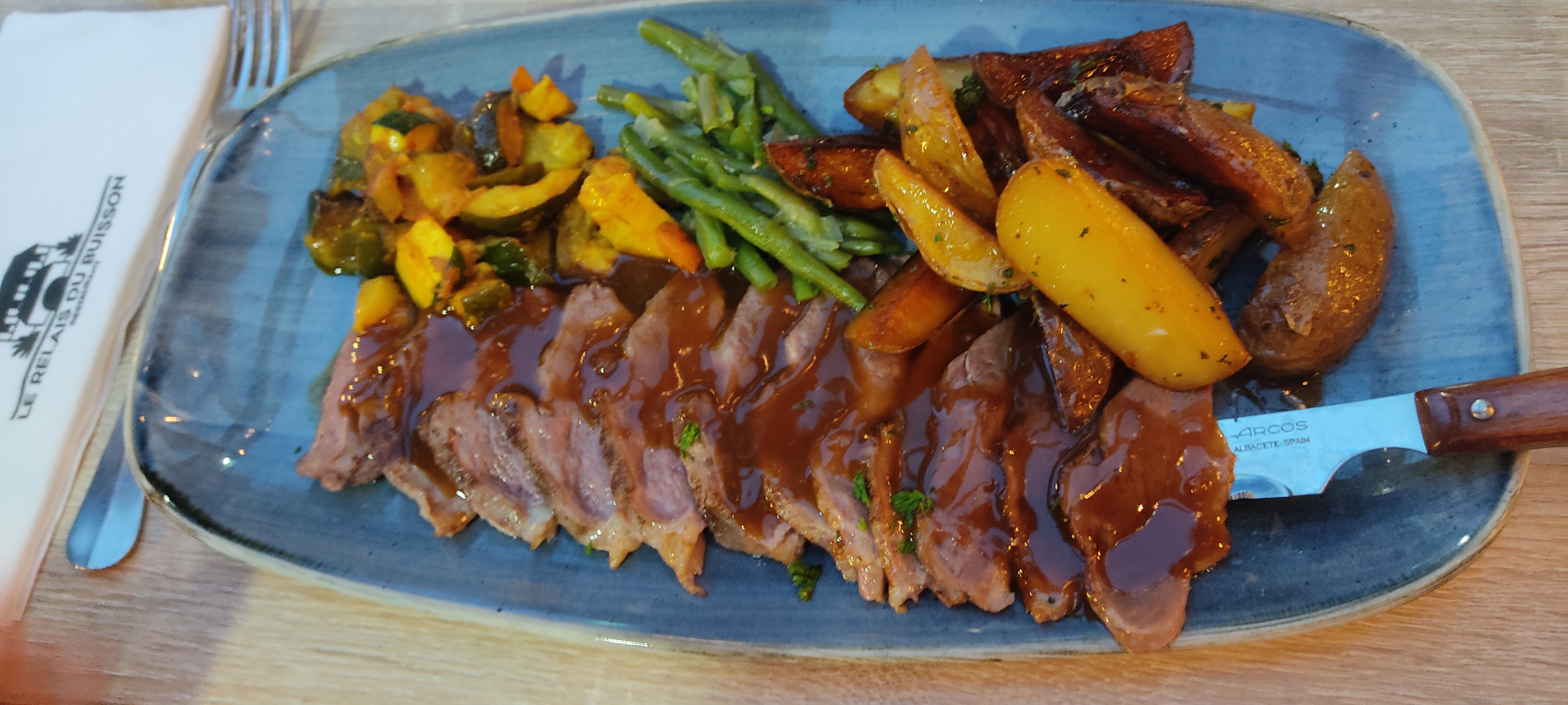 Je vous conseille la cassolette de risotto de pétoncles en entrée (c'est un délice fou) et en plat principal les noix de saint-jacques (l'excellence) mais le copieux plat de magrets de canard dans une immense assiette rectangulaire est aussi le meilleur que l'on puisse déguster. C'est le meilleur restaurant de la région. Je vous conseille la formule virtuose (entrée plat dessert) : à peine plus de 30 euros.