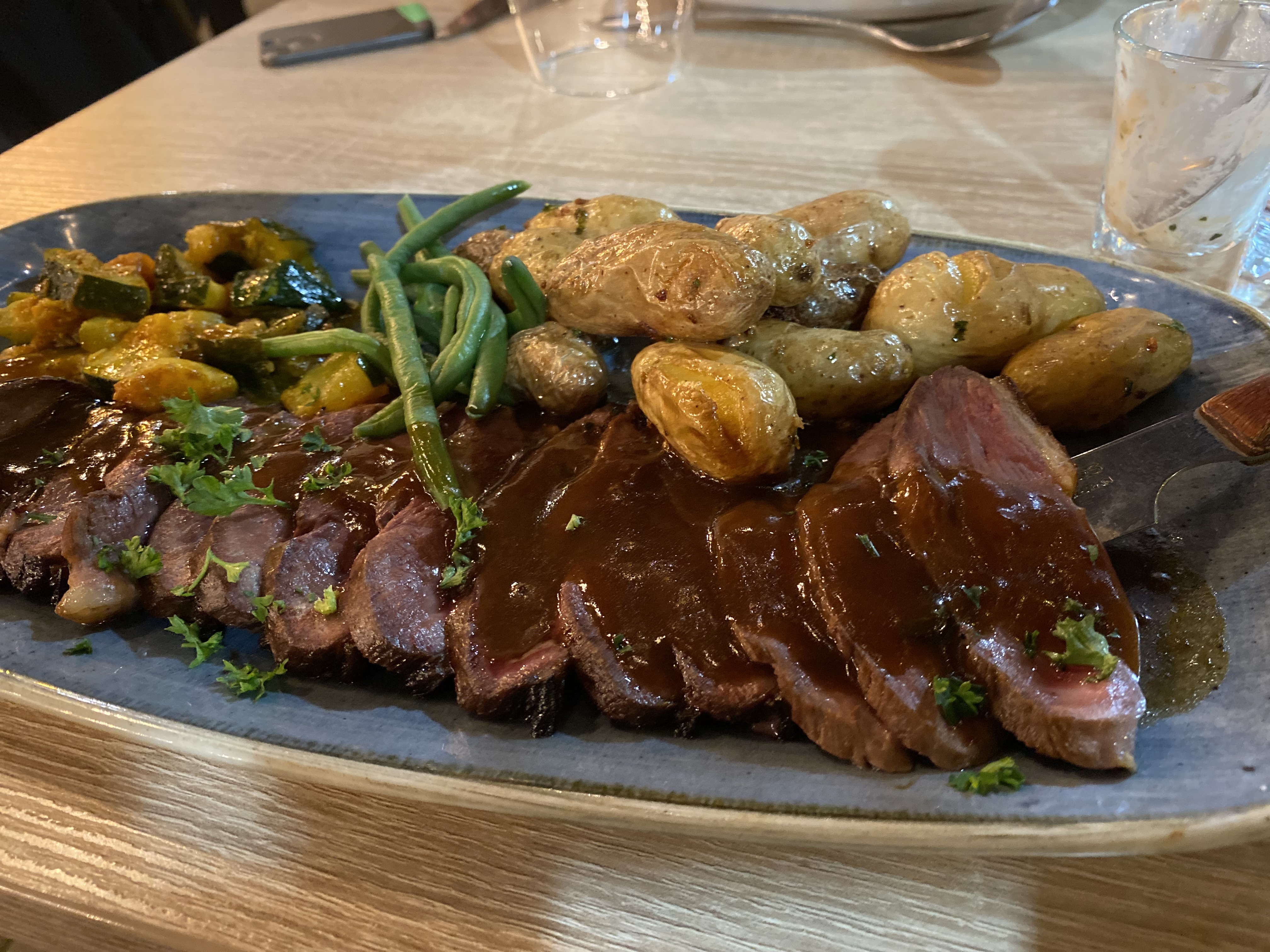 Malheureusement nous sommes arrivés sur un mauvais jour avec des remontées d'égouts. Le menu à 19.90€ (E+P+D) reste tout à fait correct. Entrée d'avocat très agréable, et faux filet accompagné des frites plutôt sucrées avec sa sauce gorgonzola très bon. Petit bémol sur la crème brûlée pistaches, ça manque de finesse et la crème brûlée classique reste meilleure a mon goût. Le cadre est agréable et les serveurs très sympathiques. Je recommande vivement ce restaurant.