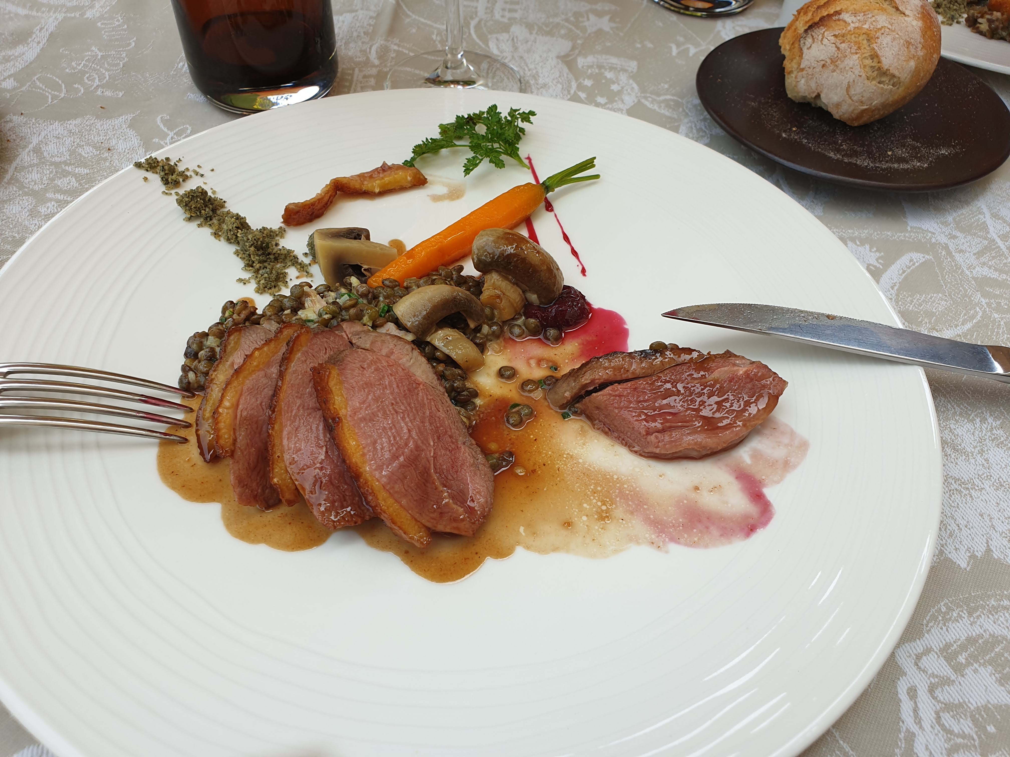 Tout était parfait mise en bouche, un foie gras sublime ,du cerf extra un plateau de fromage super seul bémol les desserts pas à la hauteur du repas !!Je dirai 18 sur20 la cuisine mais un petit 14 voir 13 pour la pâtisserie dommage !!!!