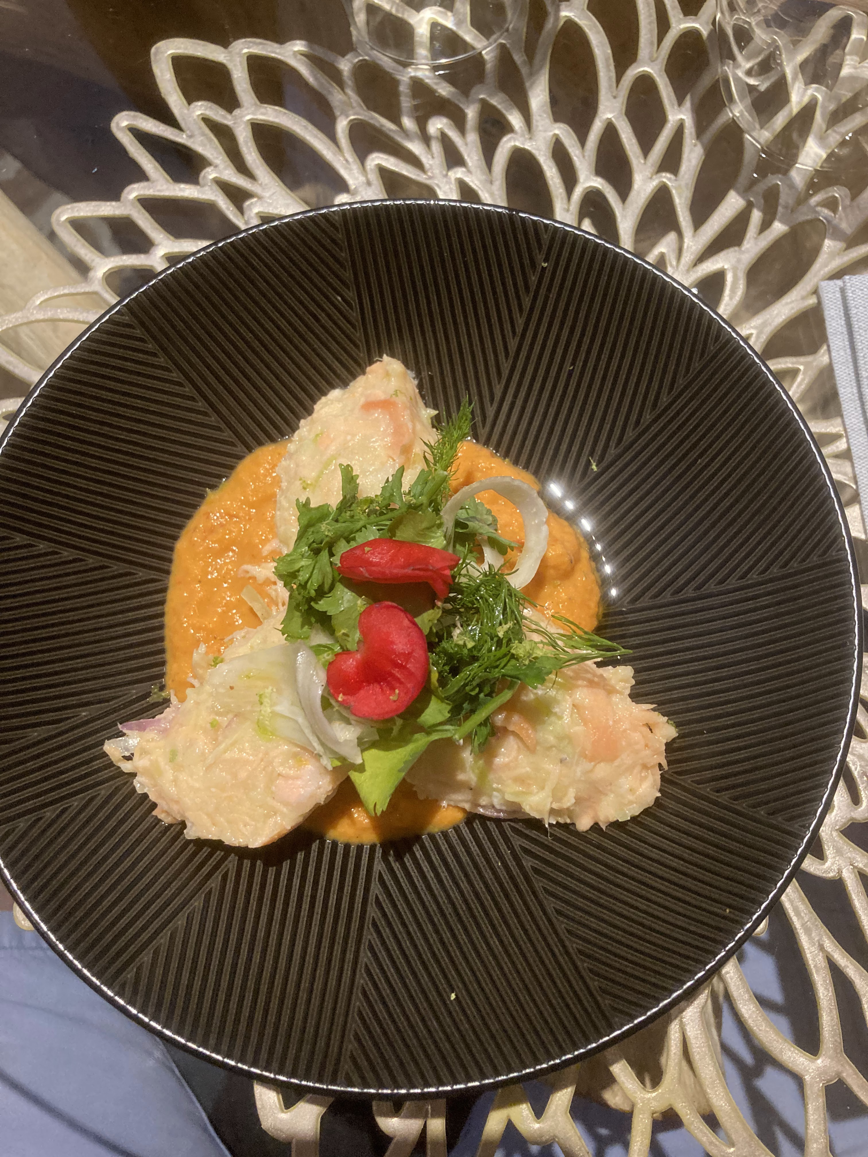 Il manque certaines choses pour que ce restaurant puisse prétendre au standing qu'il veut se donner. Le poisson était bon mais plein d'arêtes, Le vernis à ongles écaillé de la serveuse, le récipient ébréché dans lequel fut servi le dessert. Le calamar et le flan de crevettes n'avaient pas de goût.