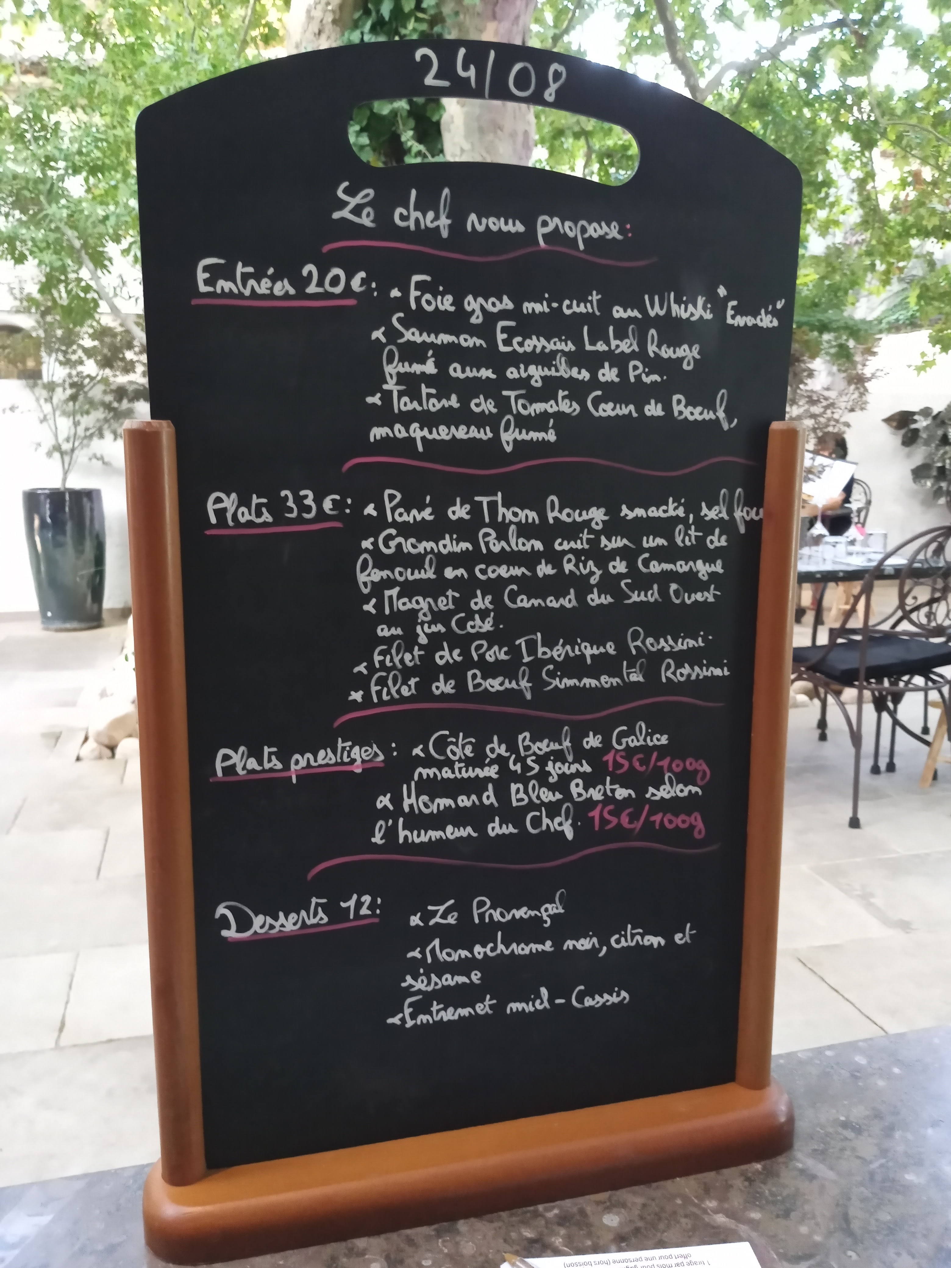 Partages très bonne moment avec ma compagne. Cousine délicieuse et originale. Ambiance purement provençale très agréable et paisible Merci pour le staf également pour un accueil et service de qualité