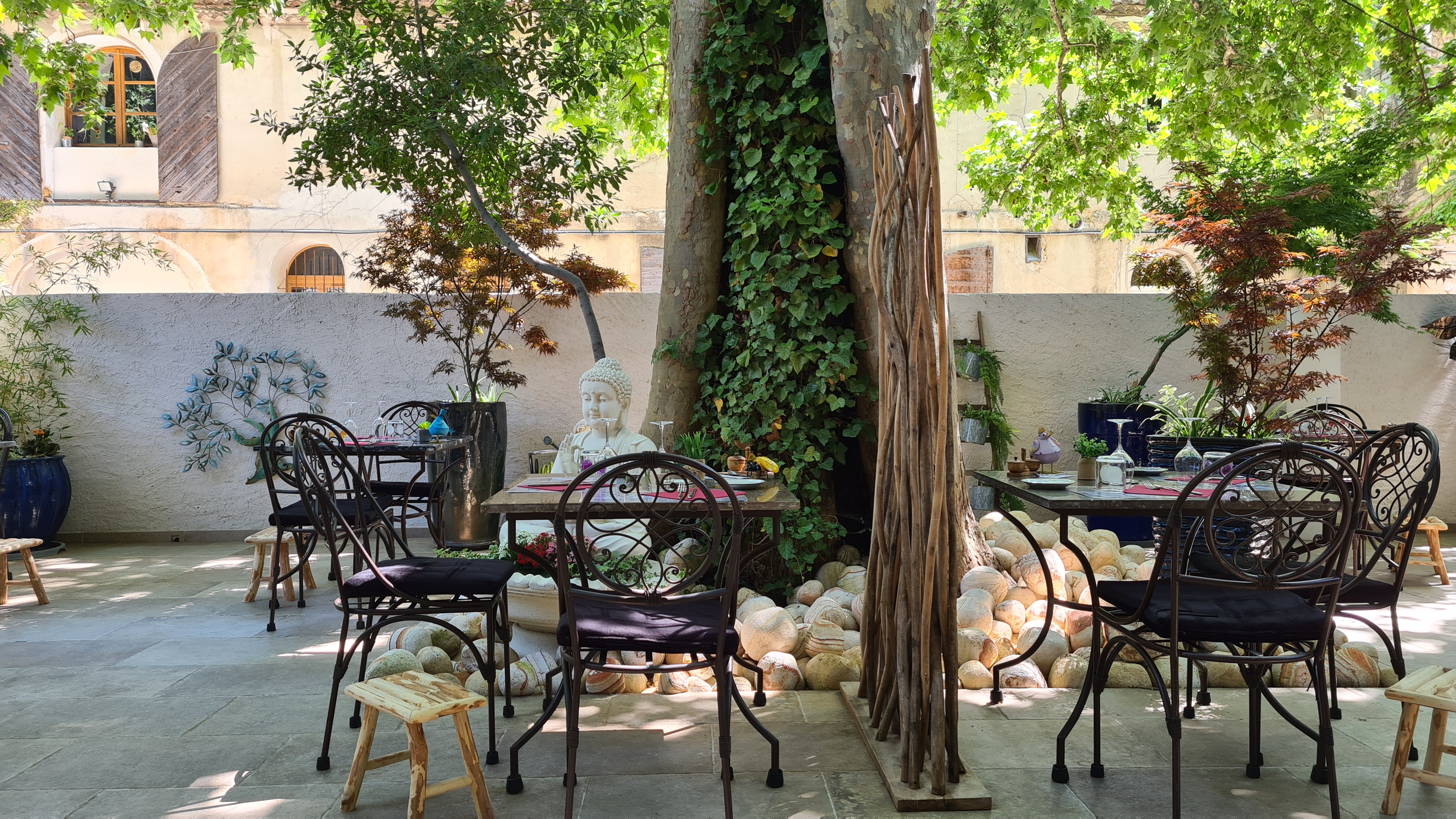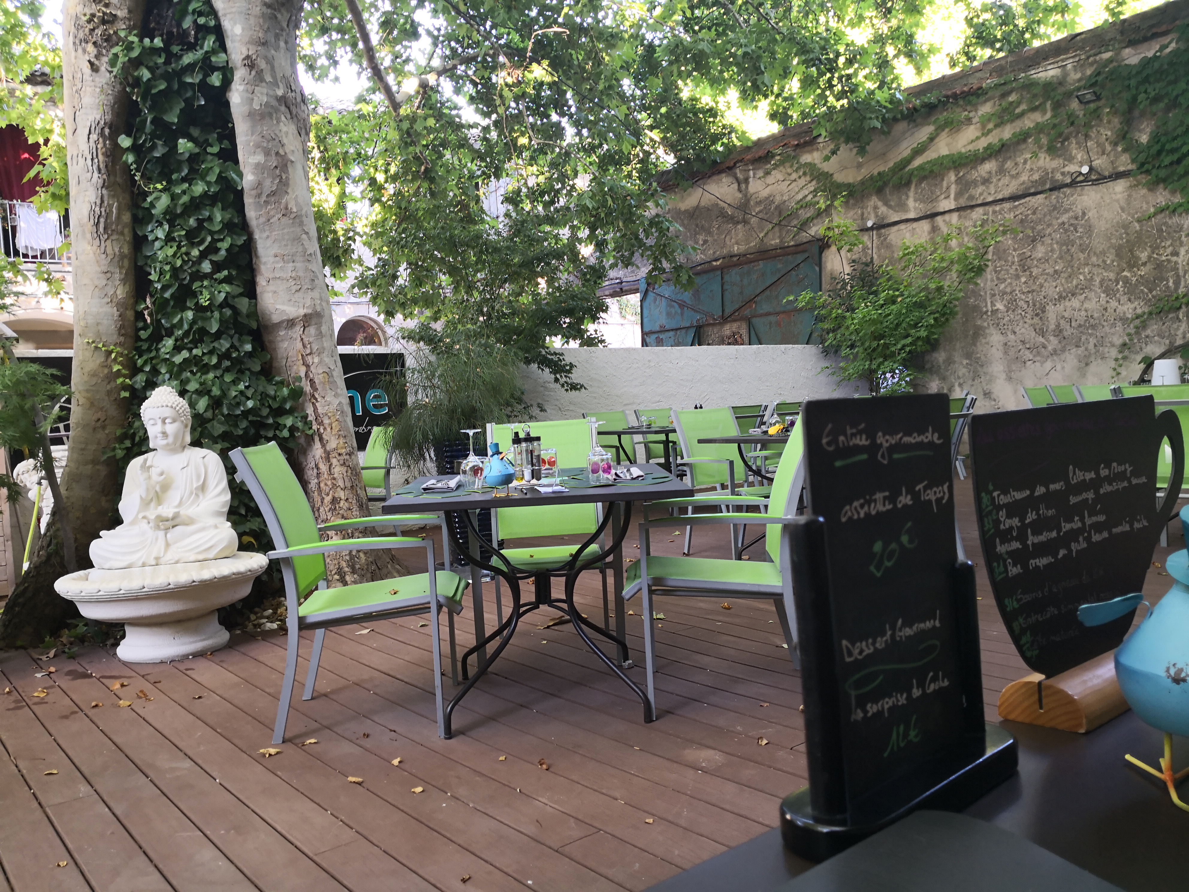 Bon repas de midi nous nous sommes régalées magnifique cadre dans une cour ombragée