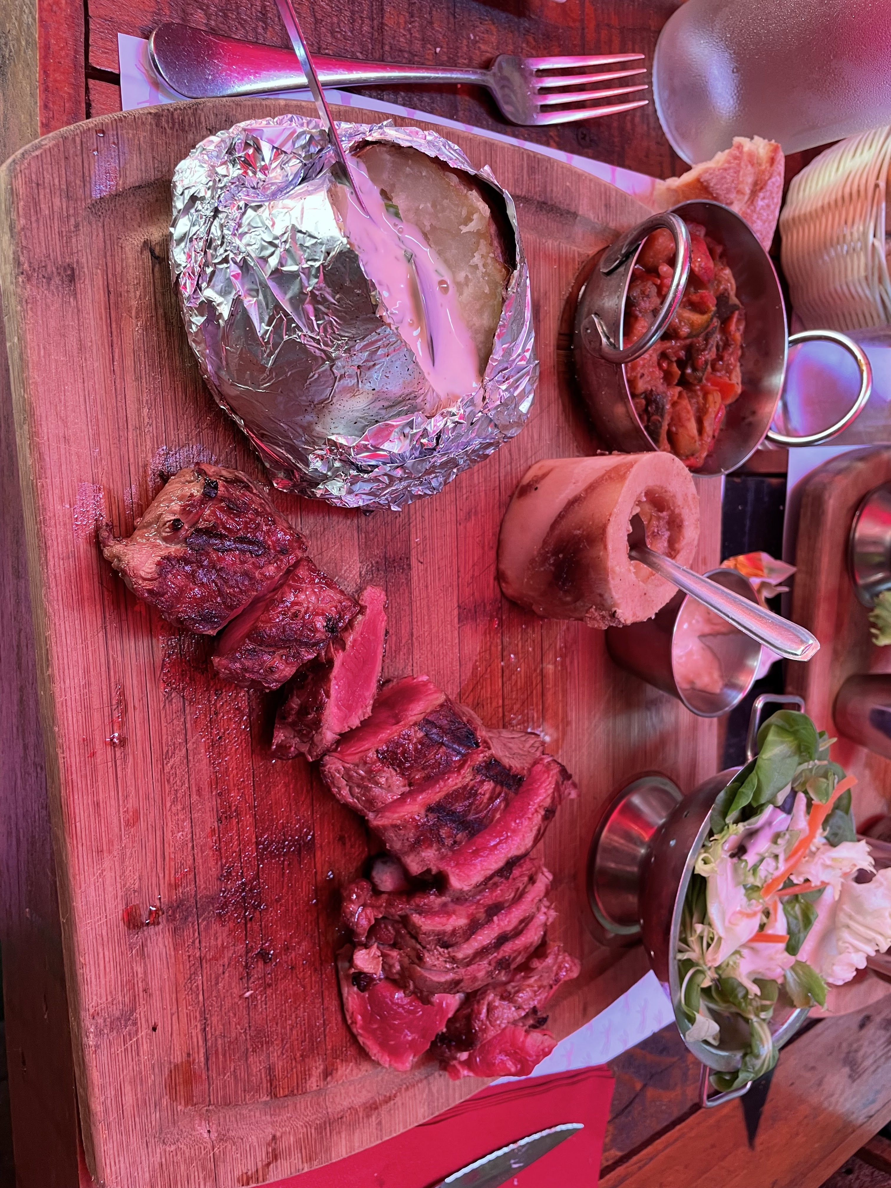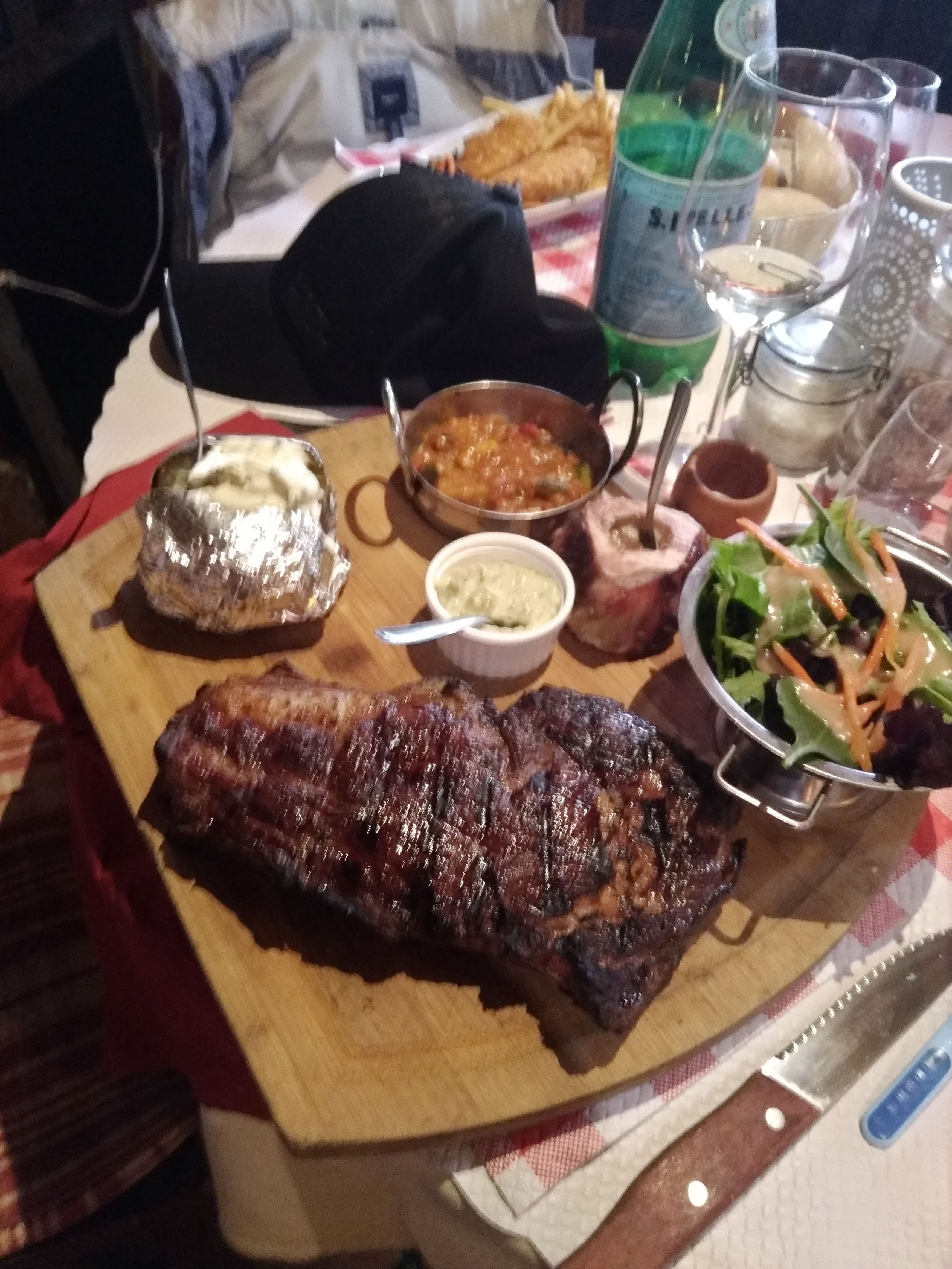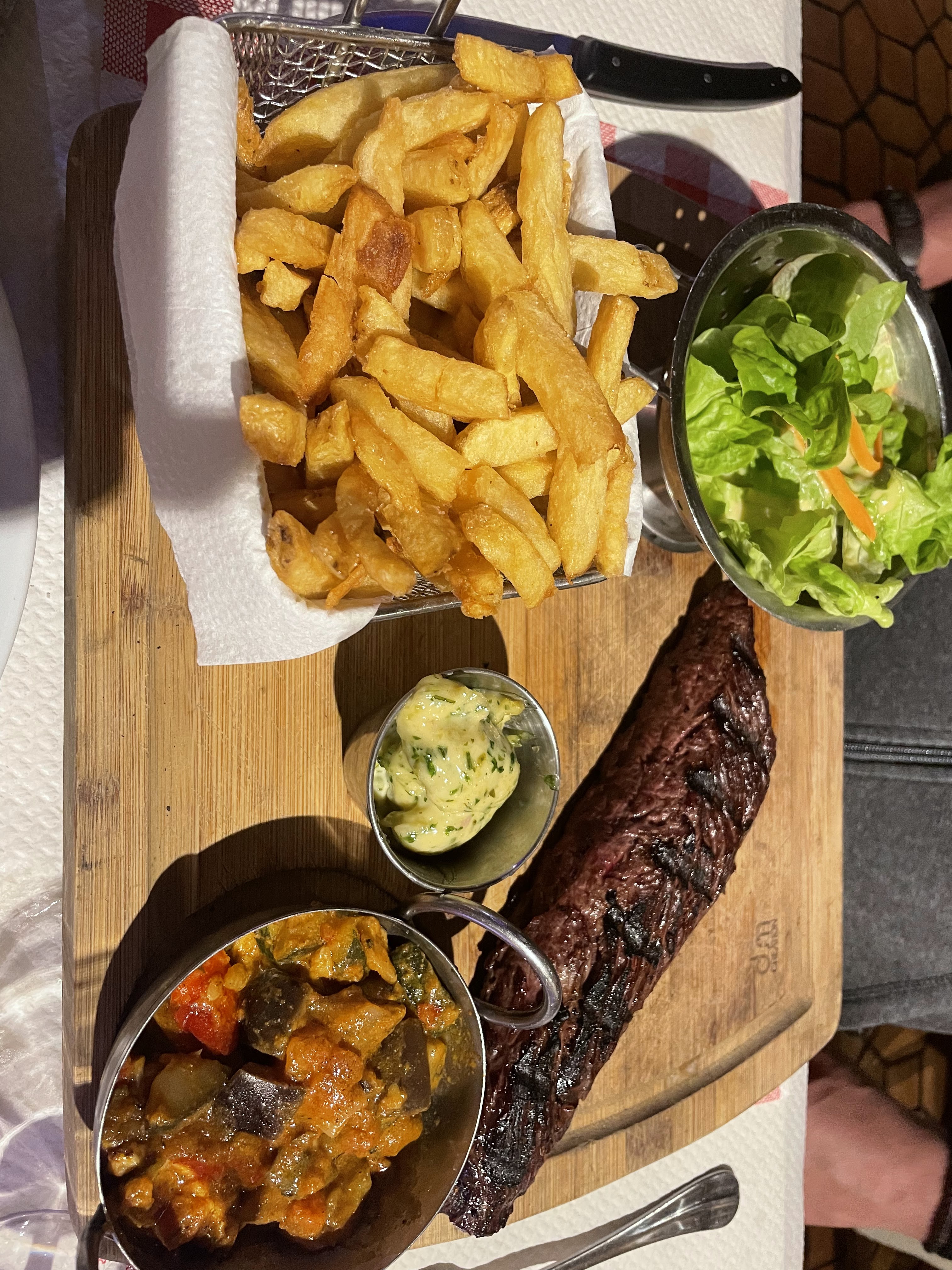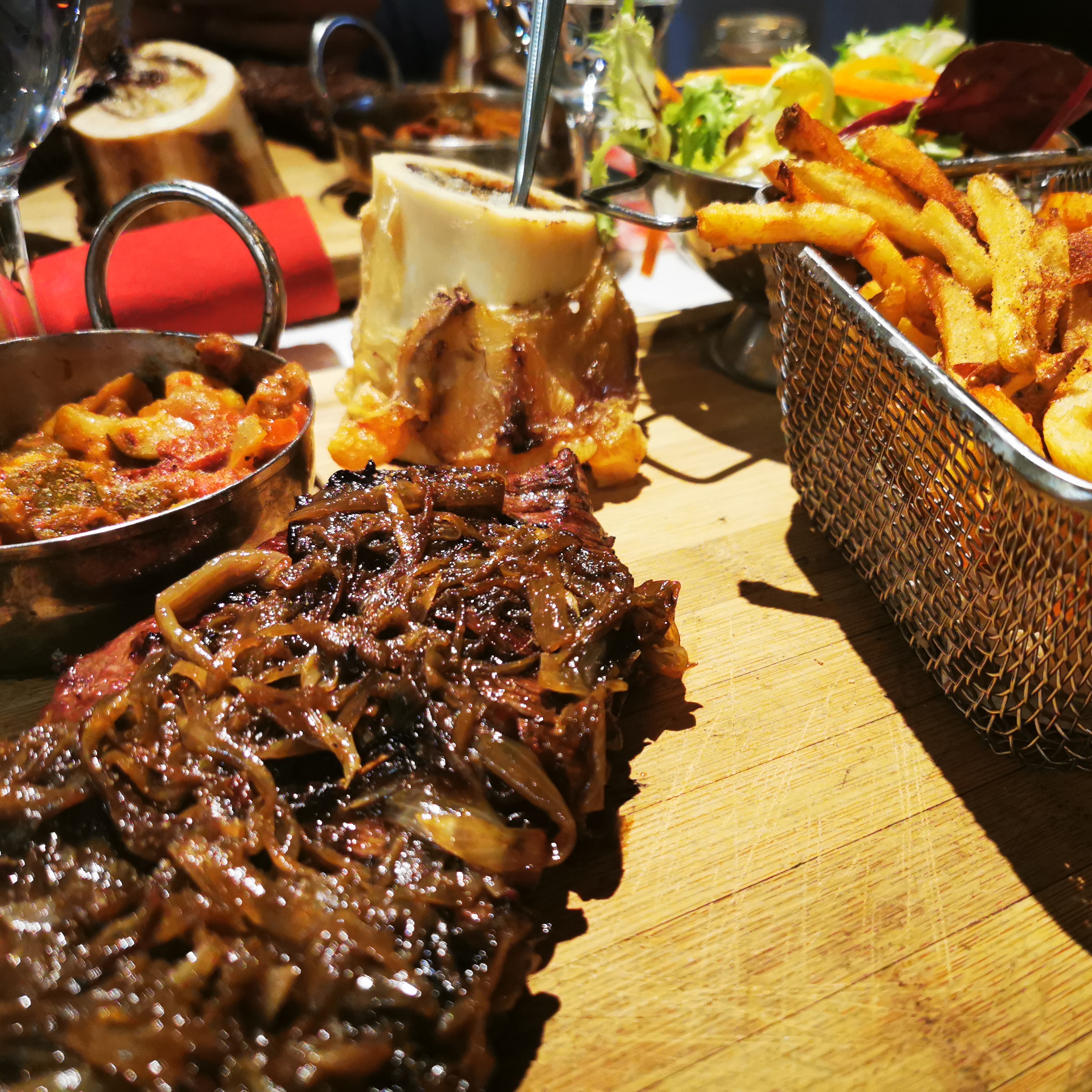 Nous y sommes allés deux fois ces derniers mois. Les grillades sont servies sur une planche accompagnées d'un os à moelle, d'une ratatouille, d'une salade et de frites ou pomme de terre. Tout était très bon et copieux, on en a pour son argent !