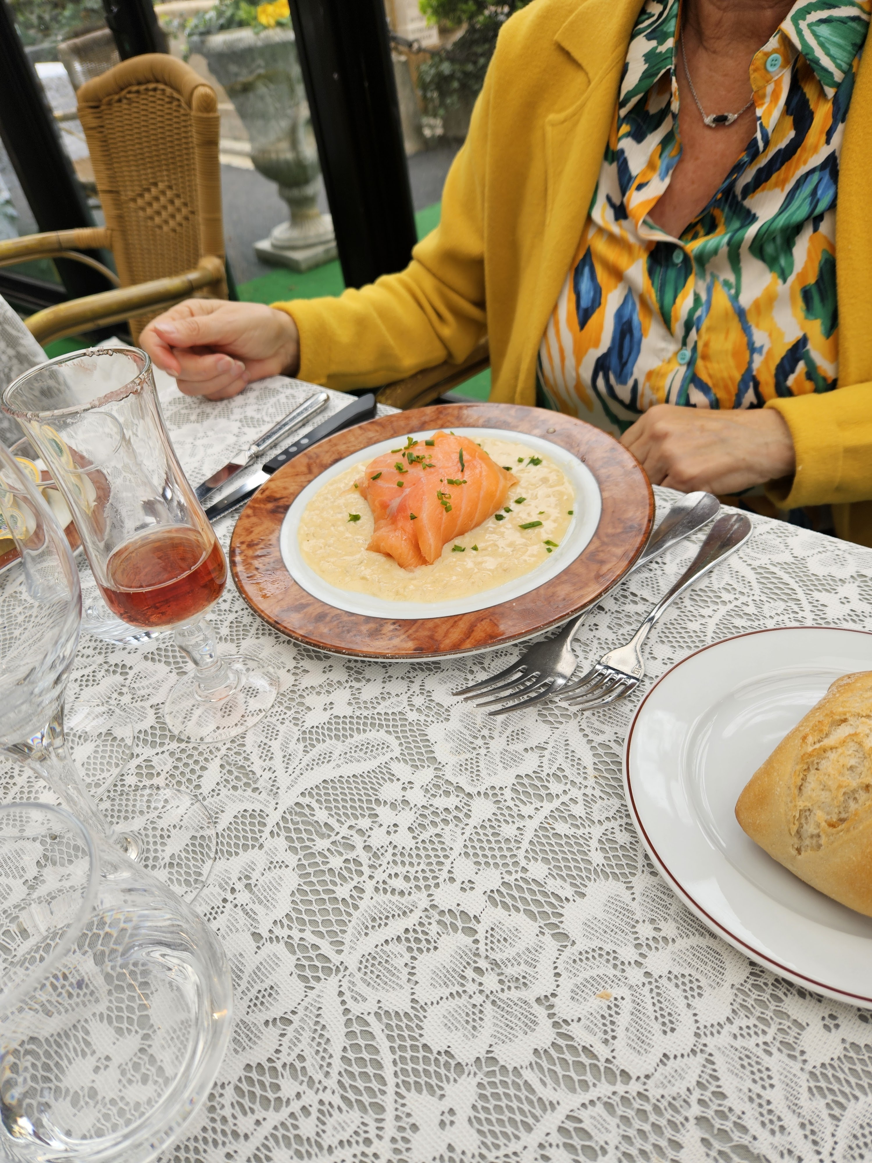 Nous avons très bien mangé, un menu à 25€, dans un cadre un peu retro mais très vert, avec beaucoup de fleurs, très agréable.