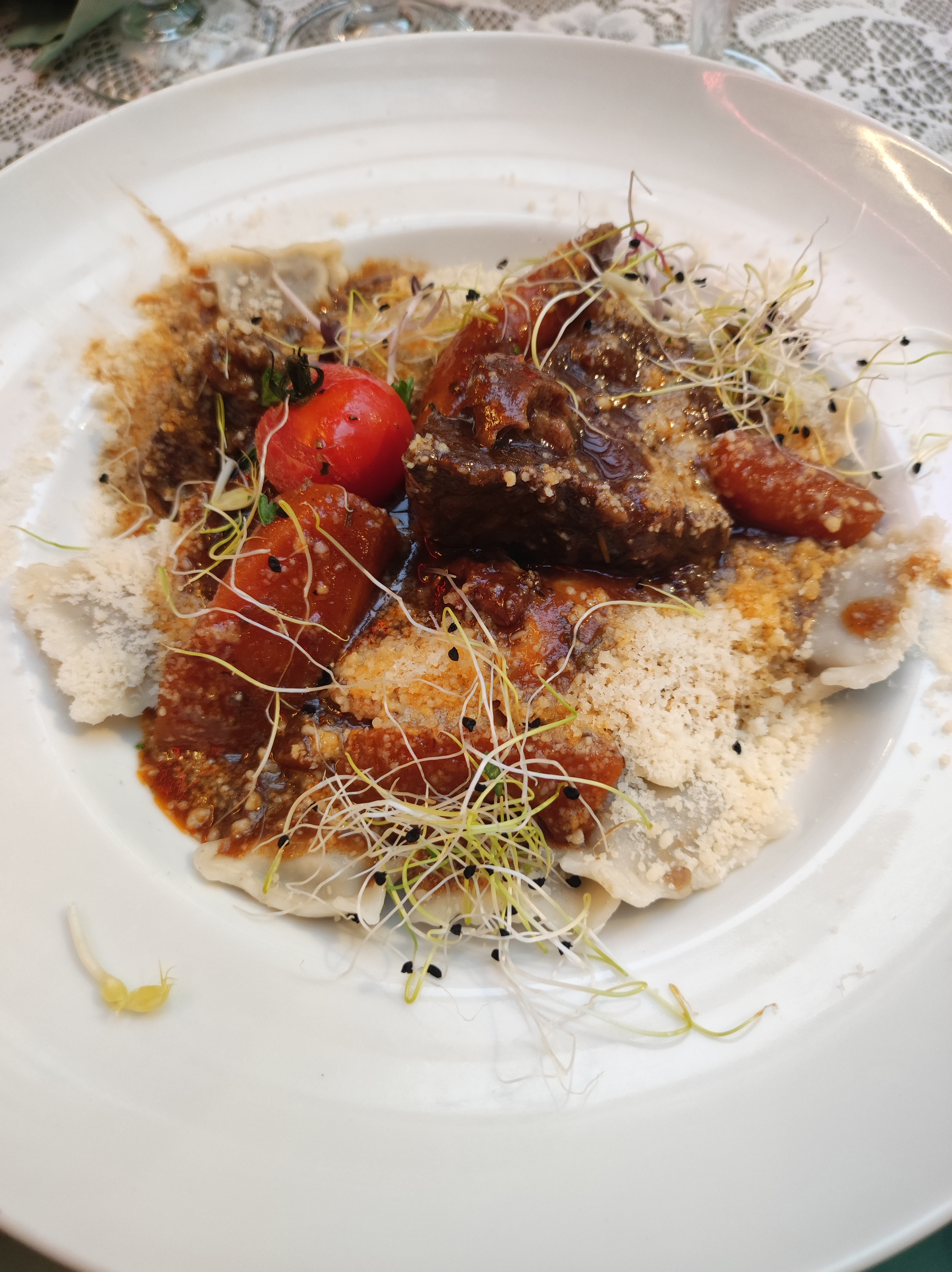 venue en famille ce jour decu: temps d attente tres long en pleine saison et pour cause que deux serveurs uniquement . commande raviolis à la daube et les seuls deux morceaux de daube servis etait completement gras. bravo pour un pro qui ne sait meme pas reconnaitre une viande de mauvaise qualite et qu en plus l etat doit l aider financierement depuis un an. Quand au serveur tres aimable avec son fort accent ,il etait difficile de le comprendre nous deconseillons