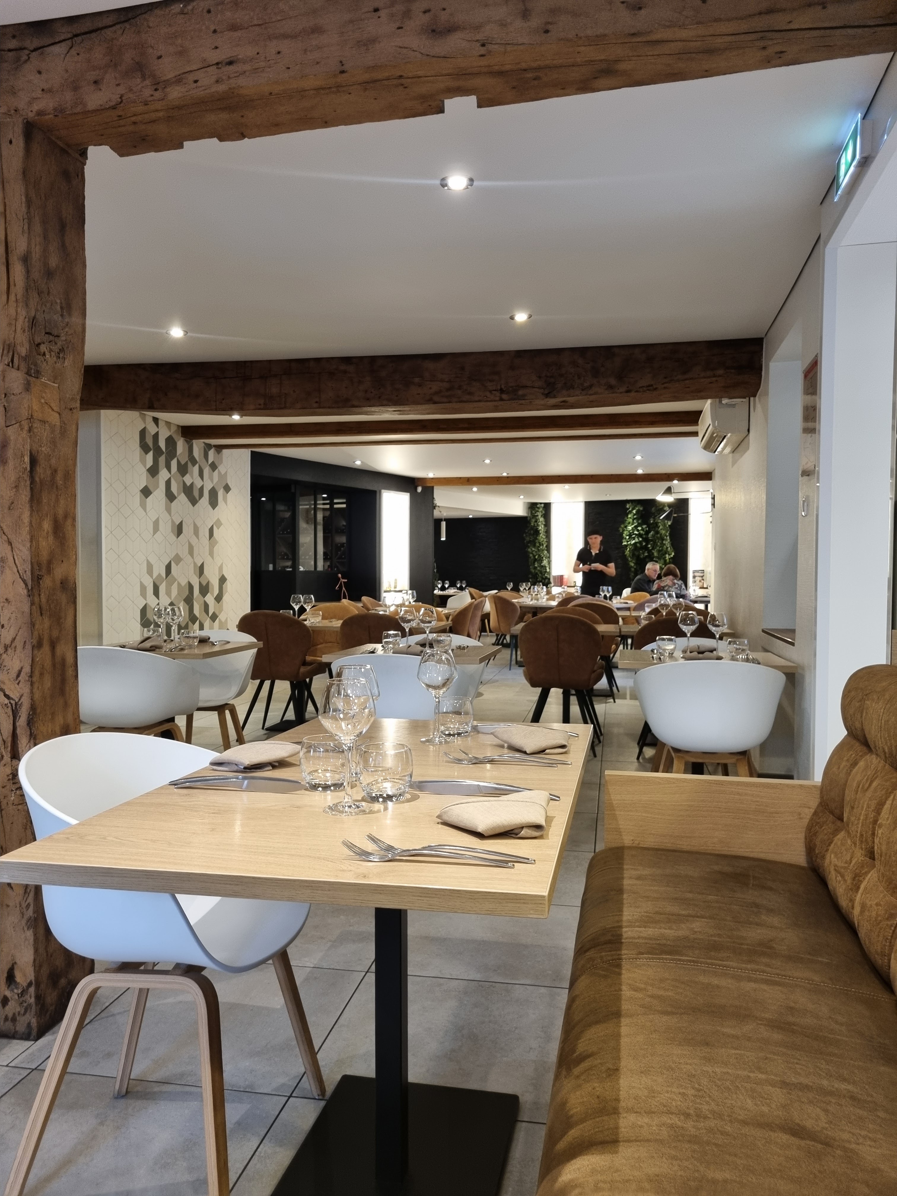 Très beau restaurant Le service et l’accueil très agréable Côté cuisine tout était très bon et bien présenter même si les plats chaud ont une dressage plutôt simple ce qui peut ce comprendre vue la jeunesse de l'équipe. Les desserts quand à eux relève largement le niveau générale Bravo à la jeune pâtissière et au reste de l’équipe.