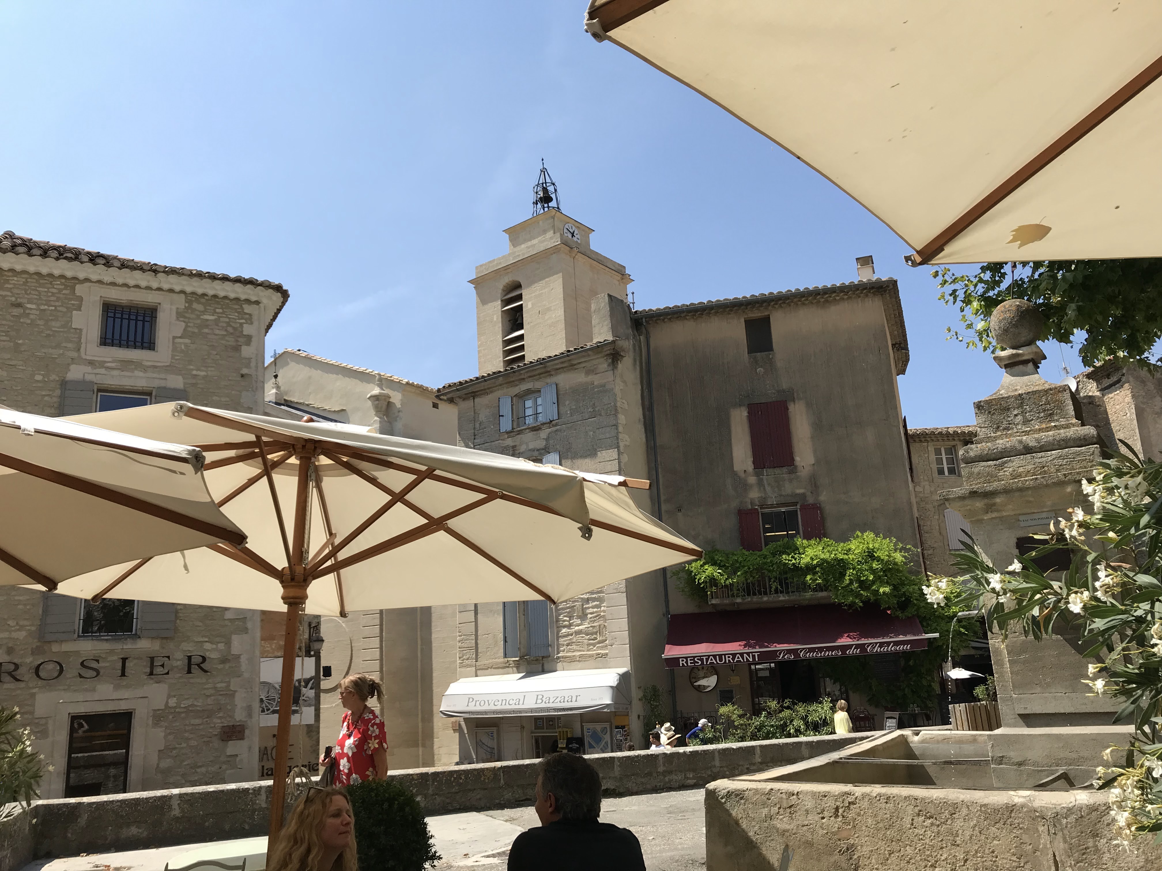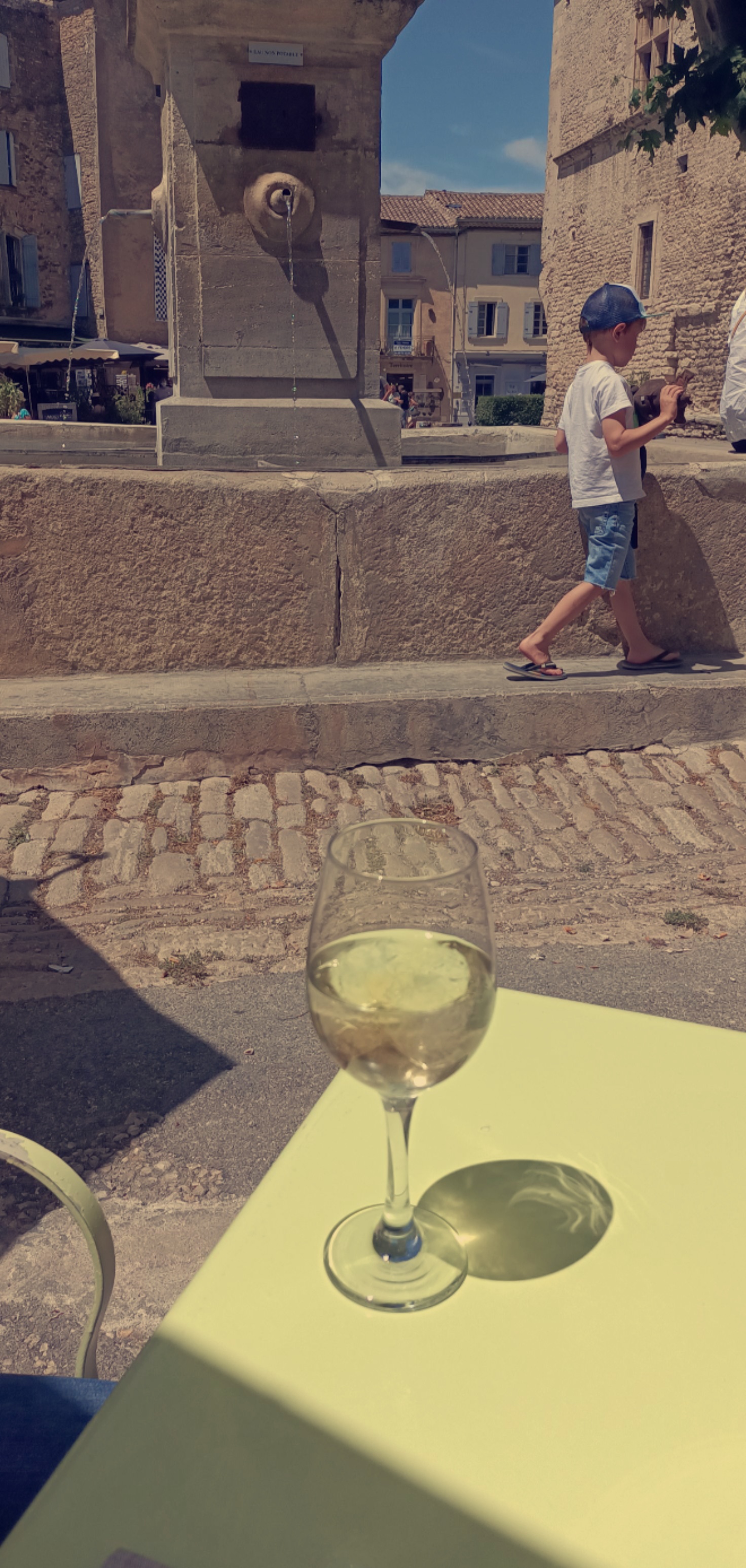Village magnifique, par contre 12,80€ les 2 Pressions-citron ! Çà fait plus de 25€ le litre ! Sur le coup ça m'a donné envie de roucouler...! On est évidemment pas resté mangé, et pour info, un tartare de saumon vous coûtera 16€ au Baux de Provence, qui n'est pas le village le moins touristique et le moins joli non plus... A méditer...