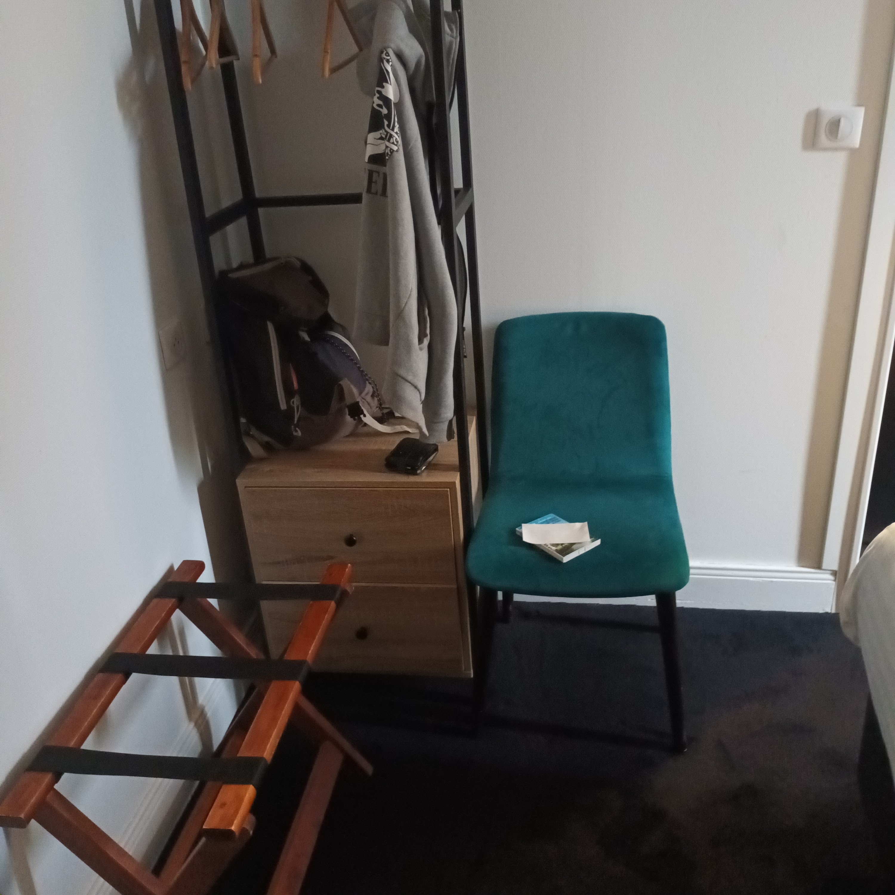 Chambre au 4ème étage : moquette sale, rien pour pendre les vêtements, le robinet du lavabo trop grand donc en se lavant les mains on se lave les pieds…rien pour accrocher les serviettes, pas de balai wc. Le ménage est succinct et la salle de bains n a jamais été nettoyée en 4 jours. Seul point fort l emplacement en plein centre ville idéal pour le festival.