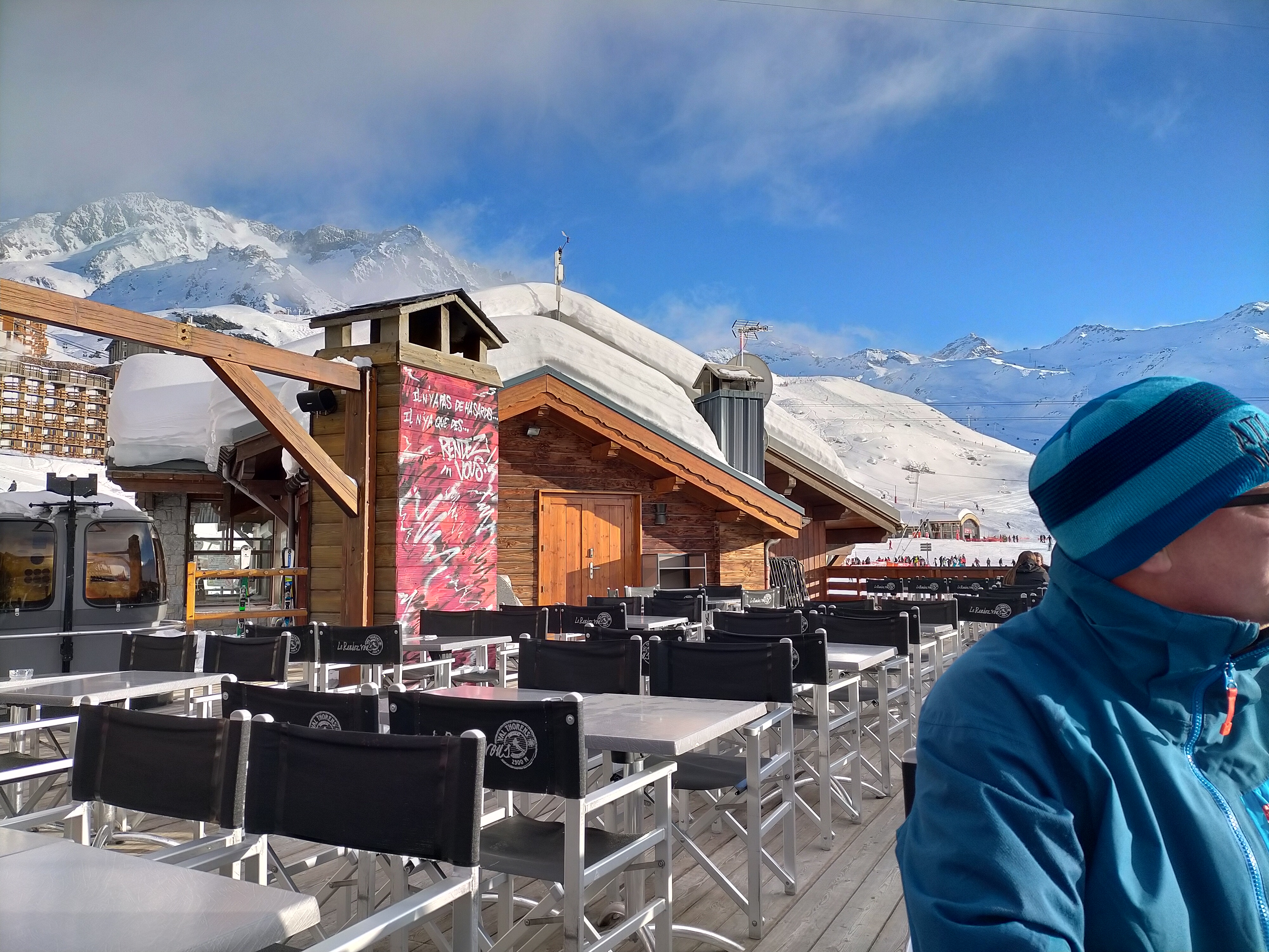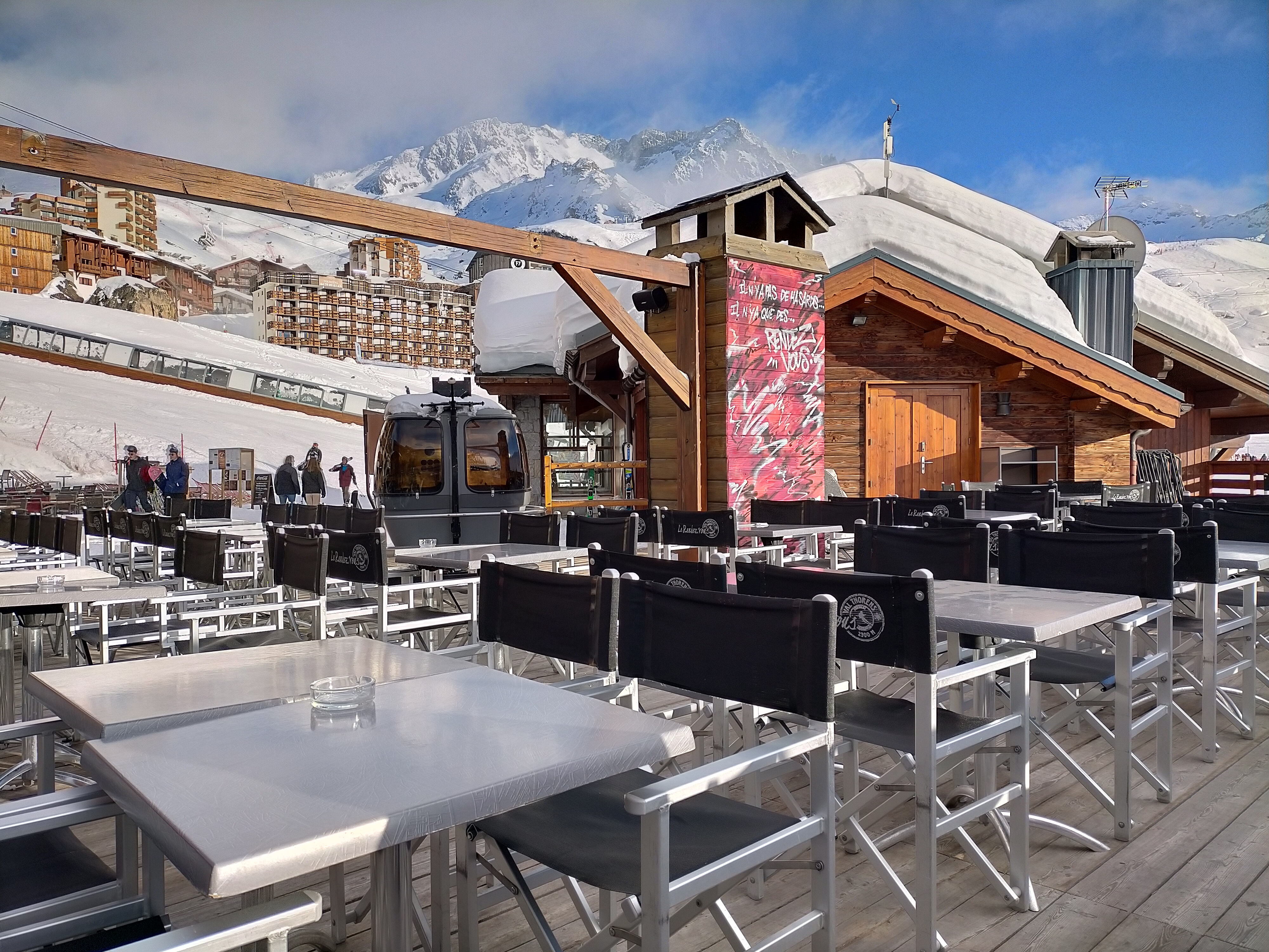 Toujours un bon choix pour prendre un verre pendant la journée, un petit déjeuner et une belle vue sur la montagne. Bon aussi pour l'apéritif. Ils ont été très arrangeants pour notre groupe de 8 adultes et 5 enfants. Bon service et nourriture. Un incontournable de Val Thorens.