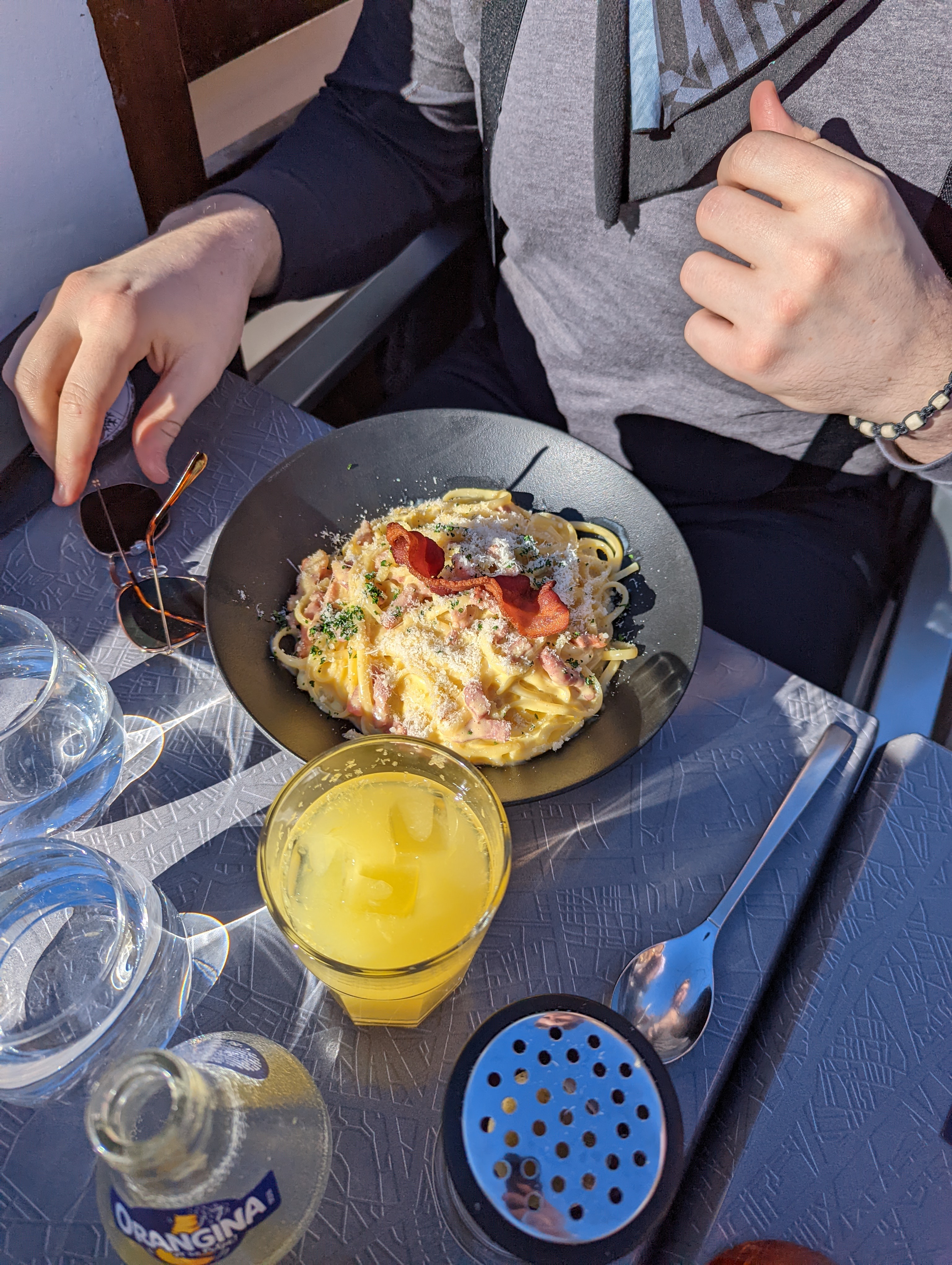 La nourriture et le service étaient absolument fantastiques. J'ai eu les gnocchis et mon mari la Carbonara et nous avons tous les deux adoré notre nourriture (même si la mienne était la meilleure !). Nous avons pris un plat principal chacun, avons partagé un dessert et avons pris 3 verres de vin entre nous. La facture s'élève à un peu moins de 70 EUR, ce qui est raisonnable pour Val Thorens. L'ambiance était géniale et ils avaient même de la musique live. Recommande fortement!